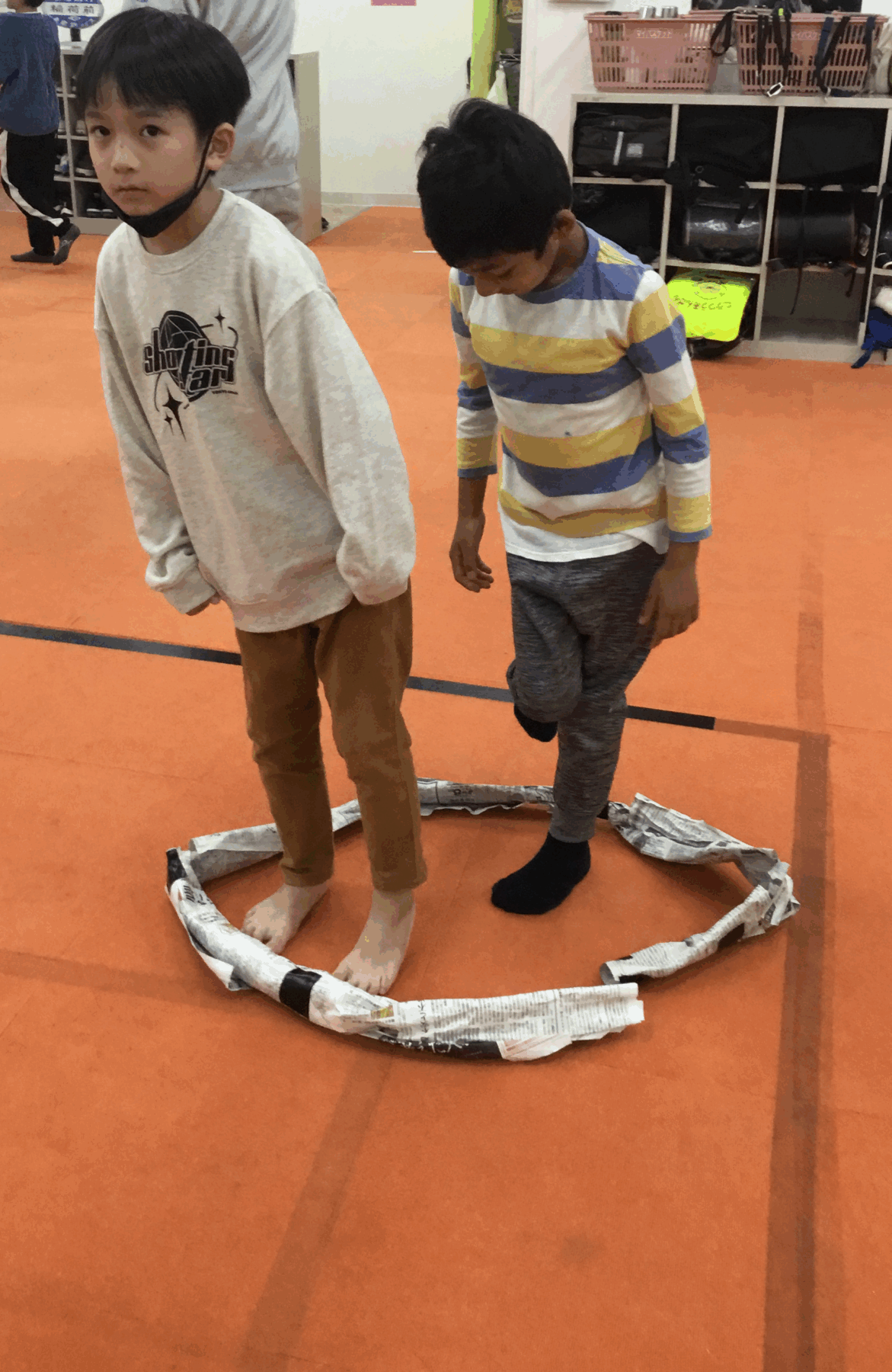 普通バージョンと新聞紙のフラフープを使ったバージョンで行いました😊
