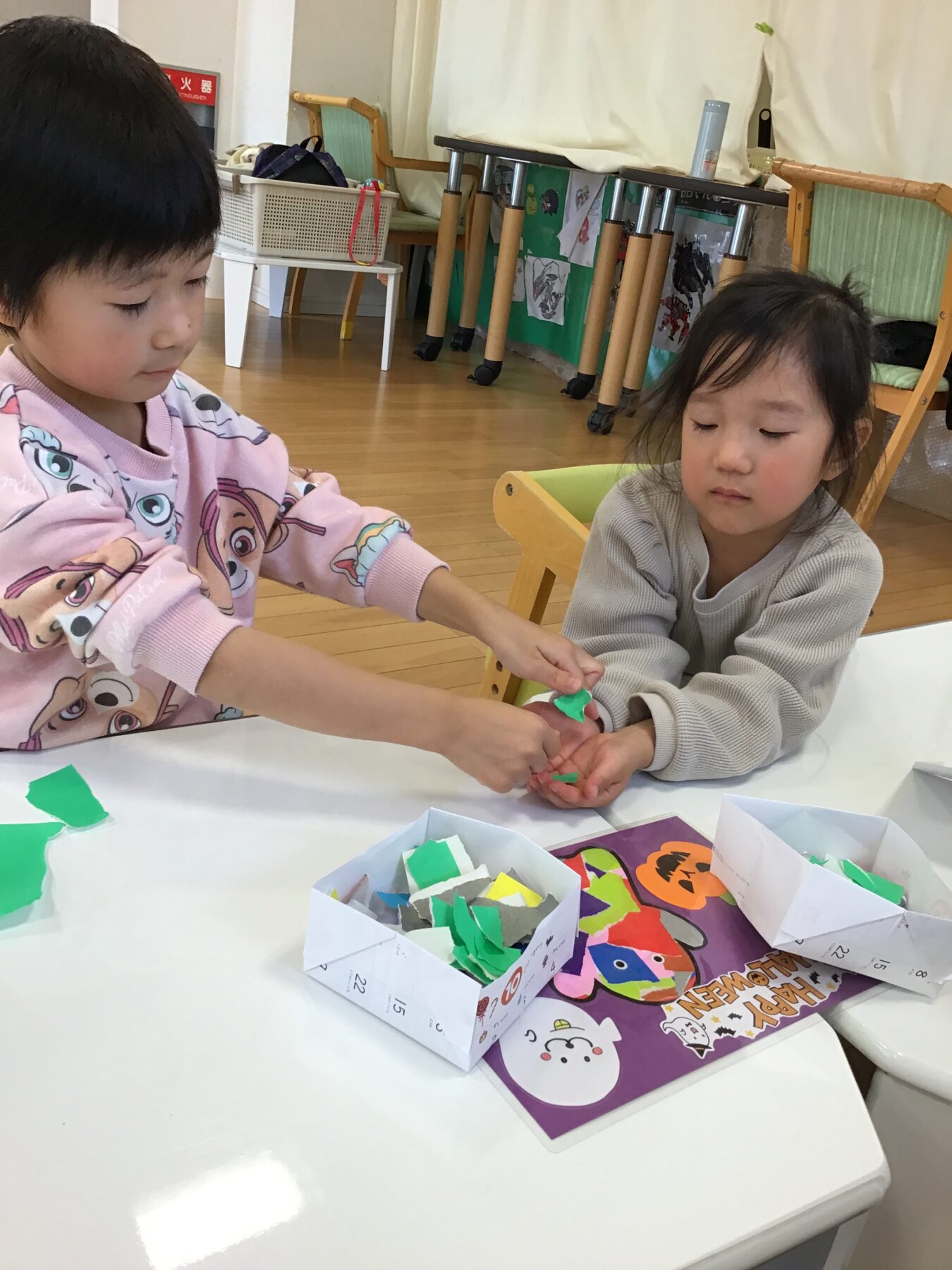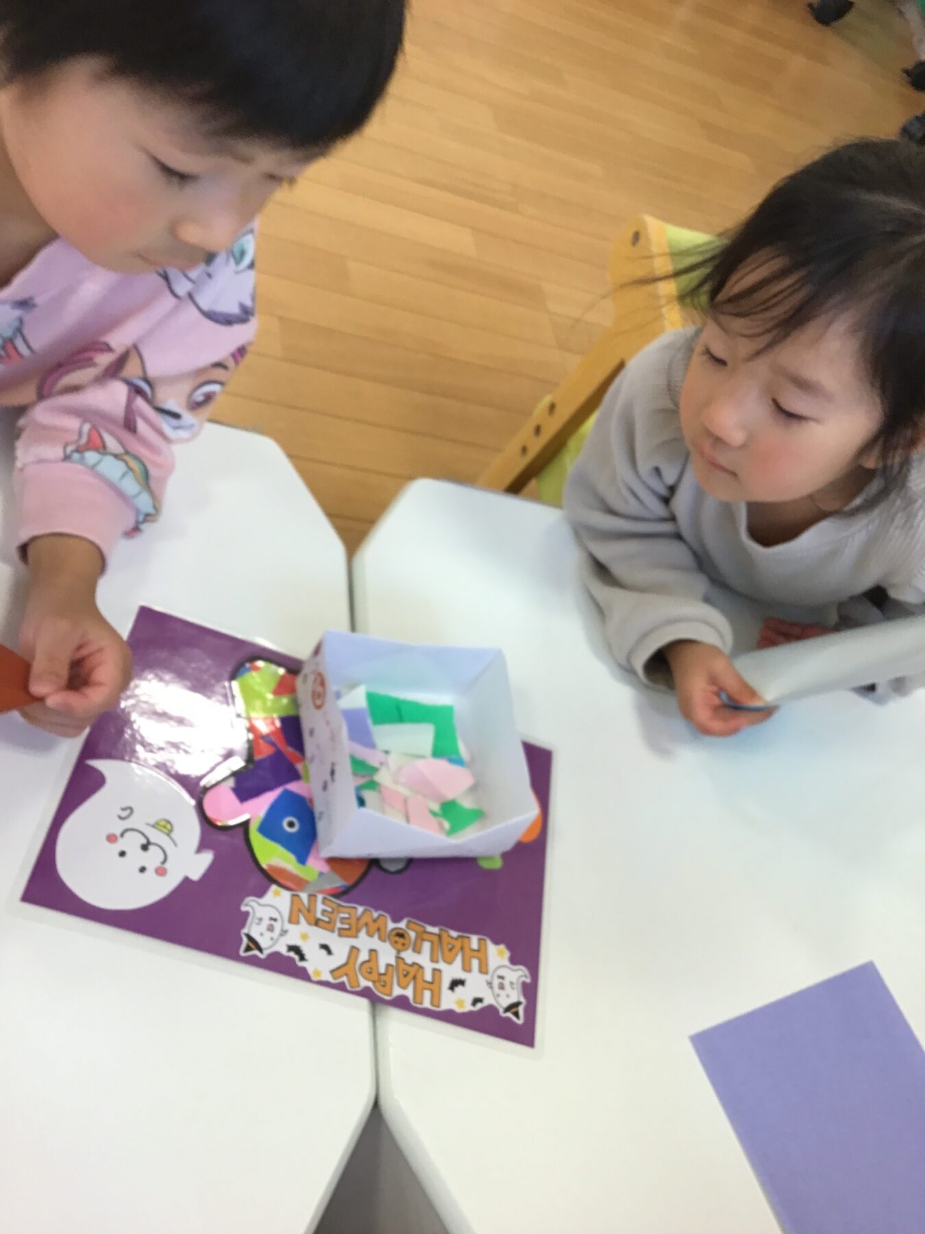 【かえりの会】《本日の?BOXは おばけのちぎり絵です👻》