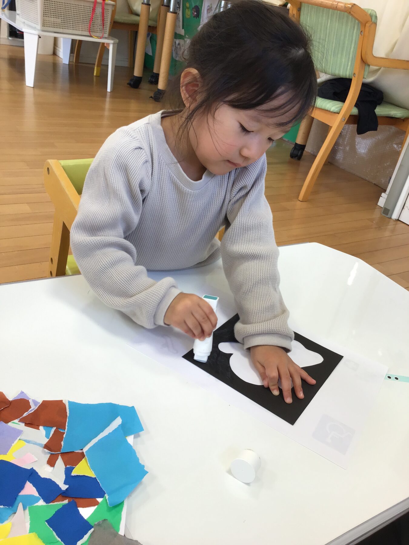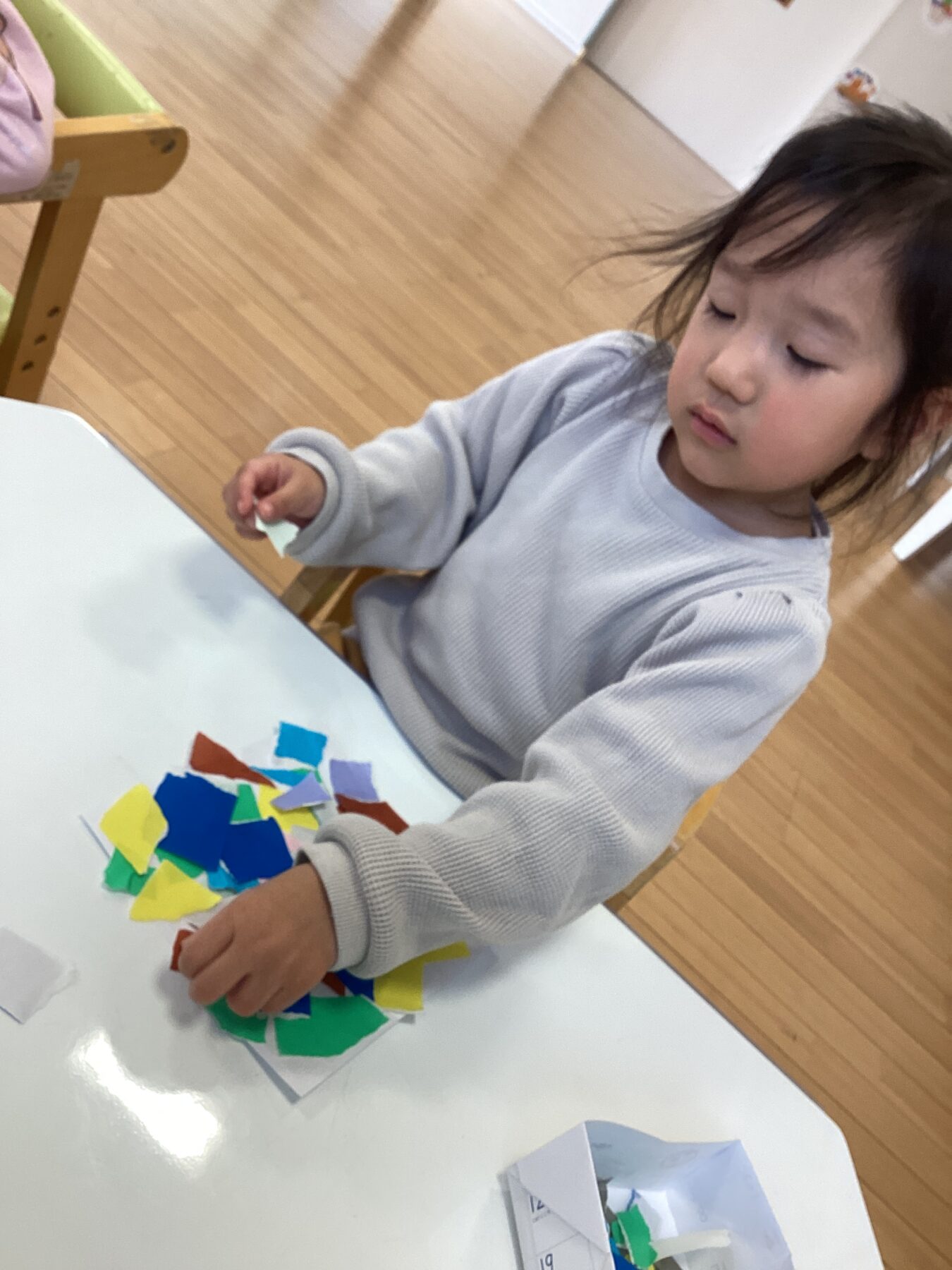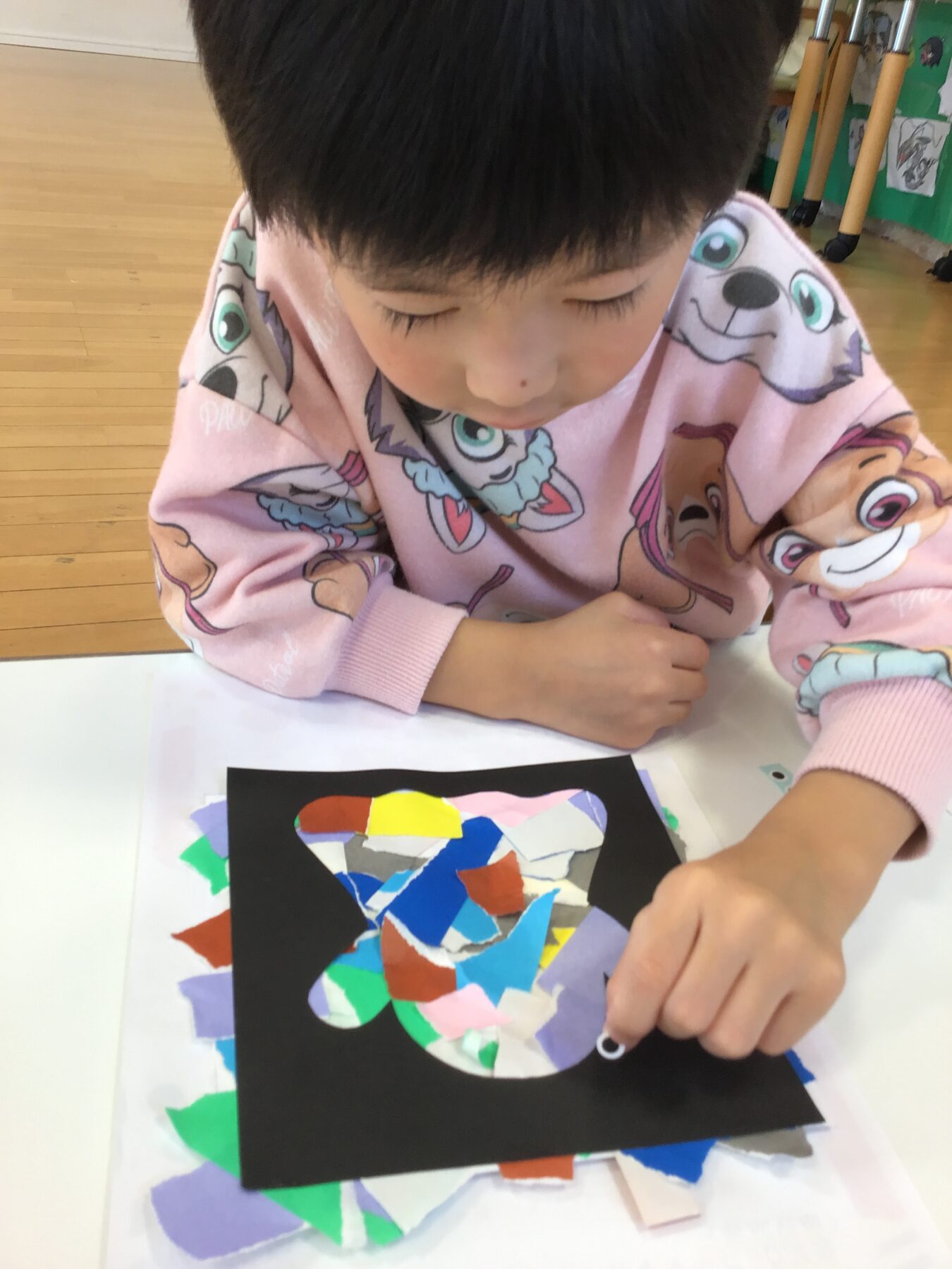 ちぎった折り紙を、隙間なくたくさん貼ってくださいました。