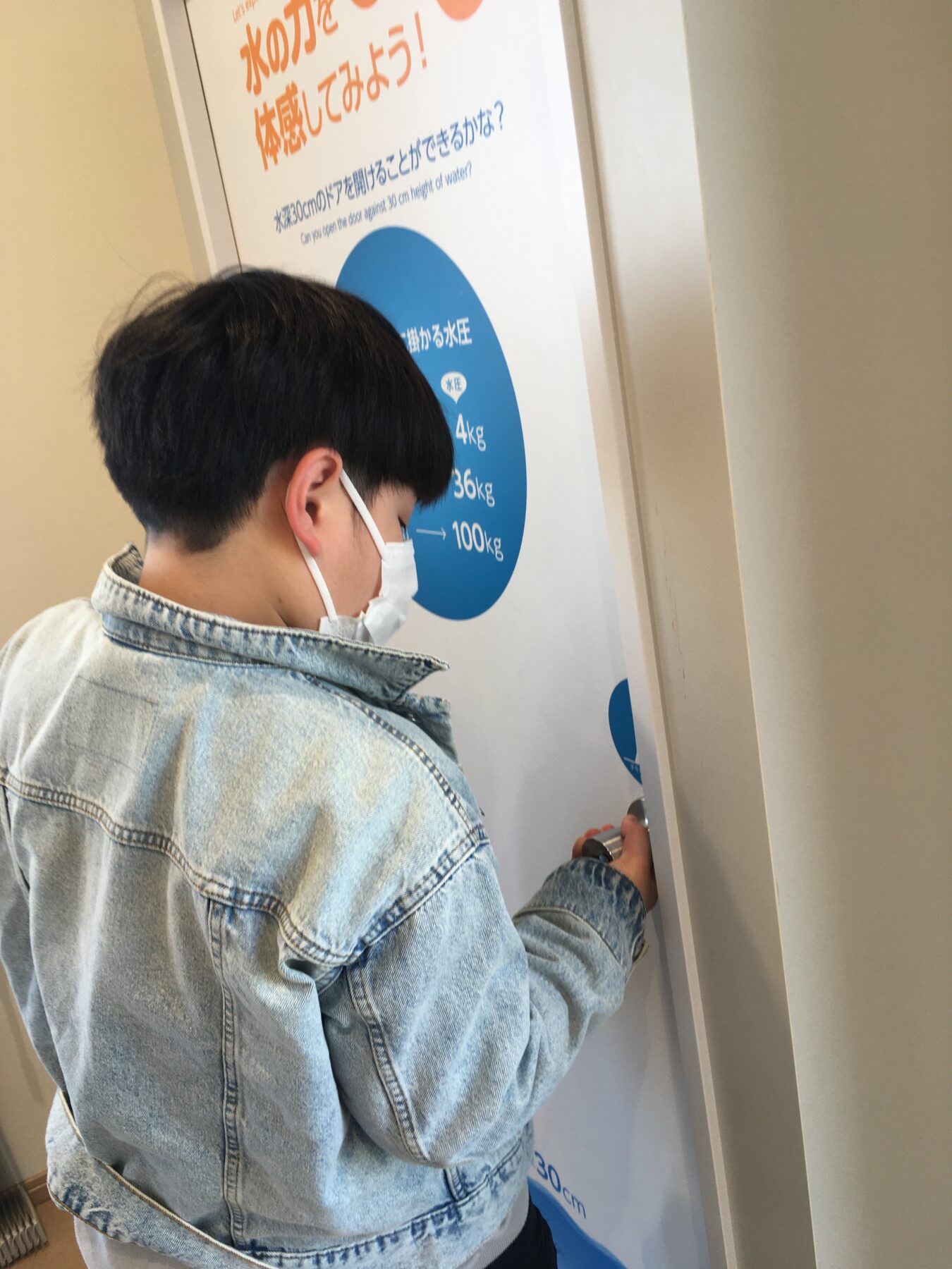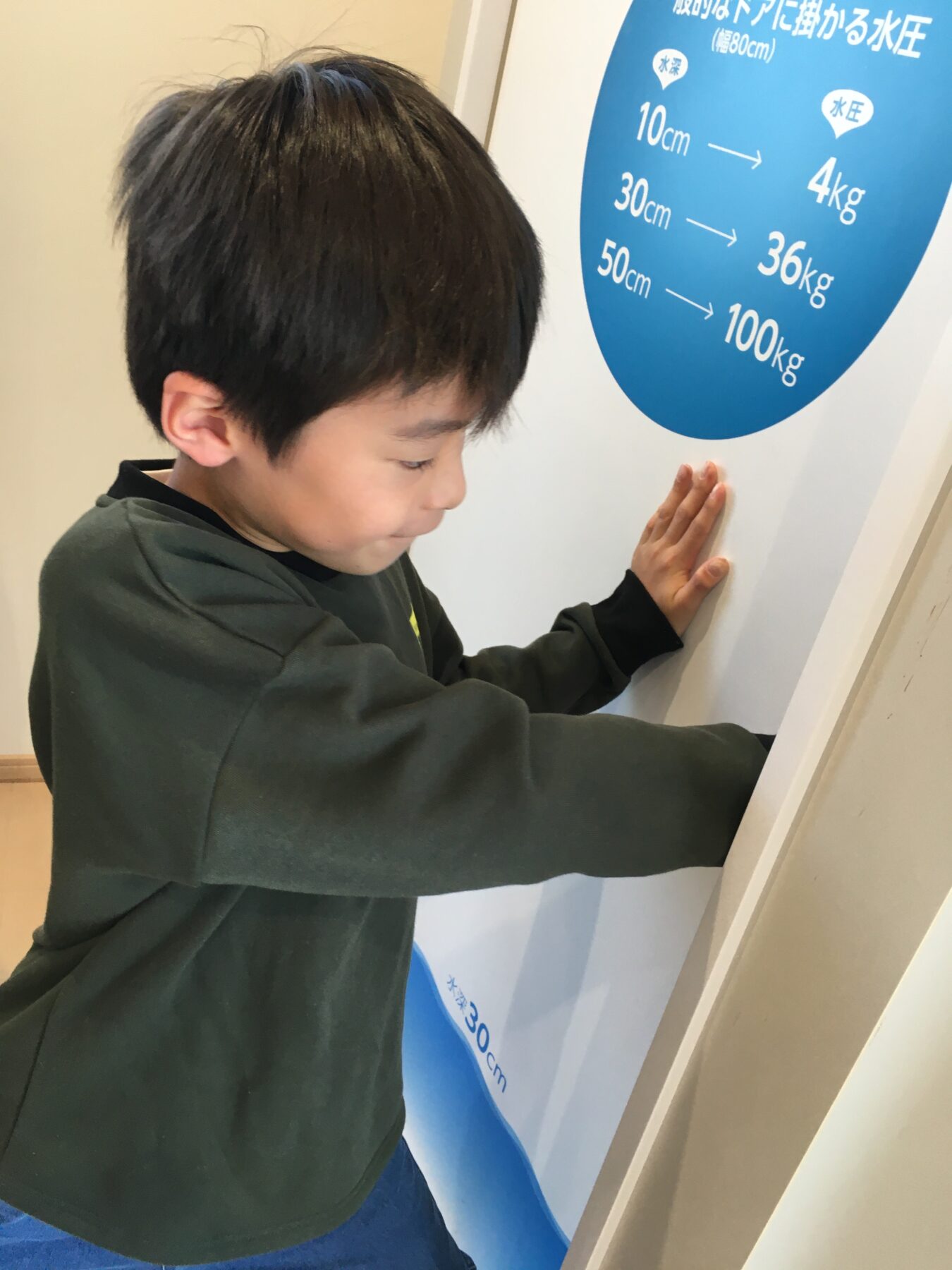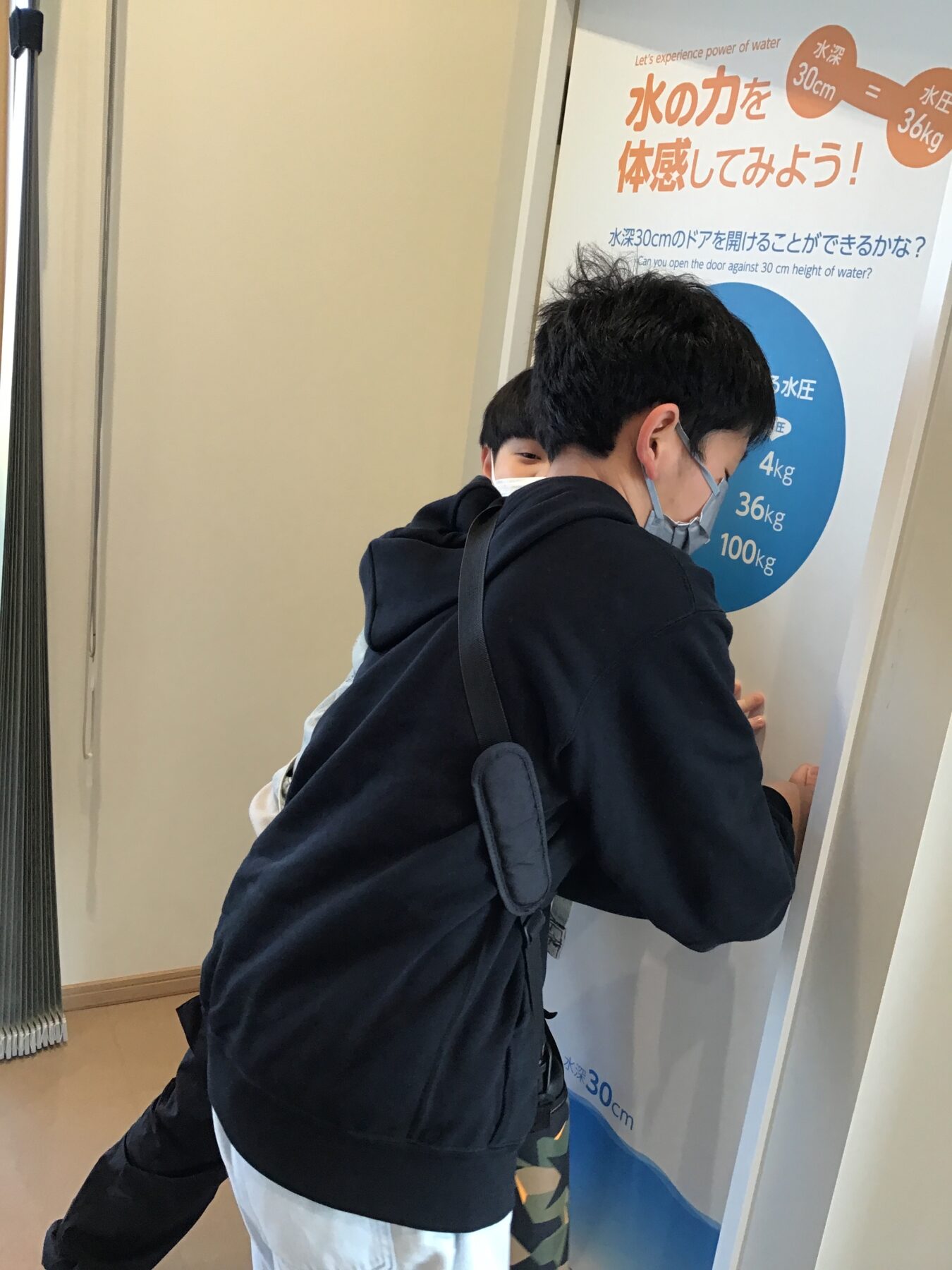 水につかった時にどれくらい足が重くなるのかを体験するコーナーもありました!