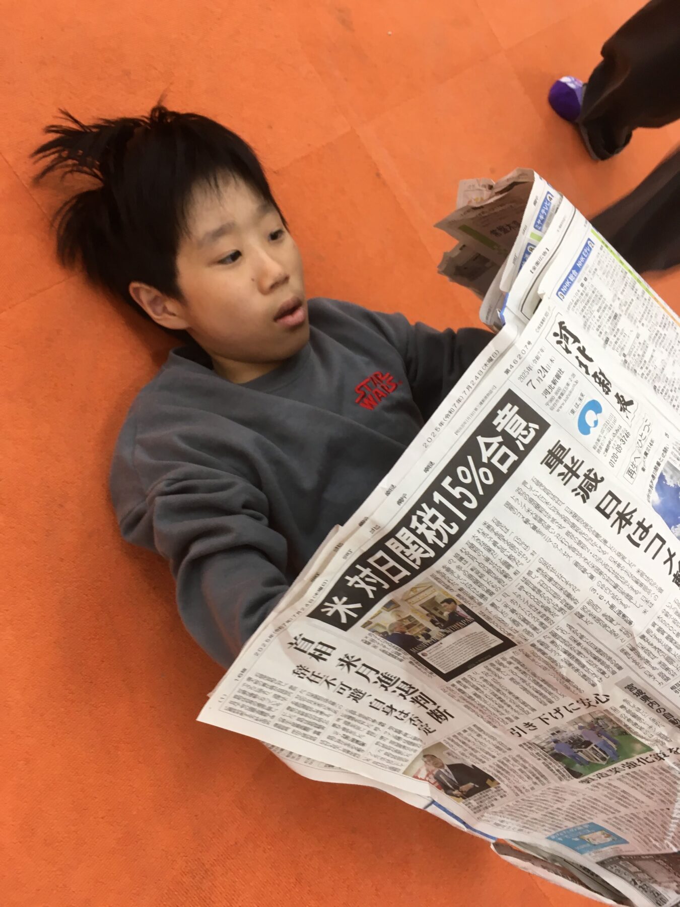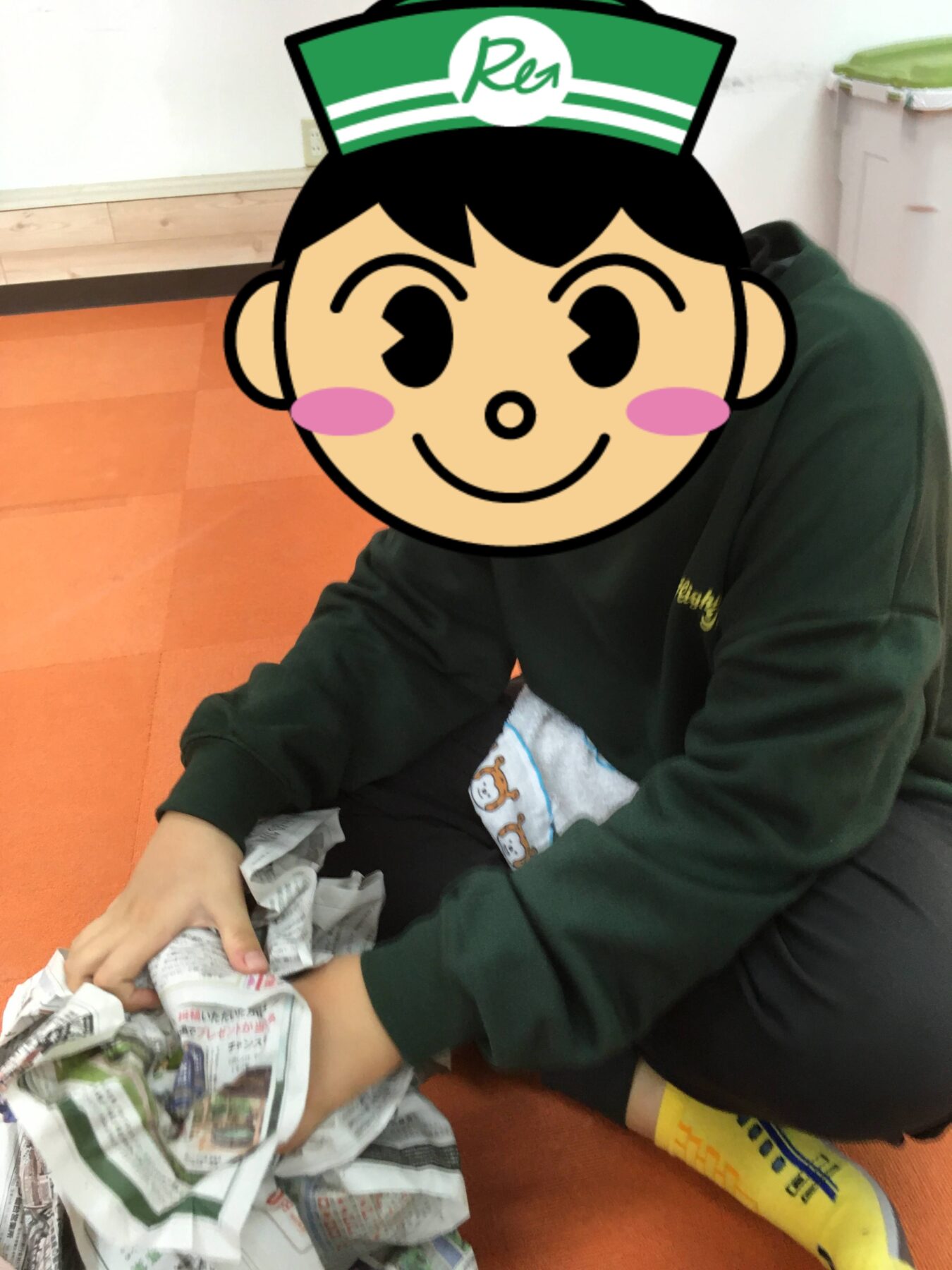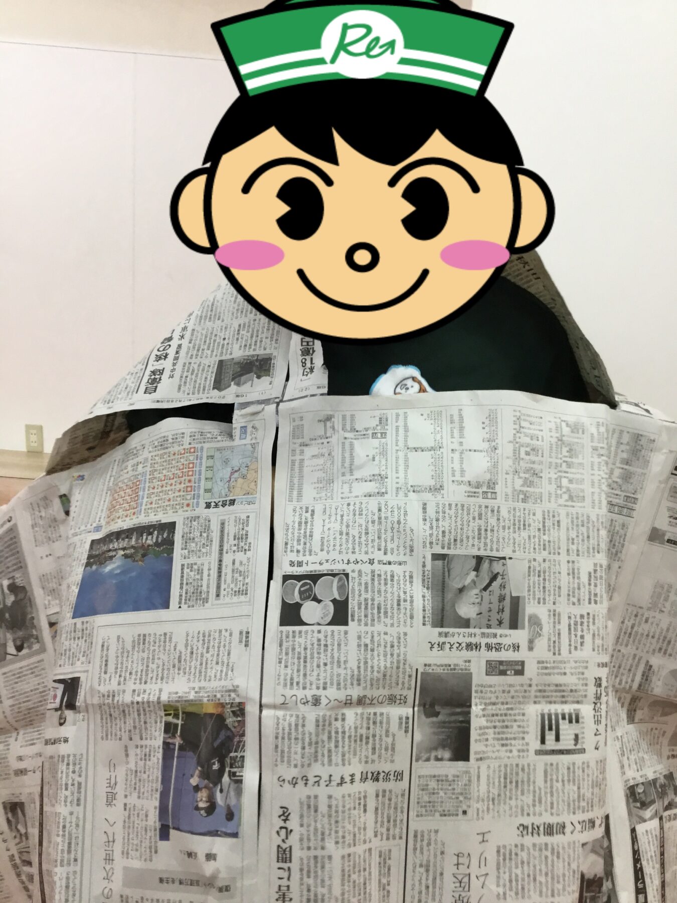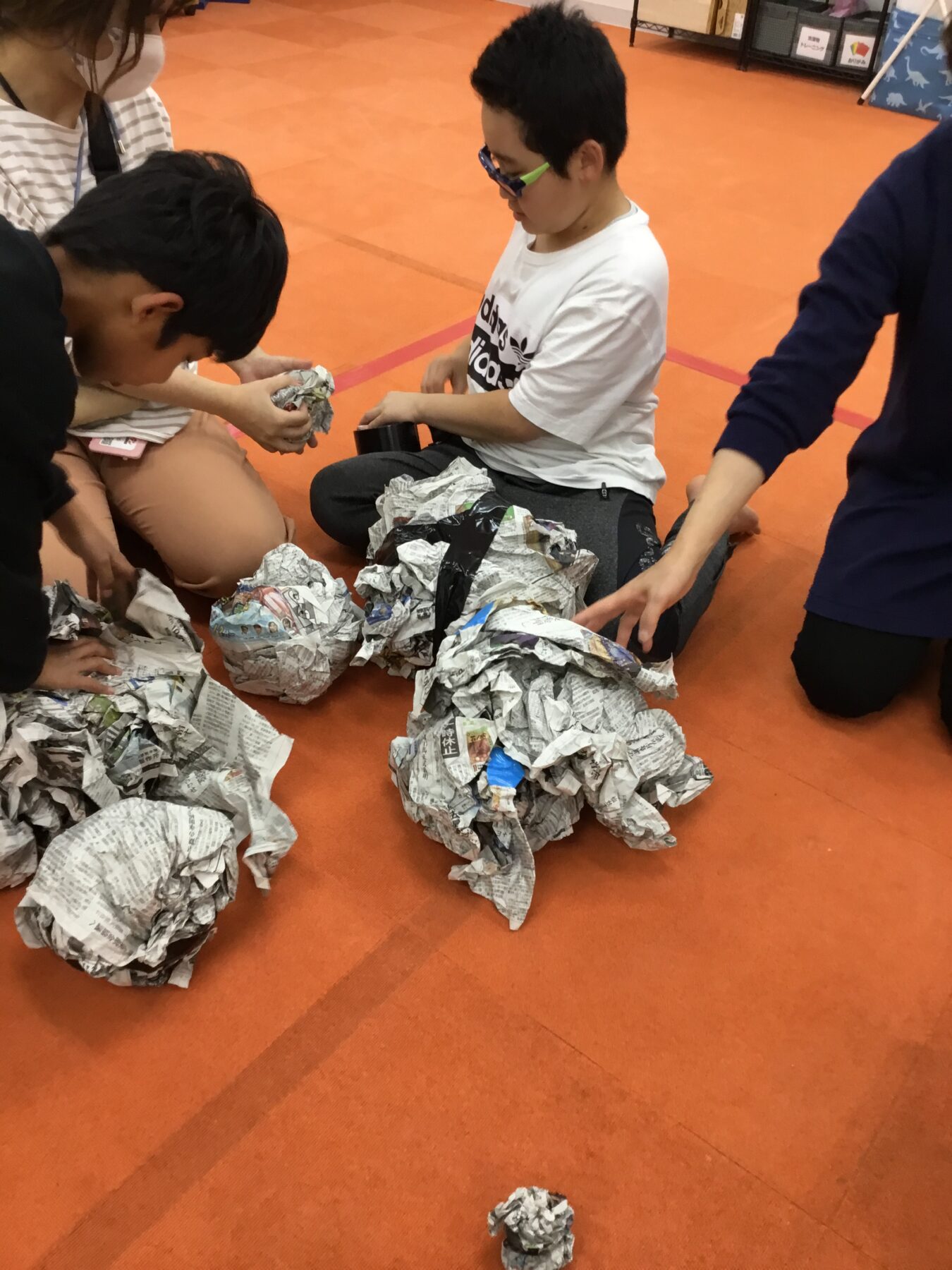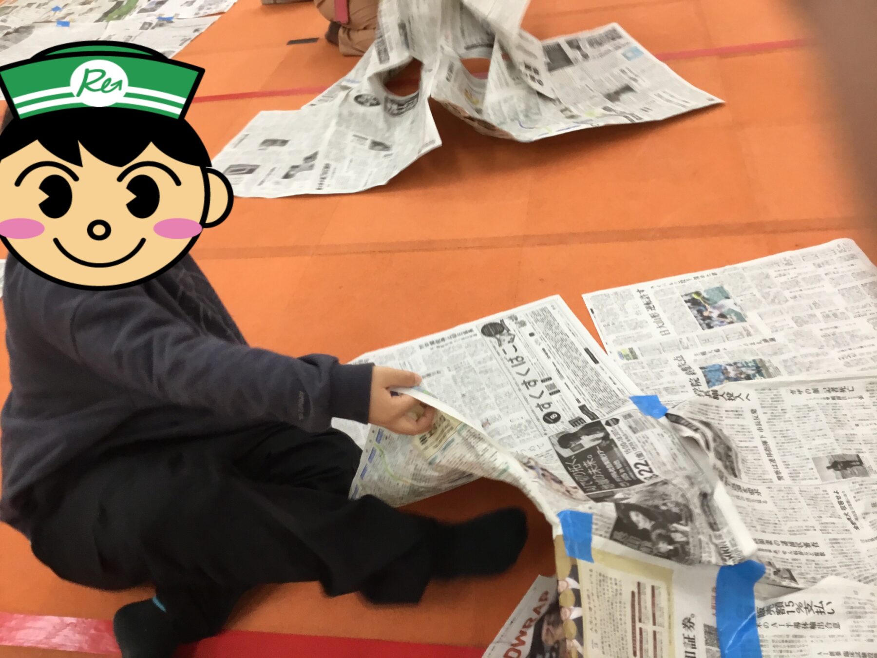 本日は運動活動として新聞を使った活動を2種類行いました。