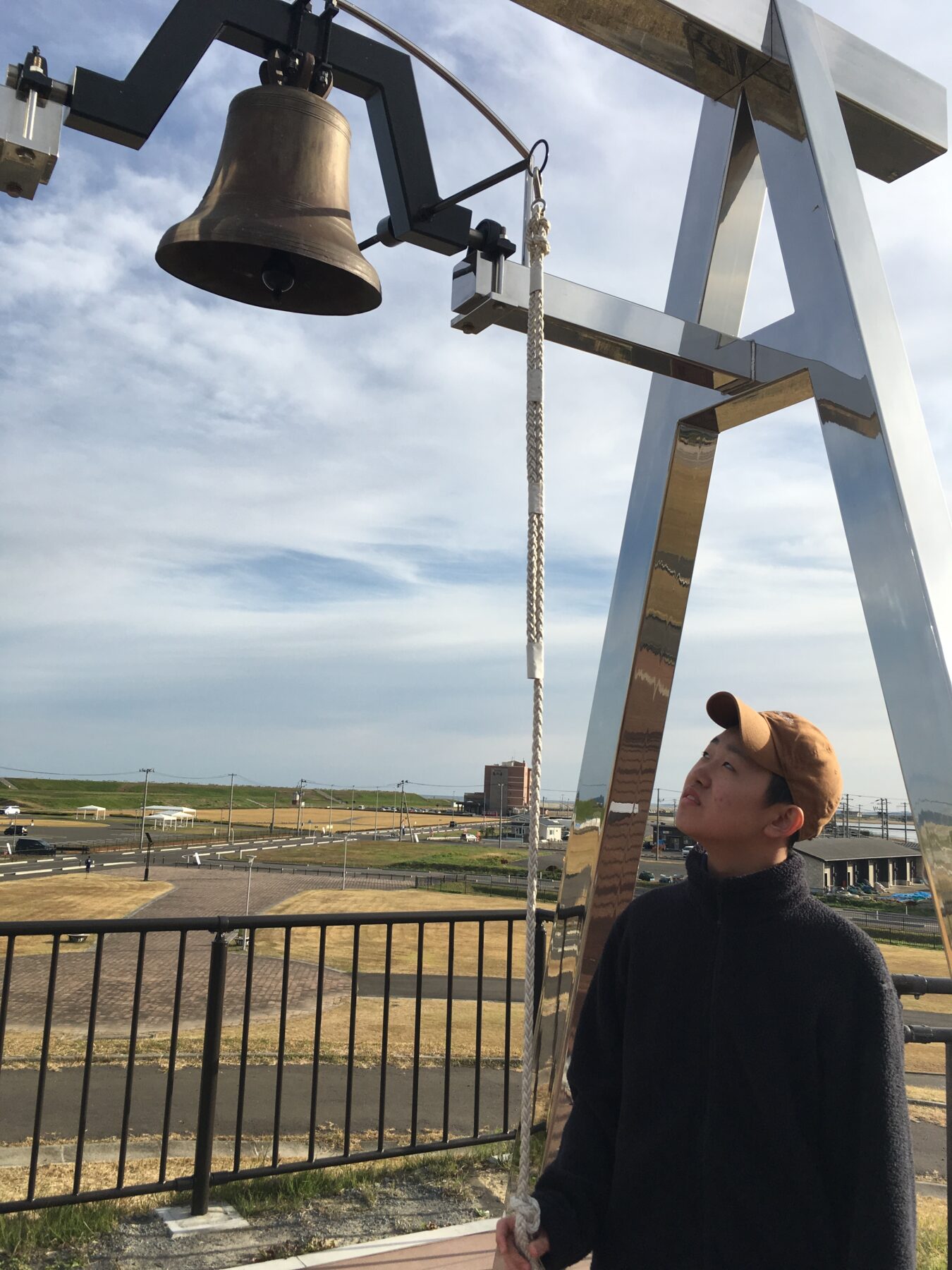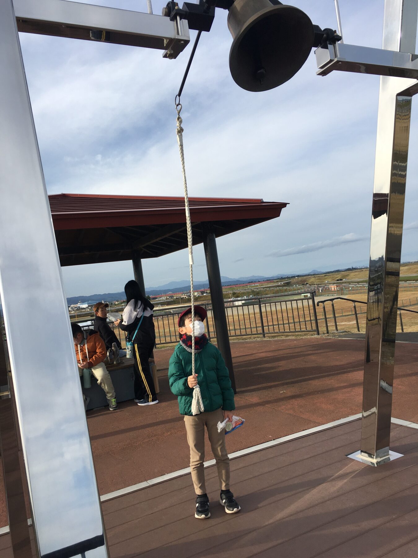 海岸を散歩した後は、平和の鐘を鳴らして鎮魂を願いました