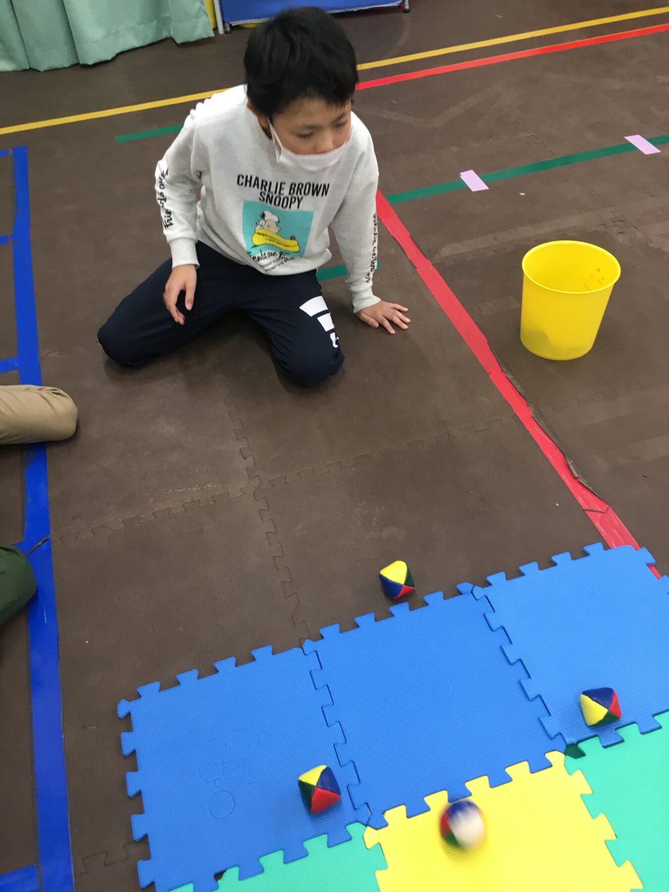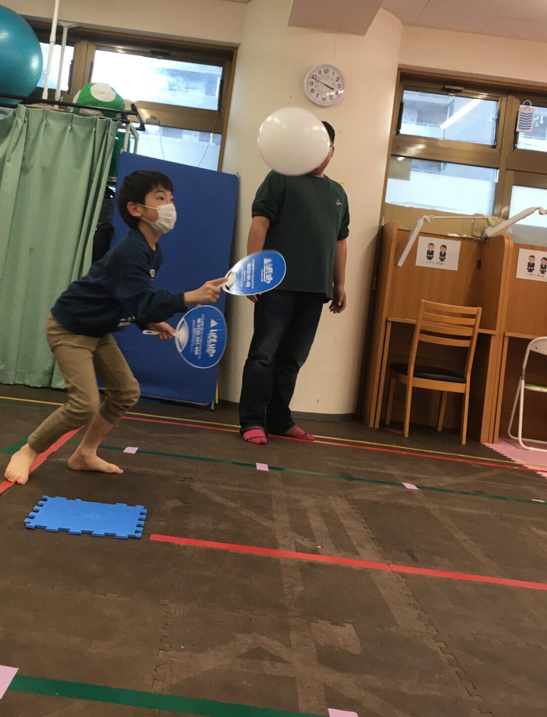 風船パタパタでは、2本のうちわを使って風船をあおぎ、風を使って風船を目的地までコントロールして運ぶ、感覚遊びとして体験していただきました。