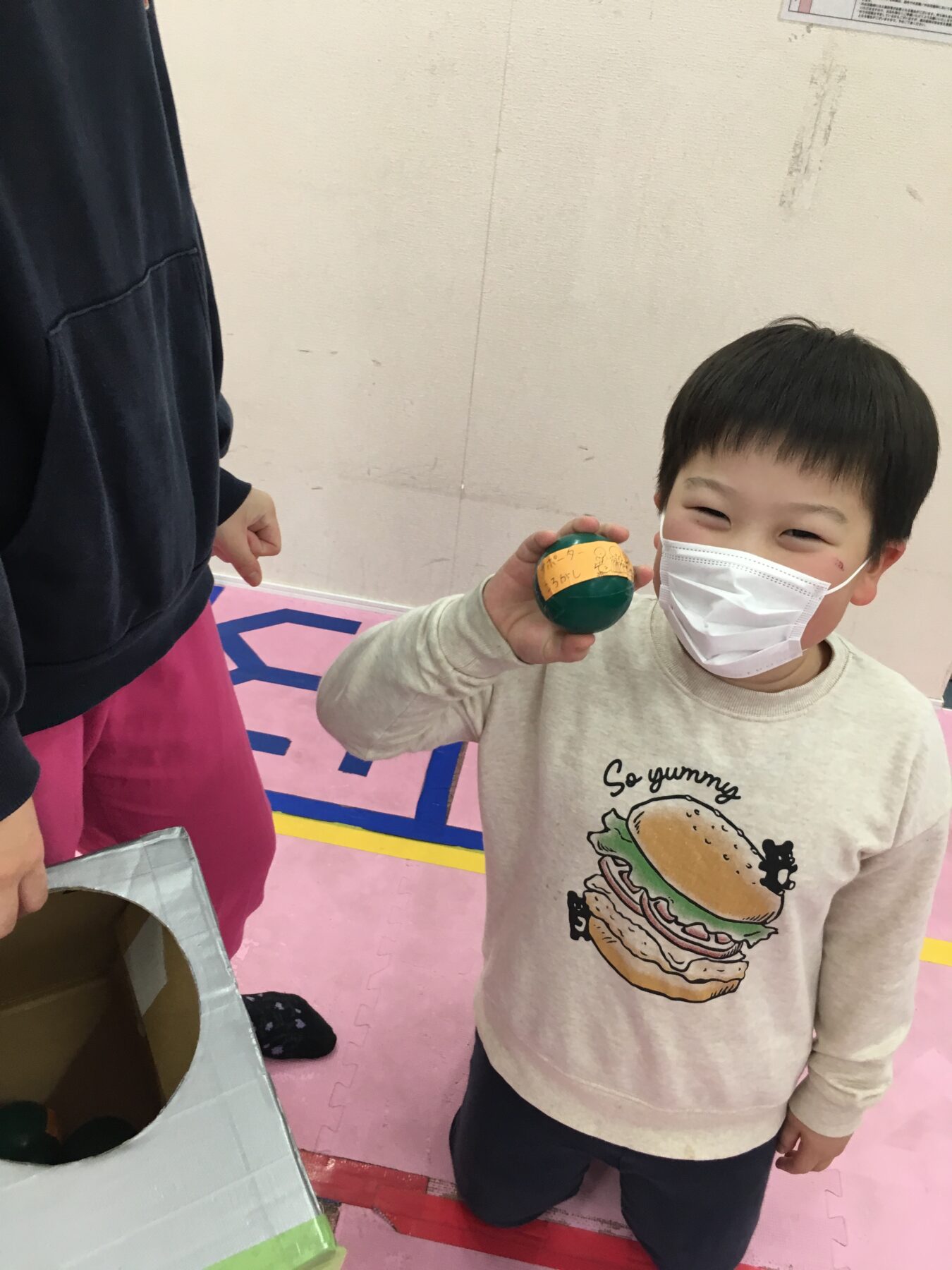 箱の中にボールが入っており、代表のお友だち1名がそこから1個ボールを引きます。