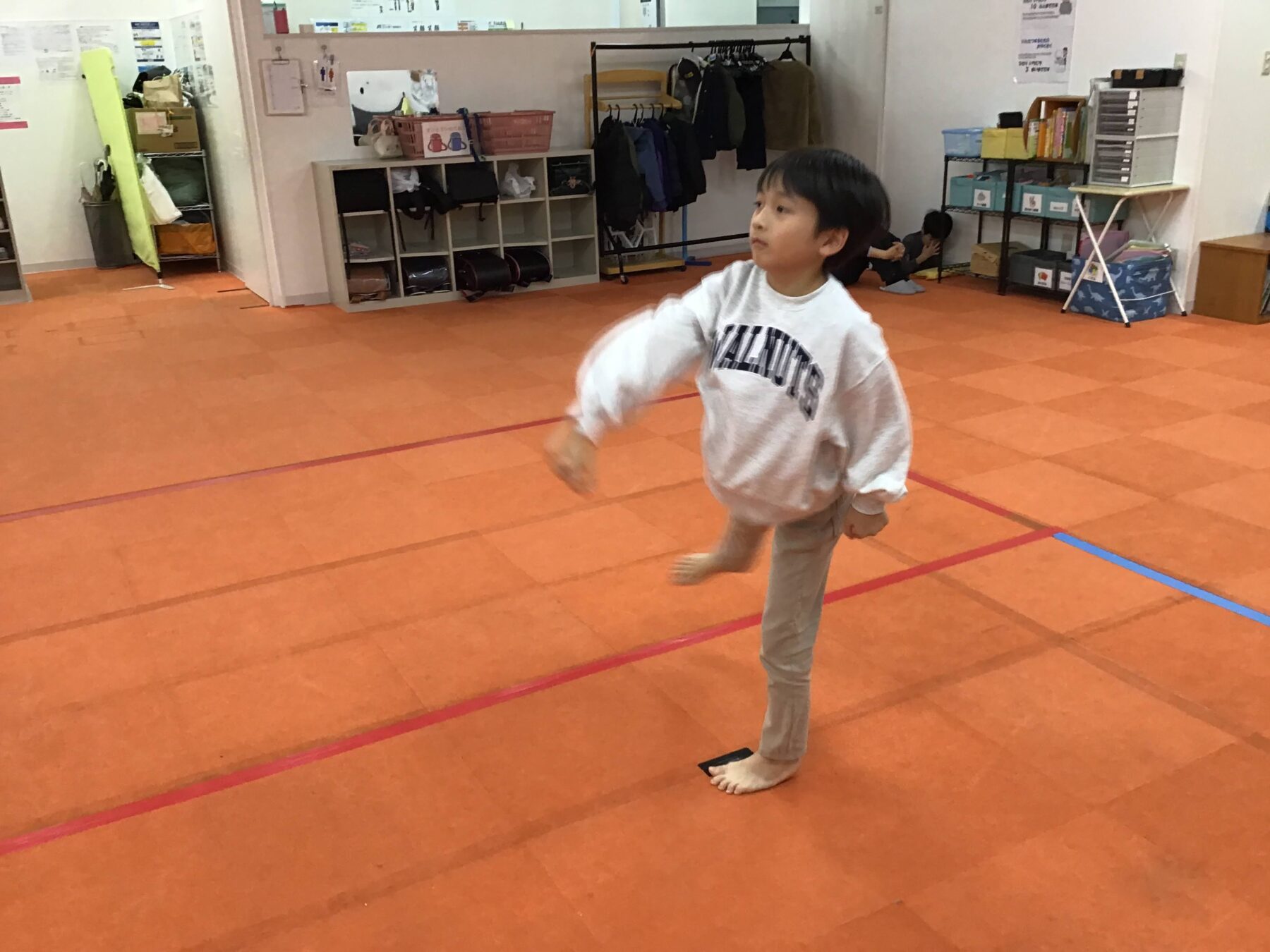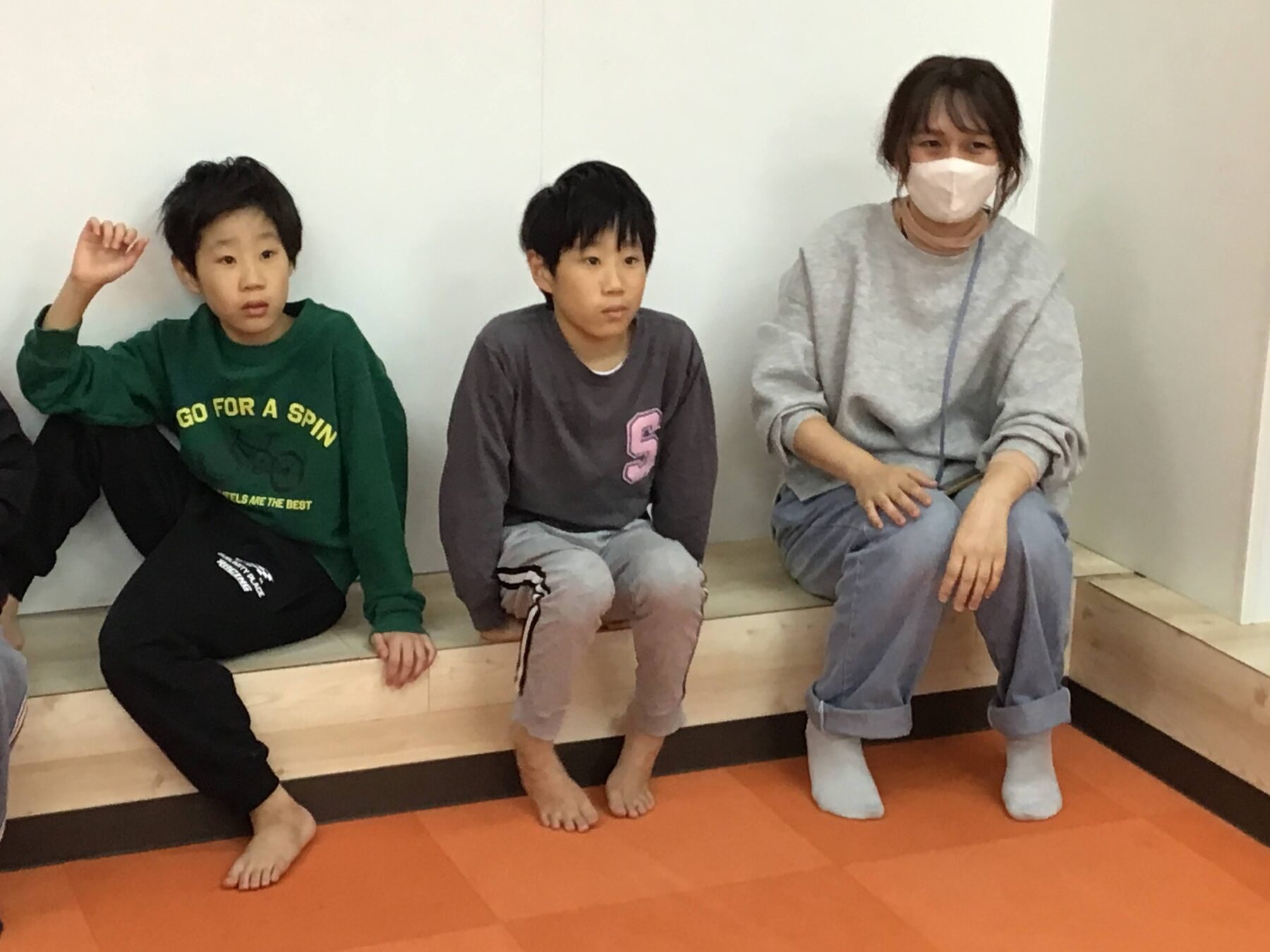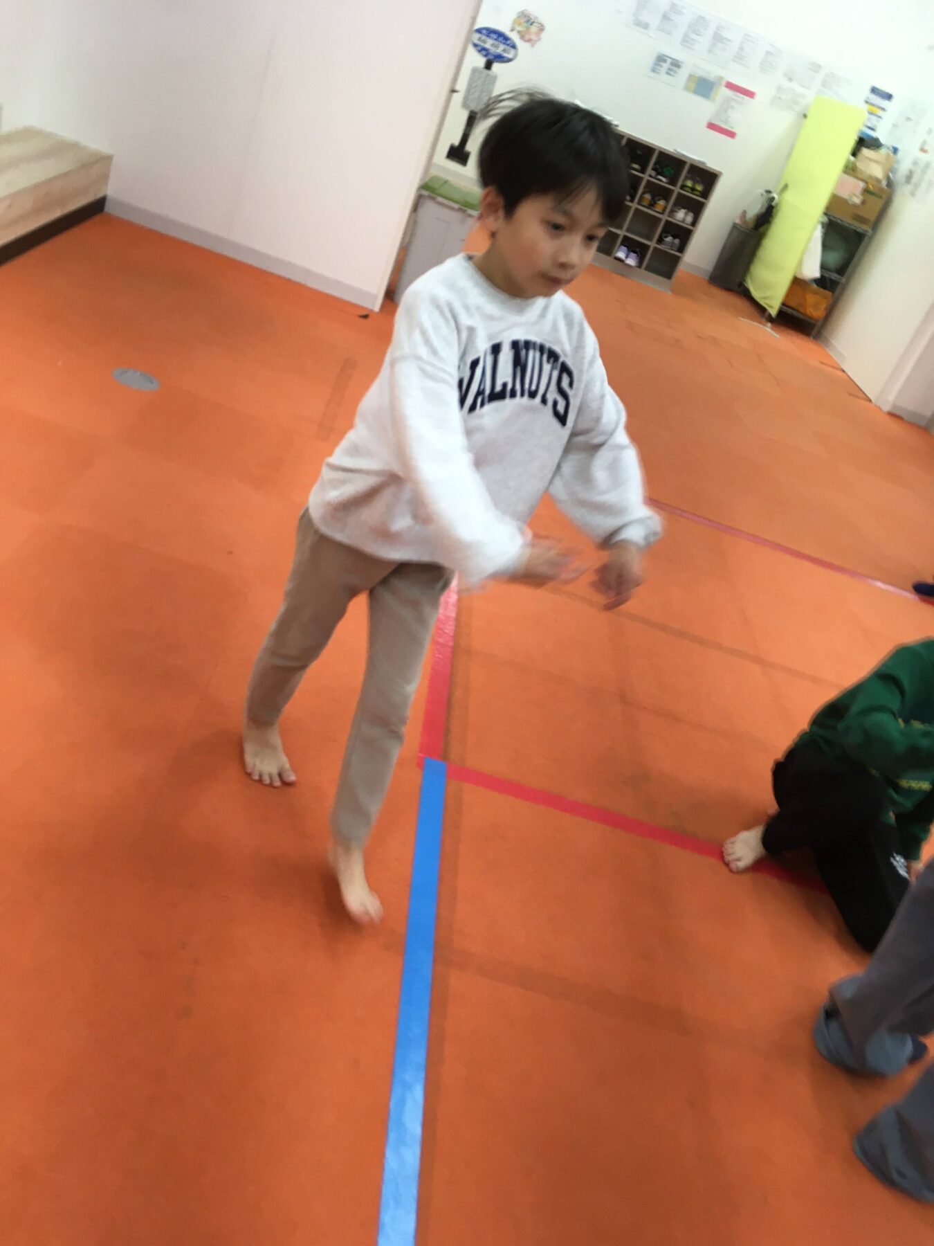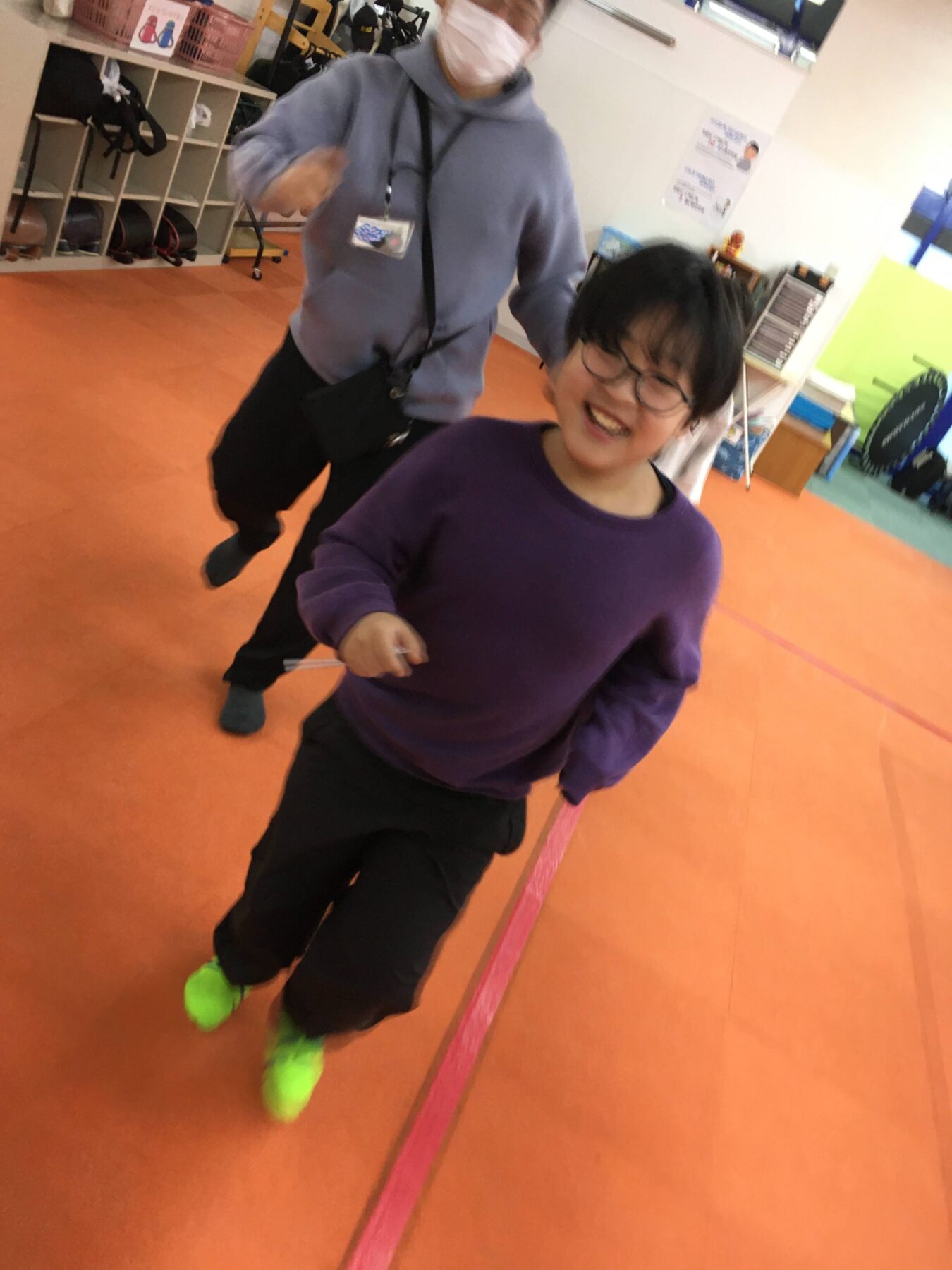 はじめは、英語の曲に合わせて走ったり歩いたりしましたよ♪