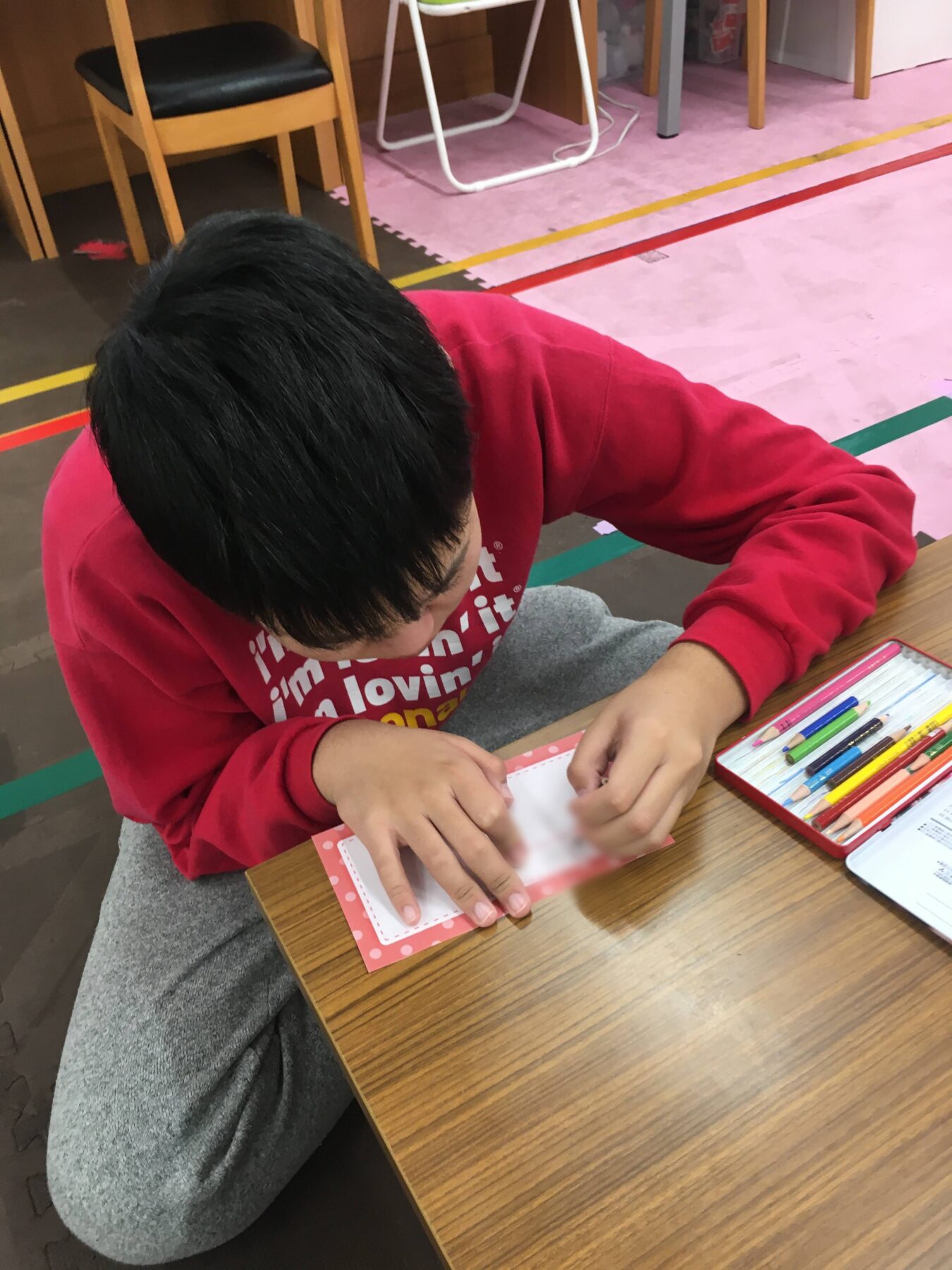 本日は、11月23日の勤労感謝の日に向けてメッセージカードづくりを行いました。