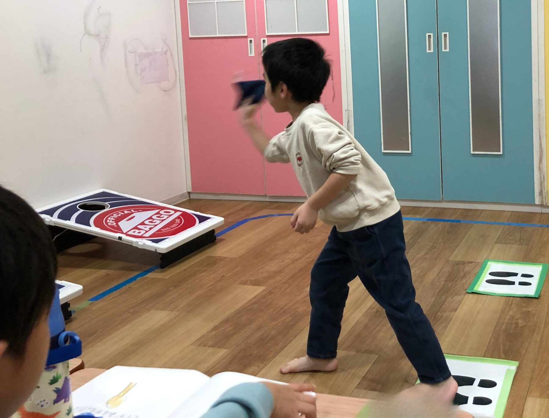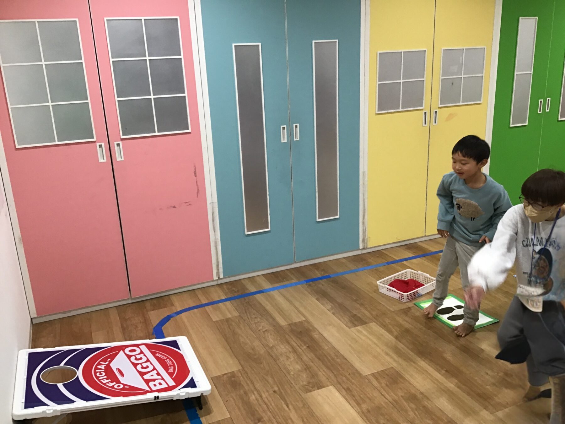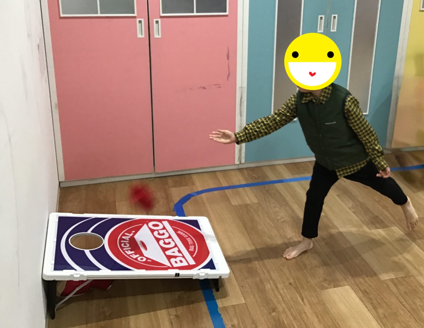 少し離れた場所にあるボードにある穴に豆が入った小さなバッグ(ビーンバッグ)を投げ入れるシンプルなゲームです。