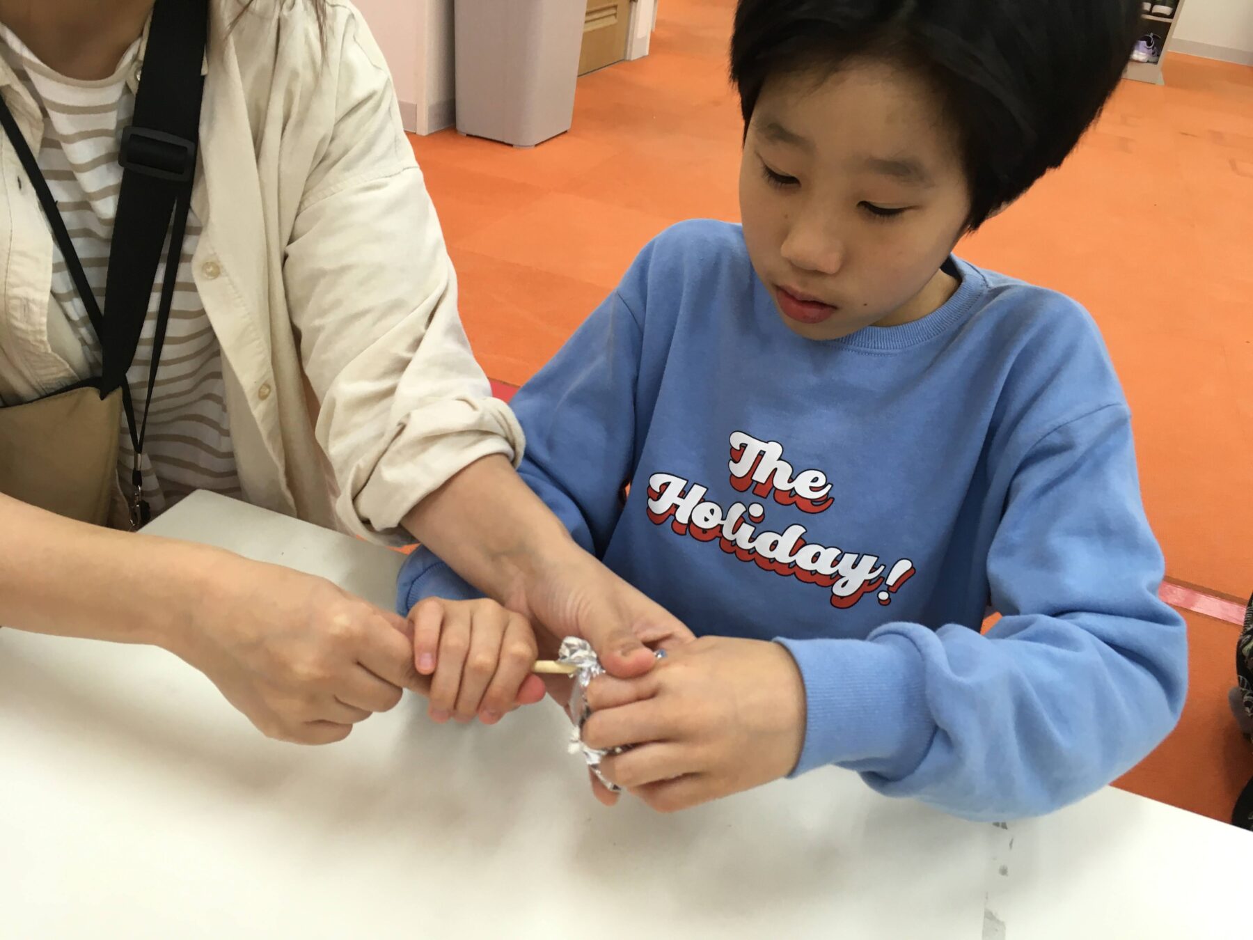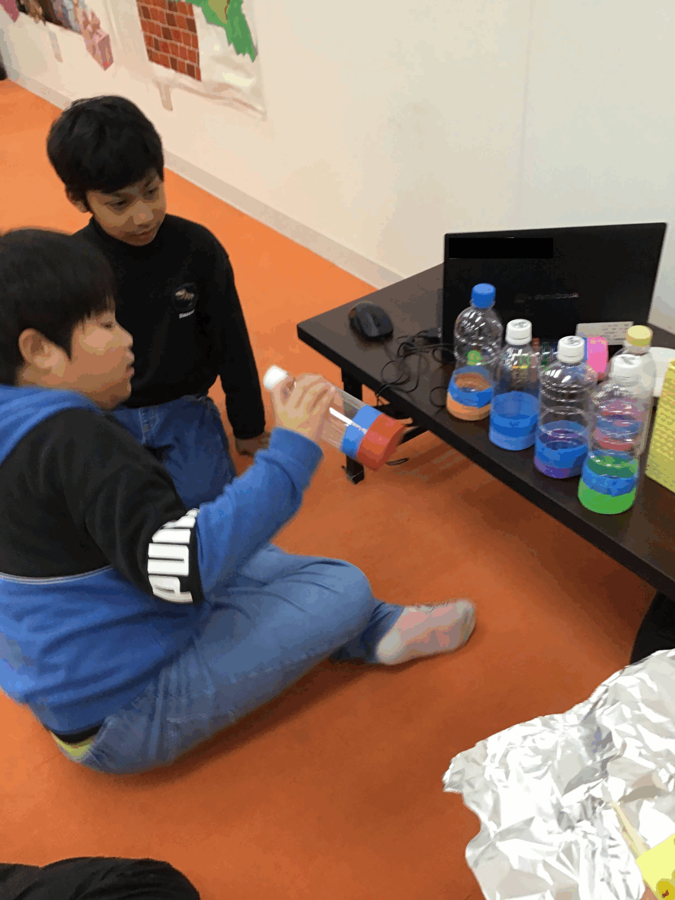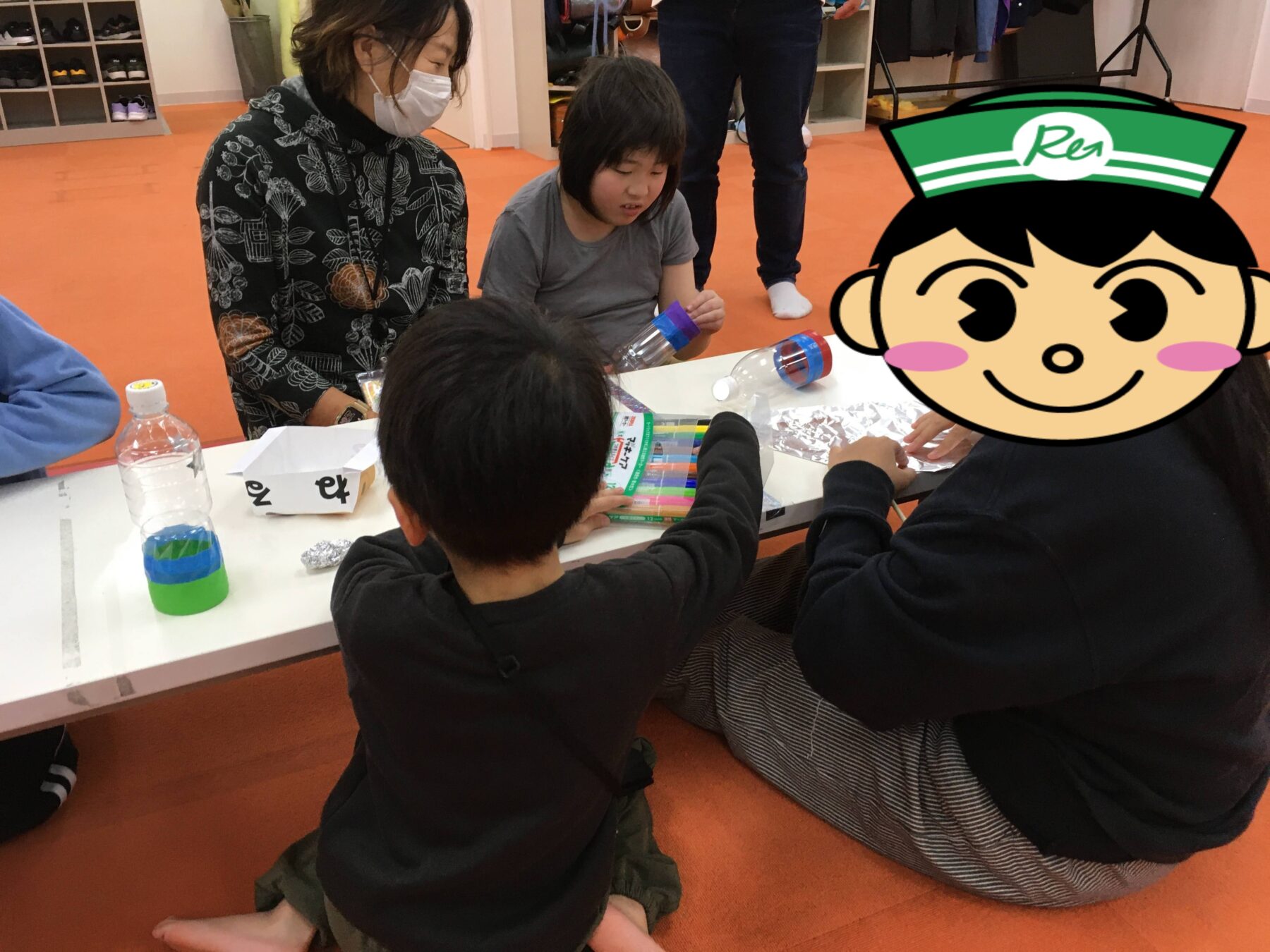 サポーターから作り方の説明を聞いたら、好きなペットボトルを選んで制作スタート☆