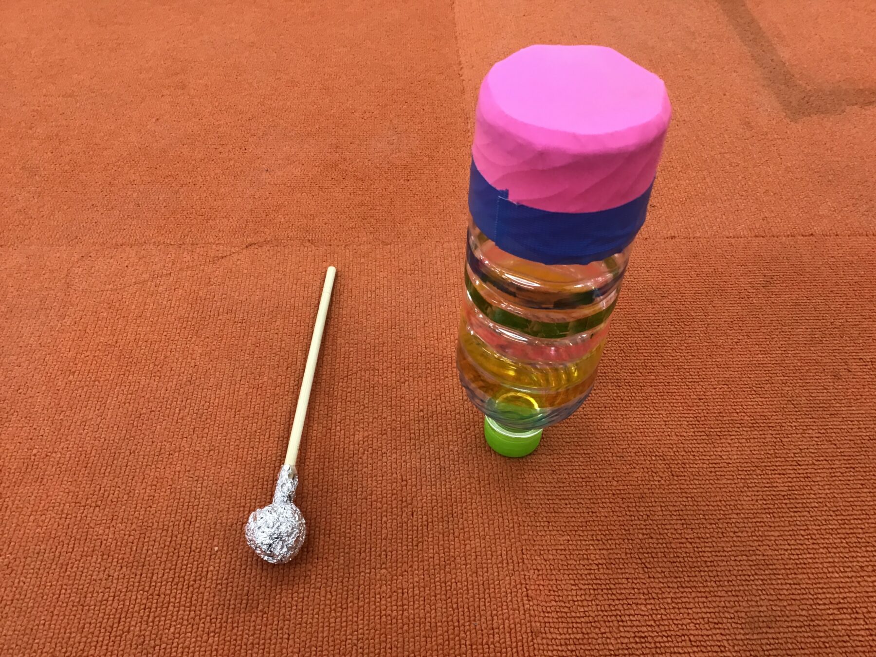 ペットボトルと風船で太鼓をつくり、動画に合わせて鳴らして遊びました🎶