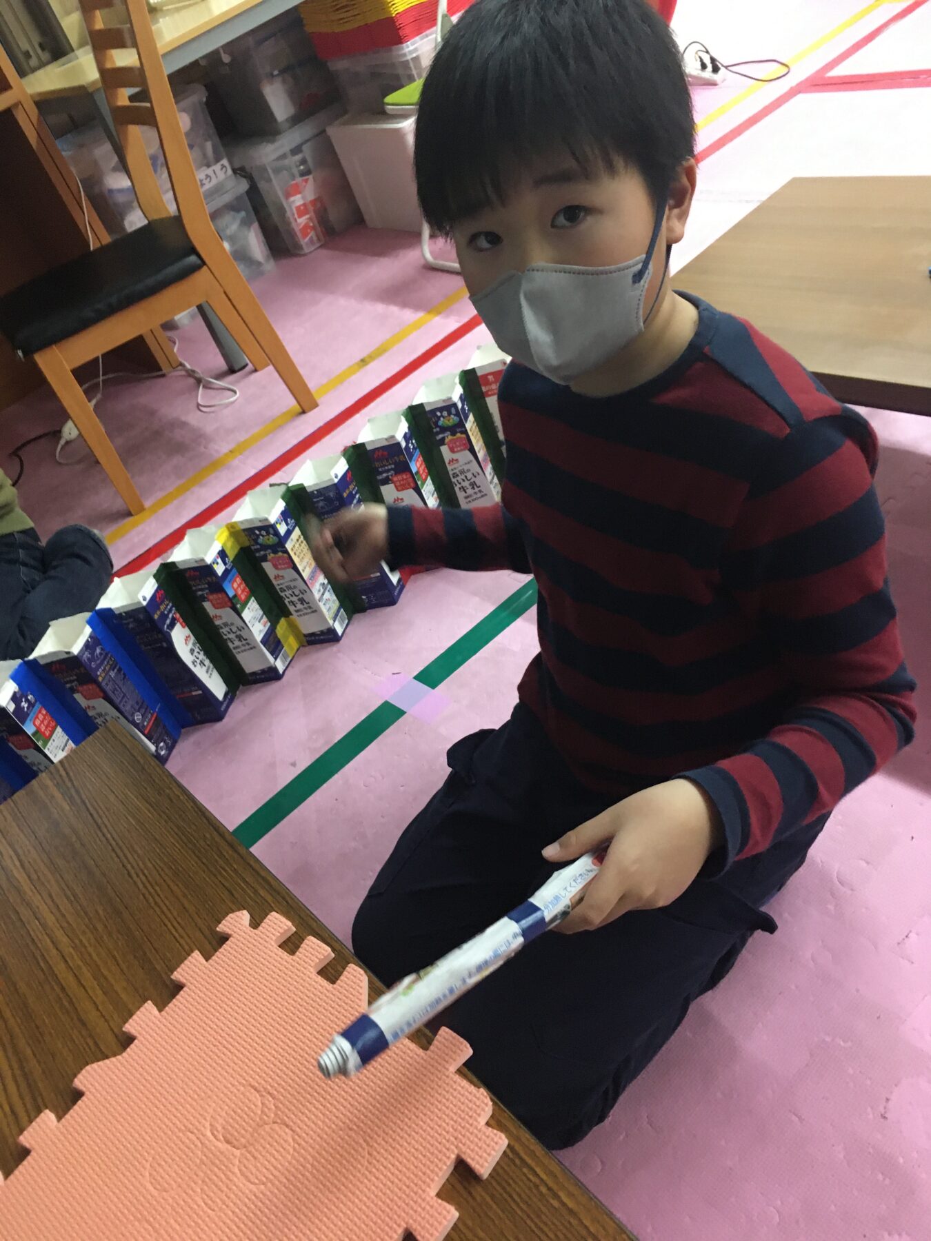 しっかりテープを巻いて叩きやすいバチができたね。