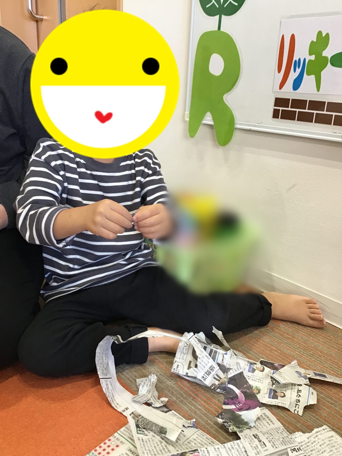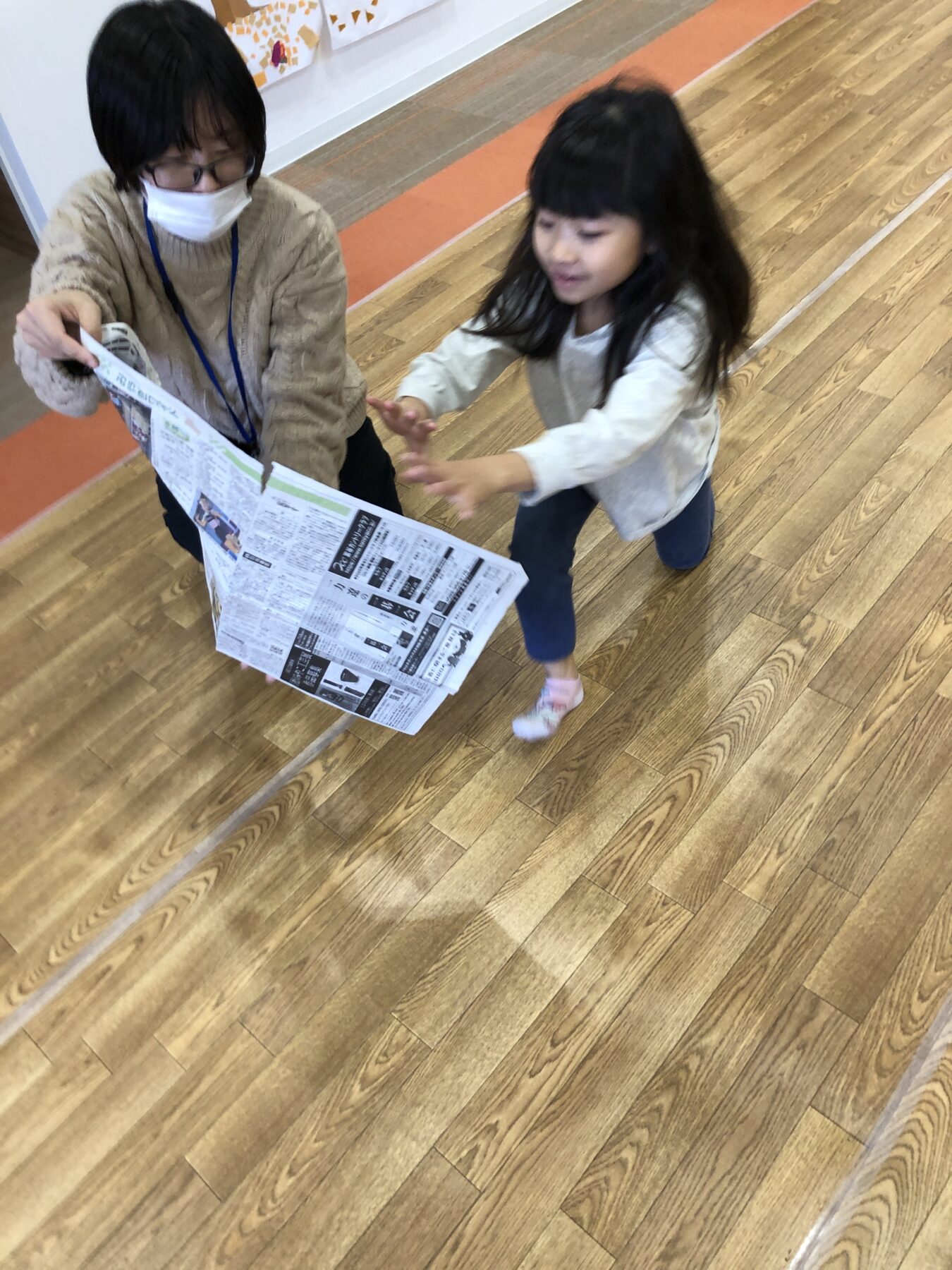 リッキーガーデン仙台あすと長町(放課後等デイサービス・児童発達支援)みっけ学舎ホール・新聞紙遊び