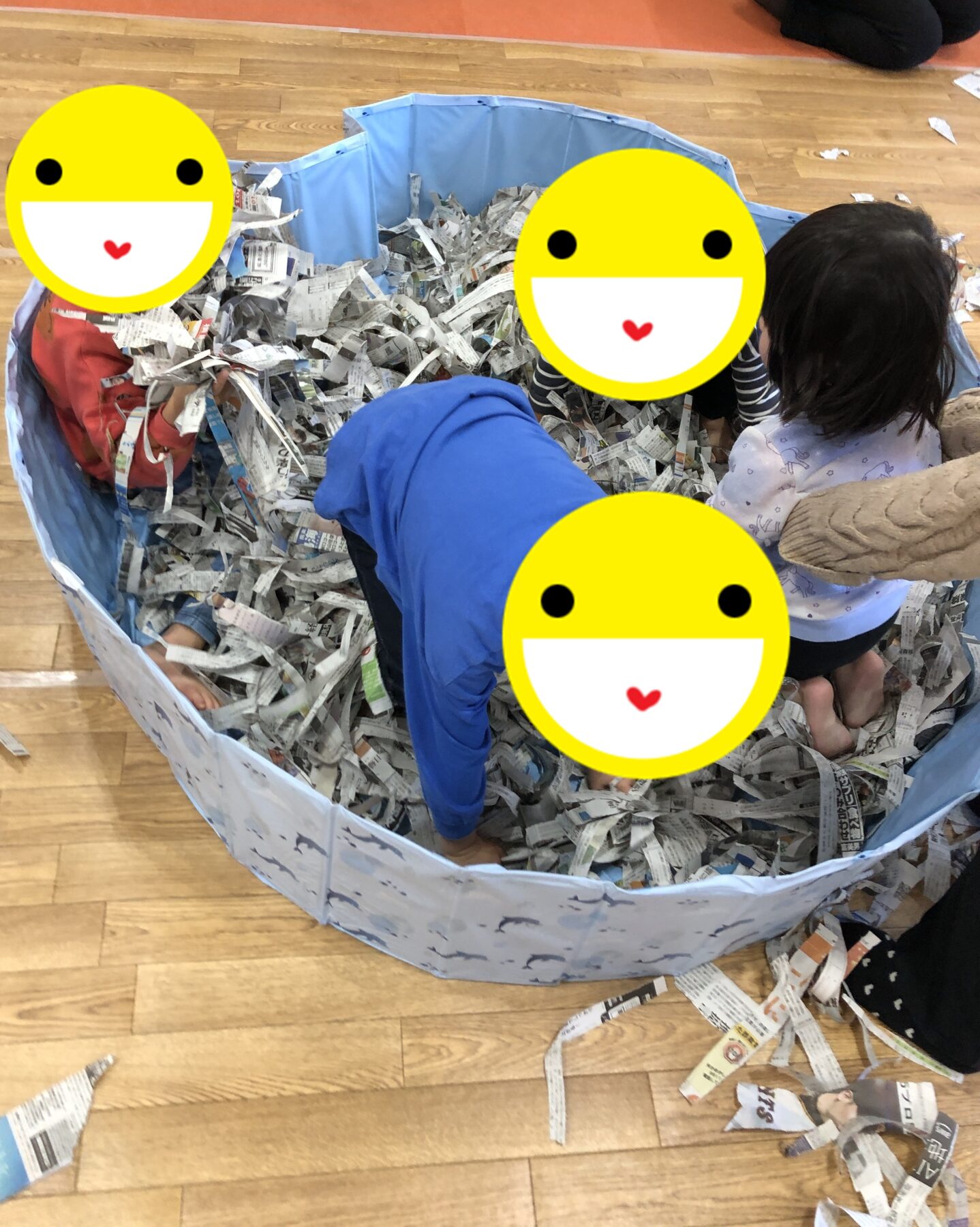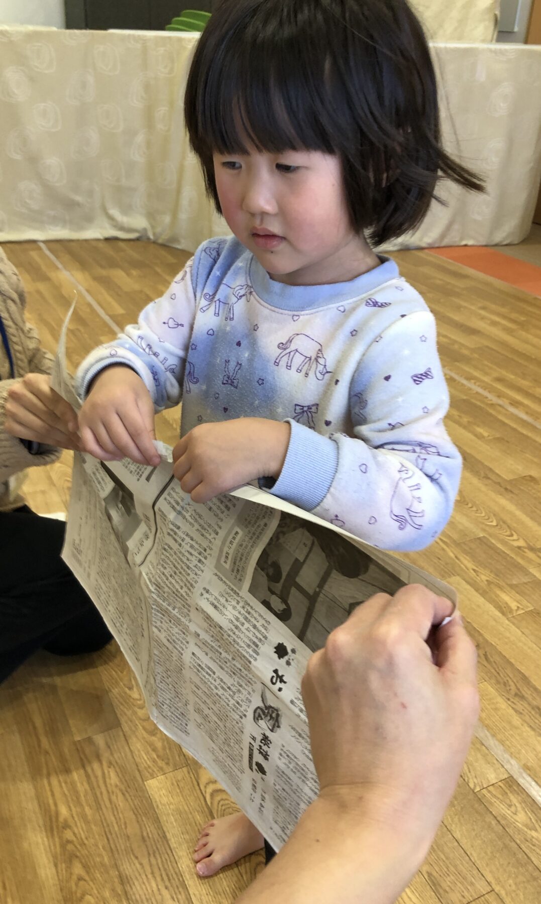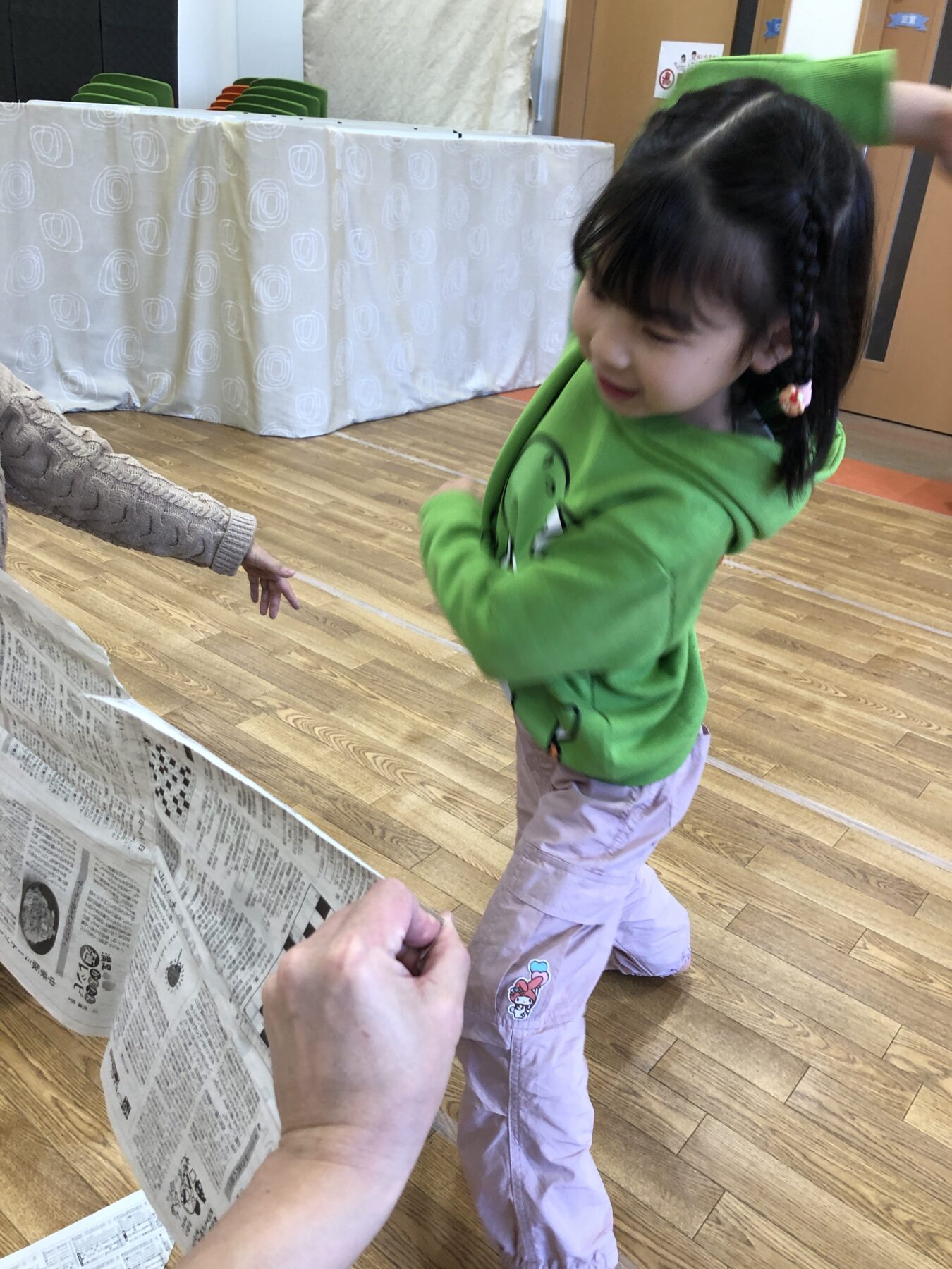新聞紙を使って色々な感覚を楽しんでもらいました。