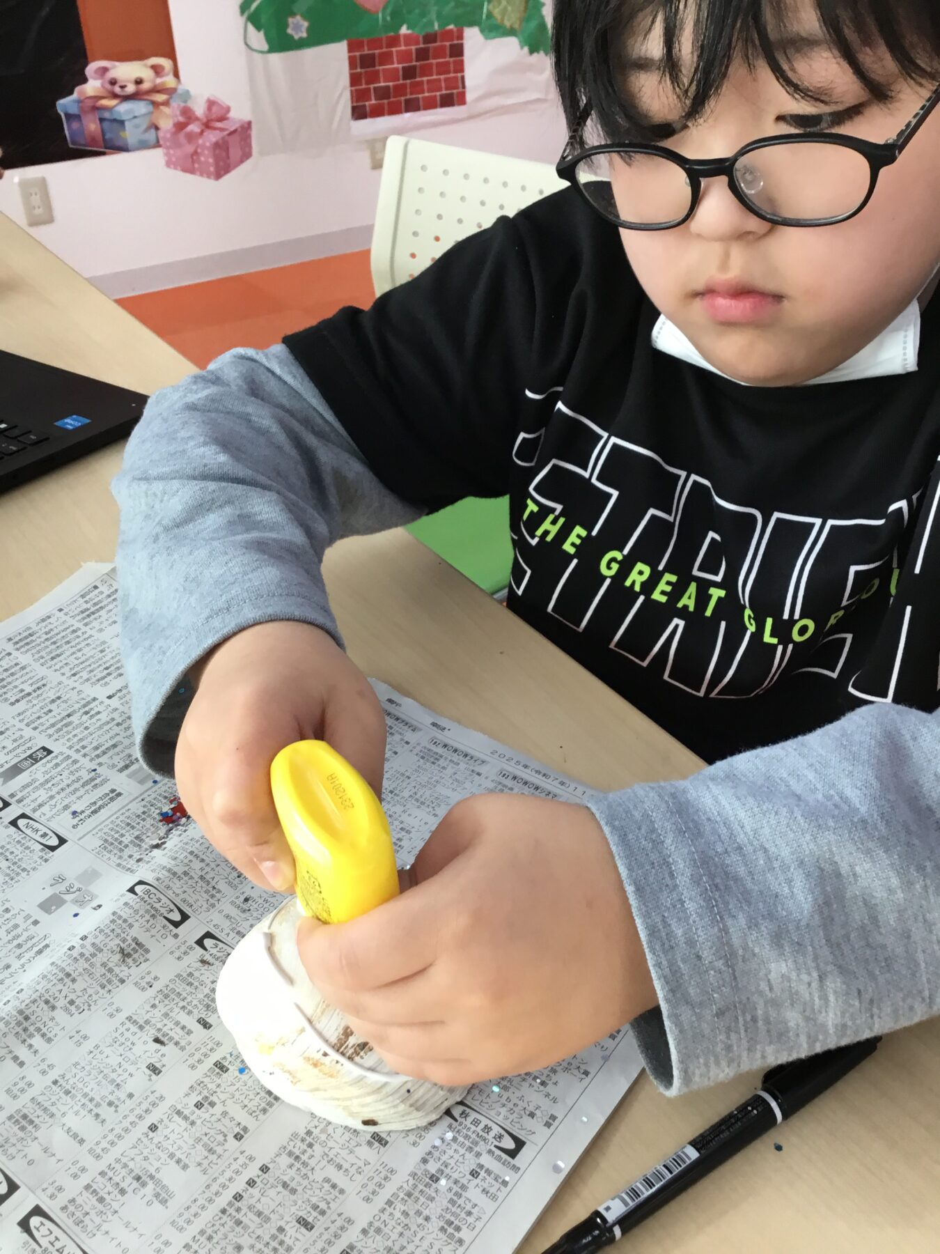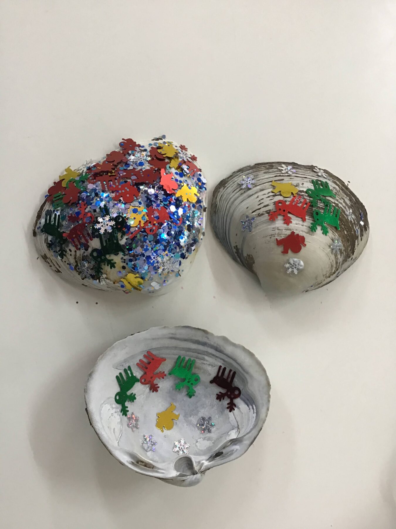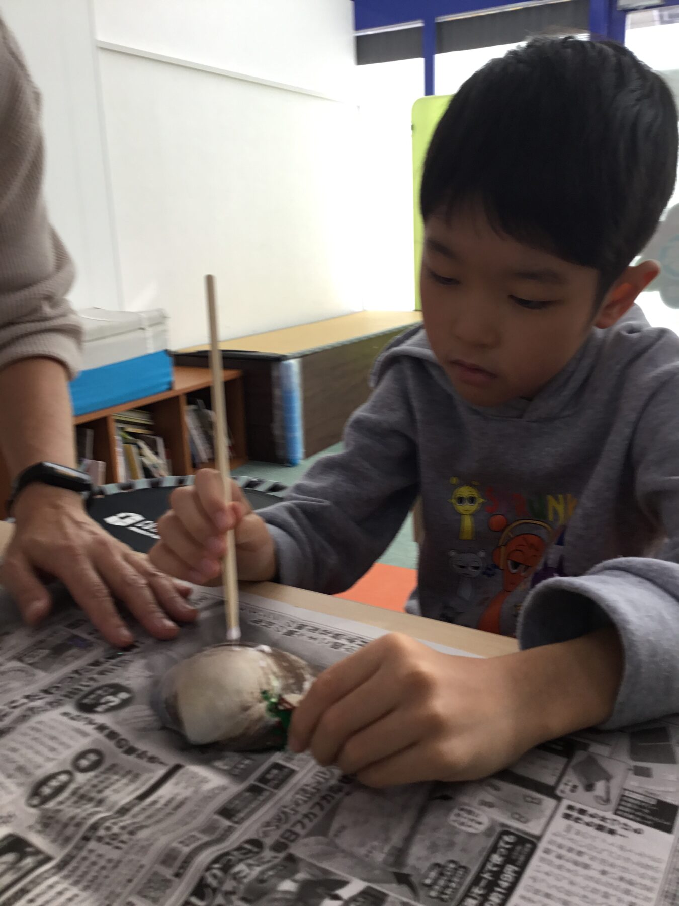 その後は海に行き、貝殻を拾ってきたので、リッキーに戻ってから貝殻に飾りを付けて工作しました✨