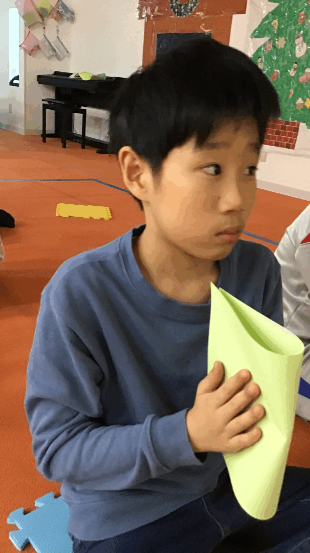 午後は音楽活動🎶「紙で音を楽しもう」動画を観ながら紙一枚で
