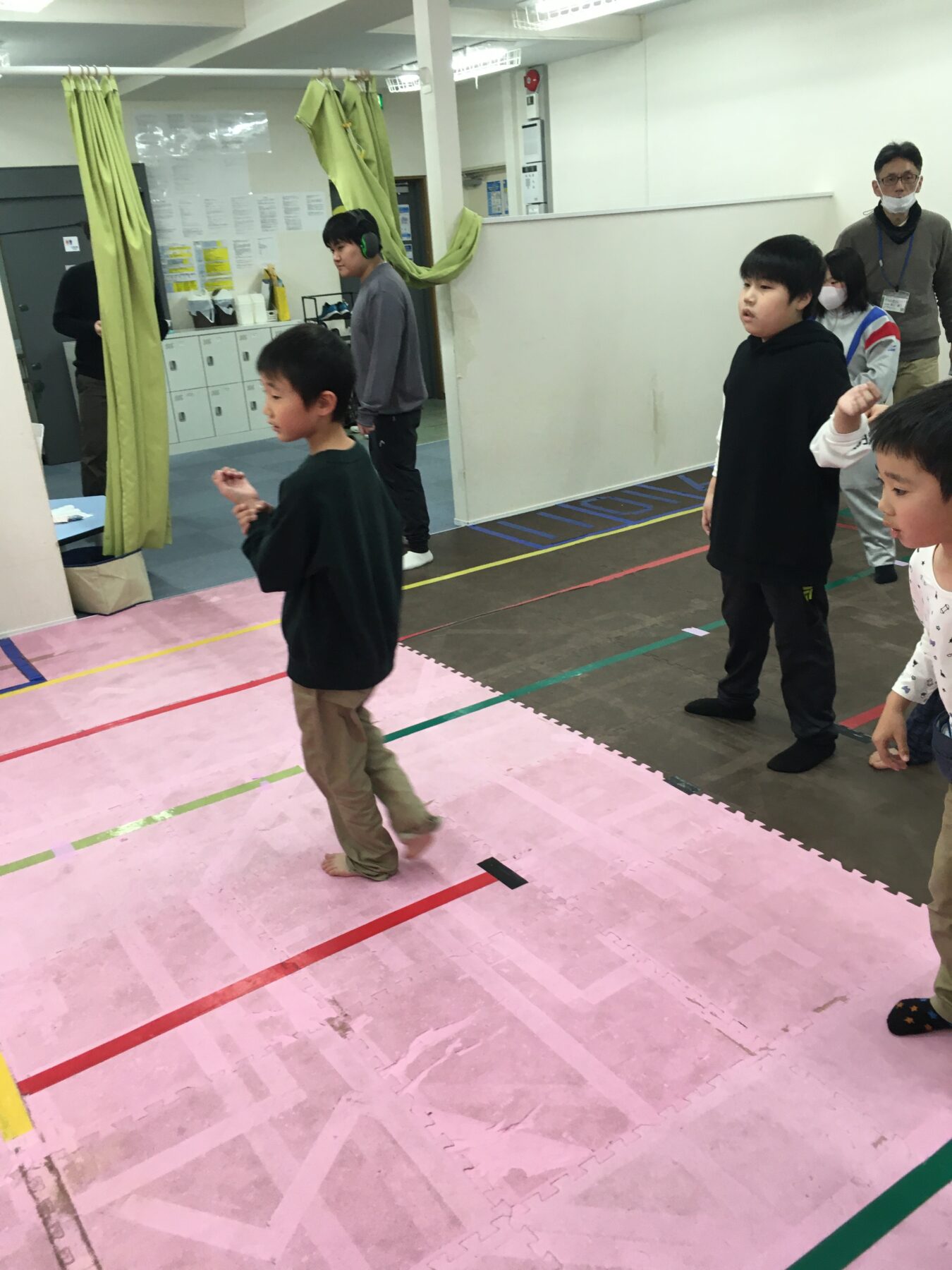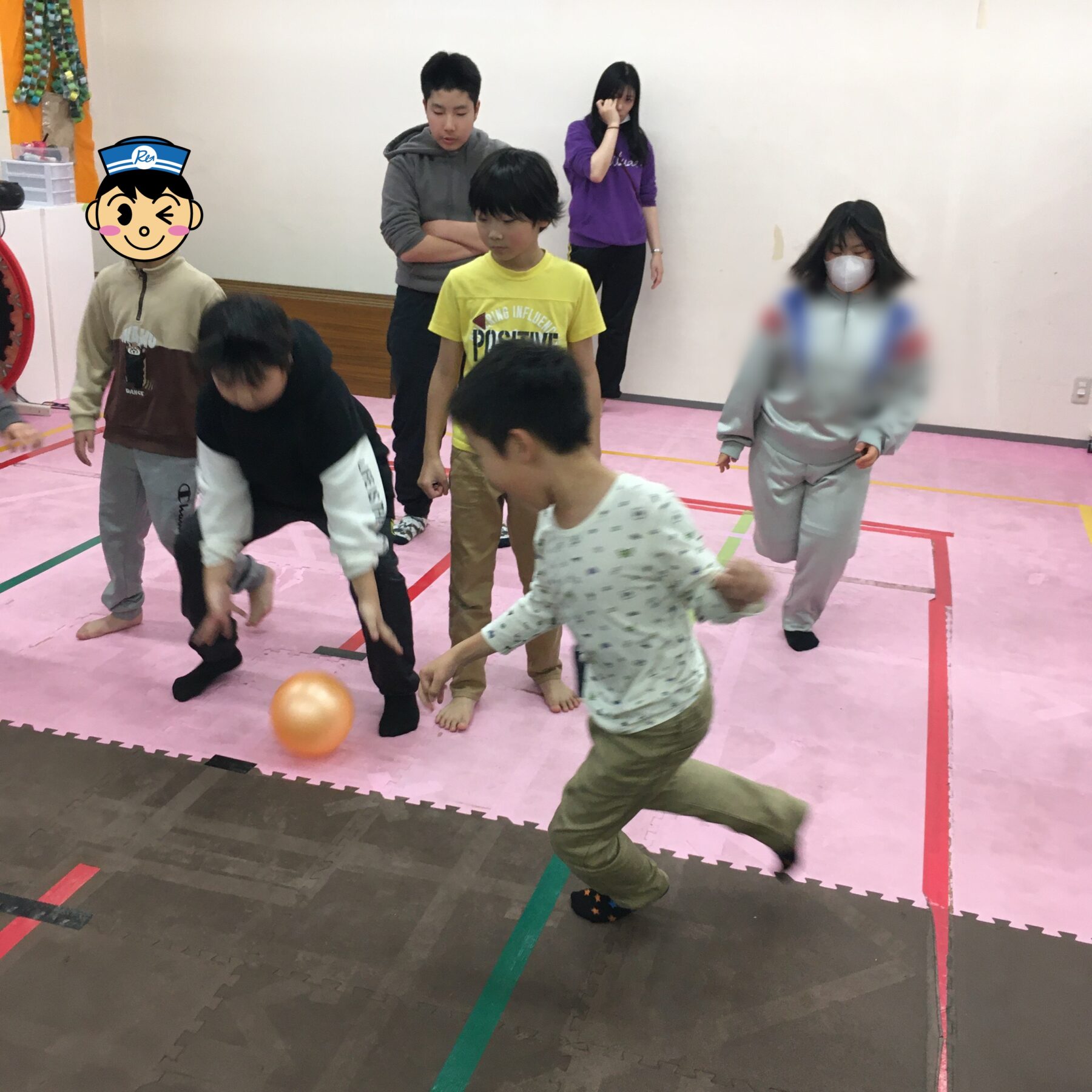 本日は公園への外出活動を計画しておりましたが、午後から不安定な天候☔に室内でボールを使用した「コロコロ🟡ドッチボール」を行いました。