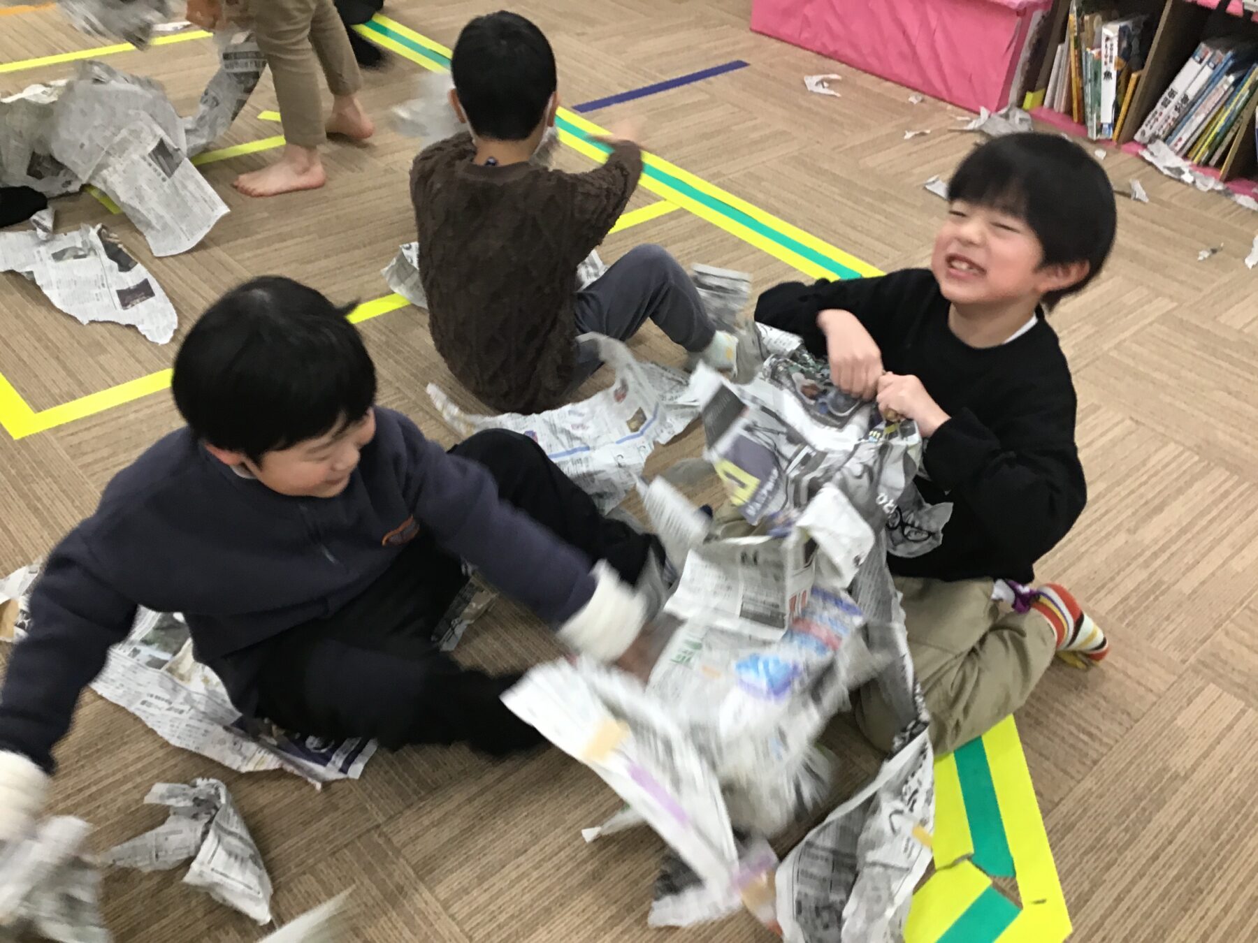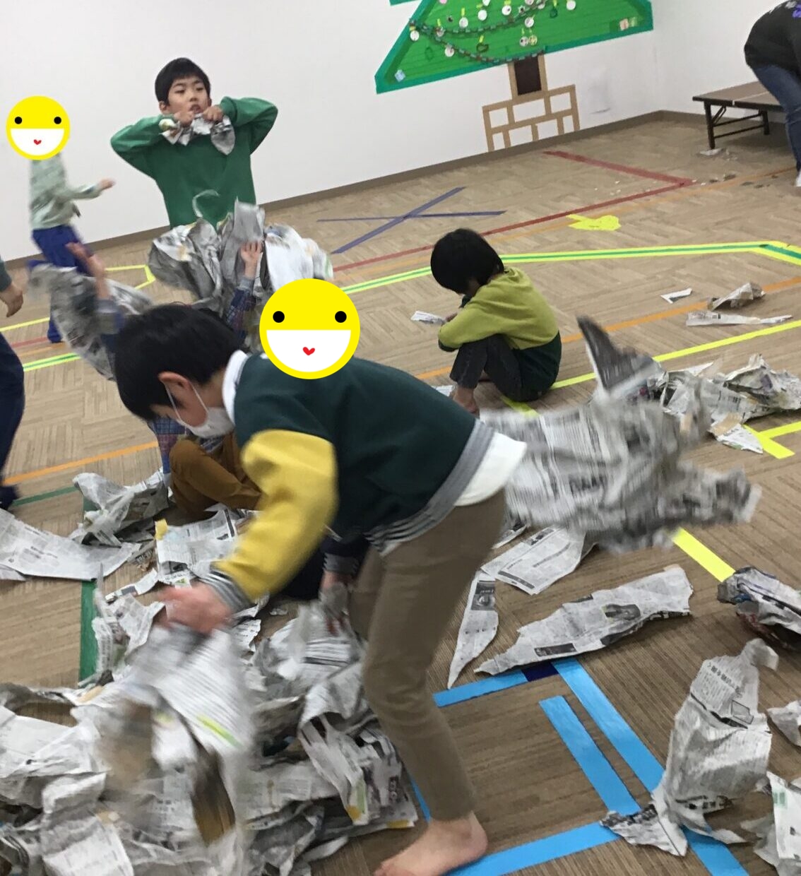 本日の活動は3つの種類の新聞紙遊びを行いました📰