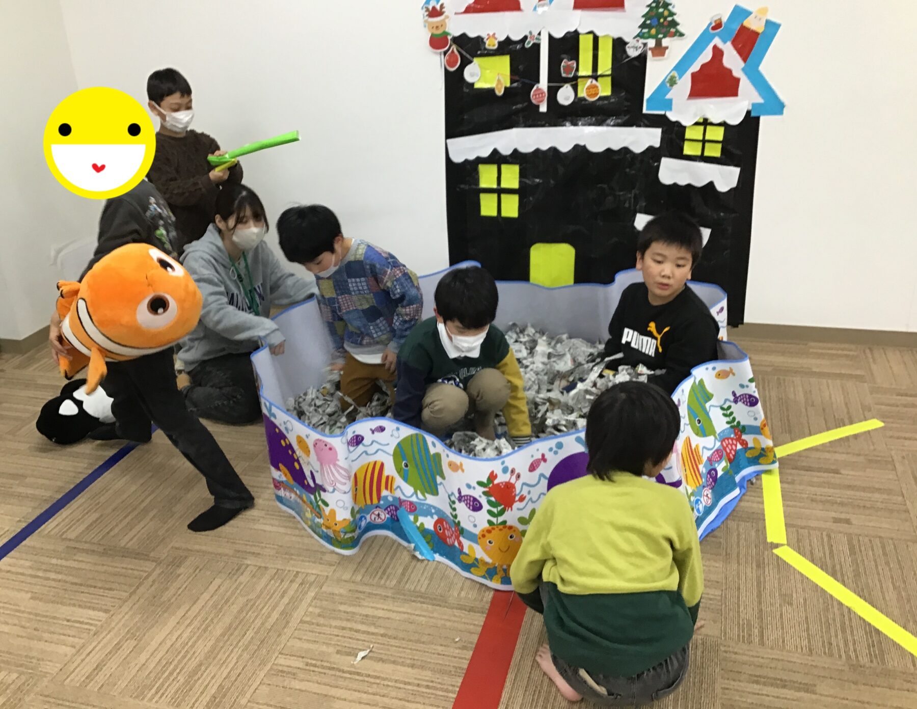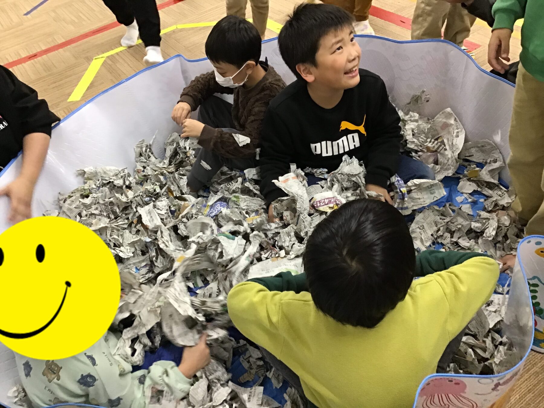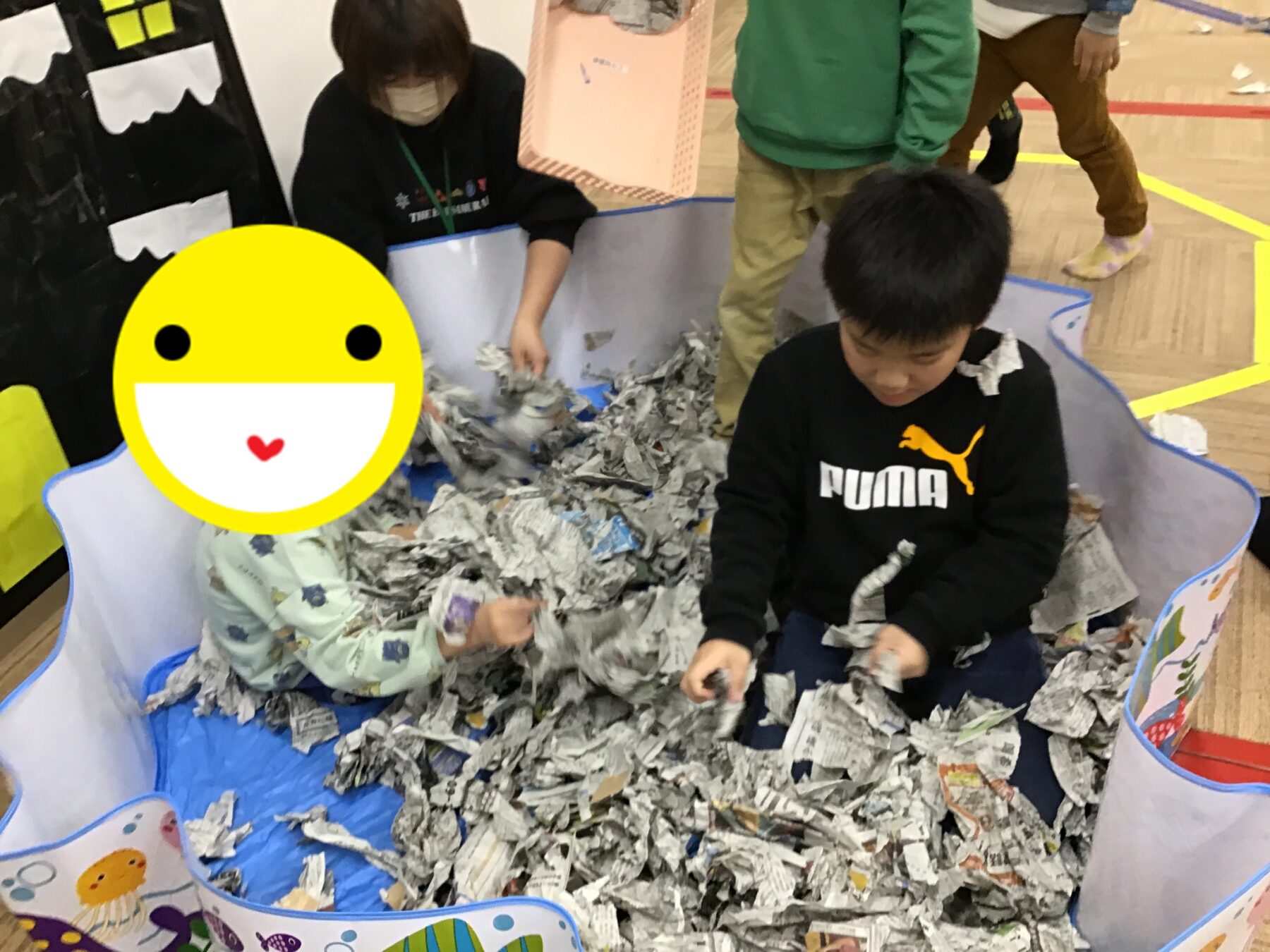 「まだやりたい!」とお話があったので、新聞紙プールでも遊びました🤿