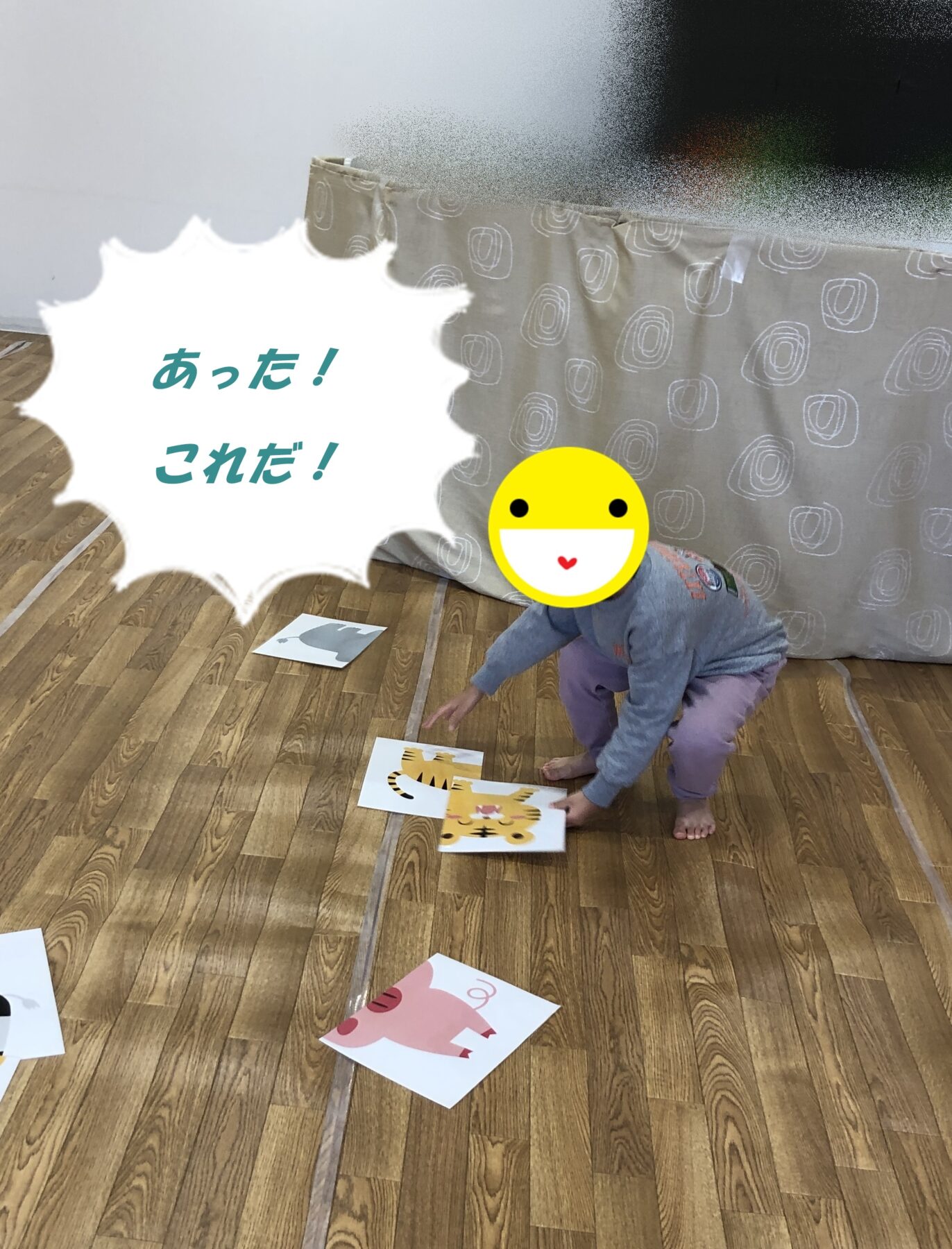 見つけた後はお友だちにも、揃った絵を見せてくださいましたよ。