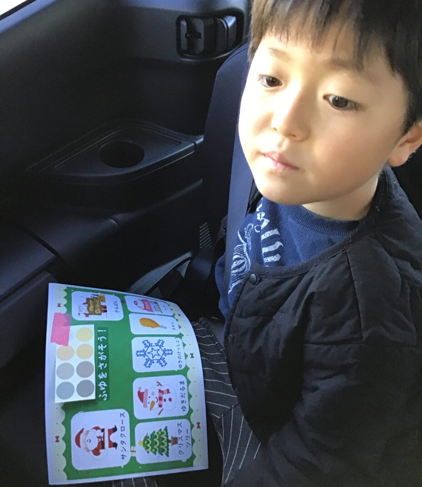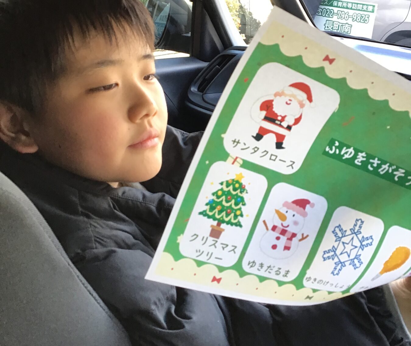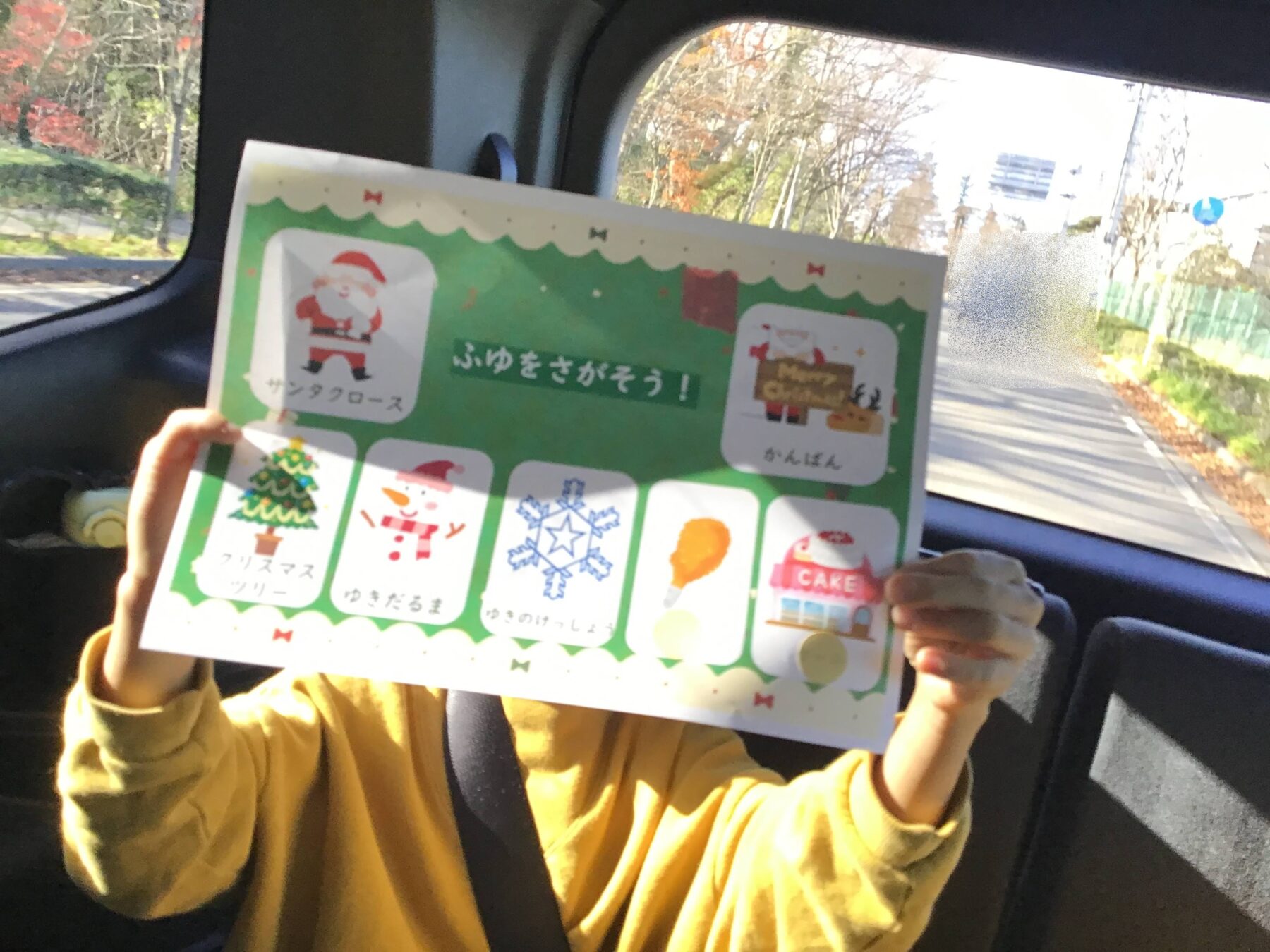 「冬探しカード」を持ち、車窓からアイテムを見つけたらチェックして楽しみました。