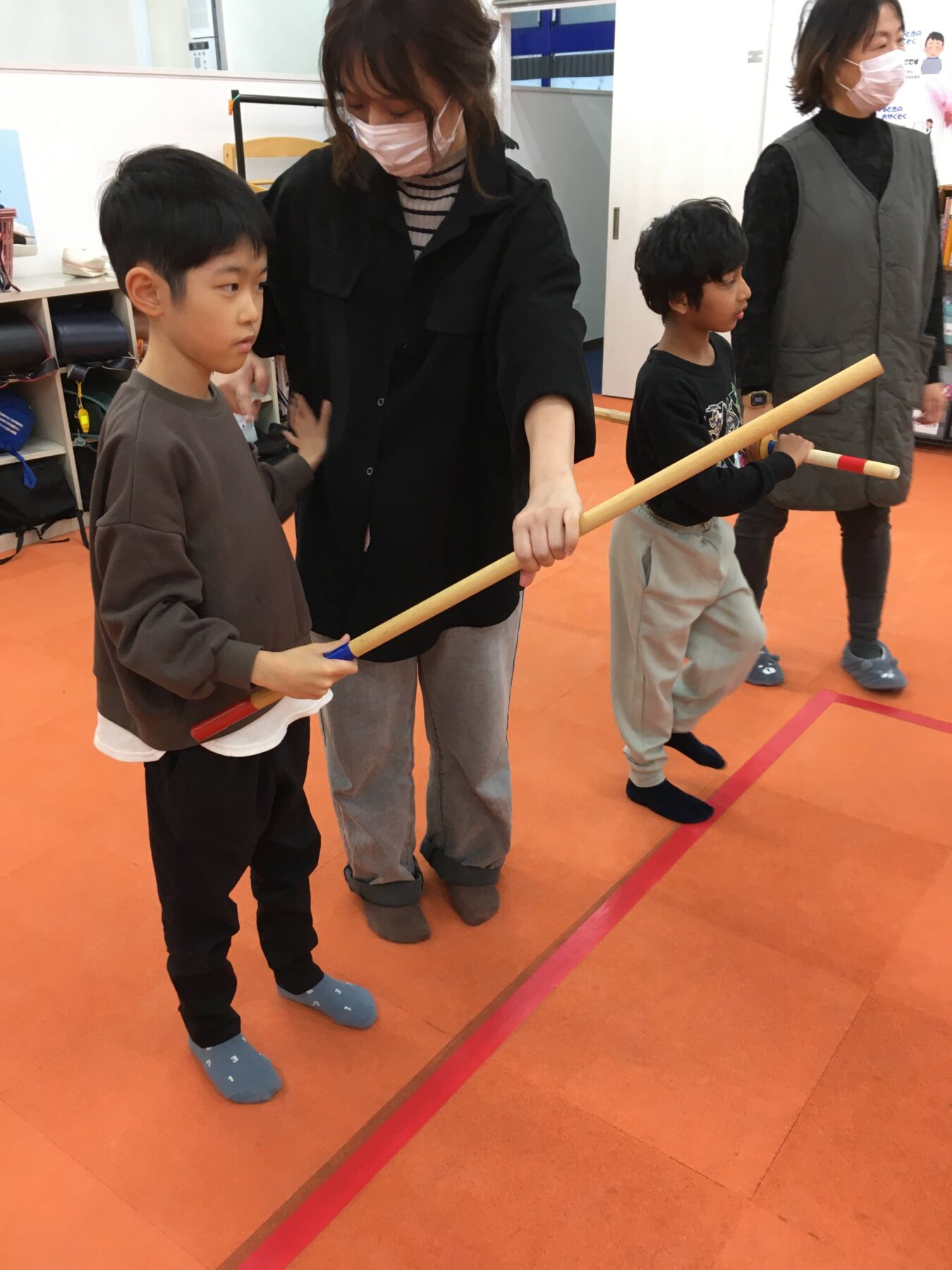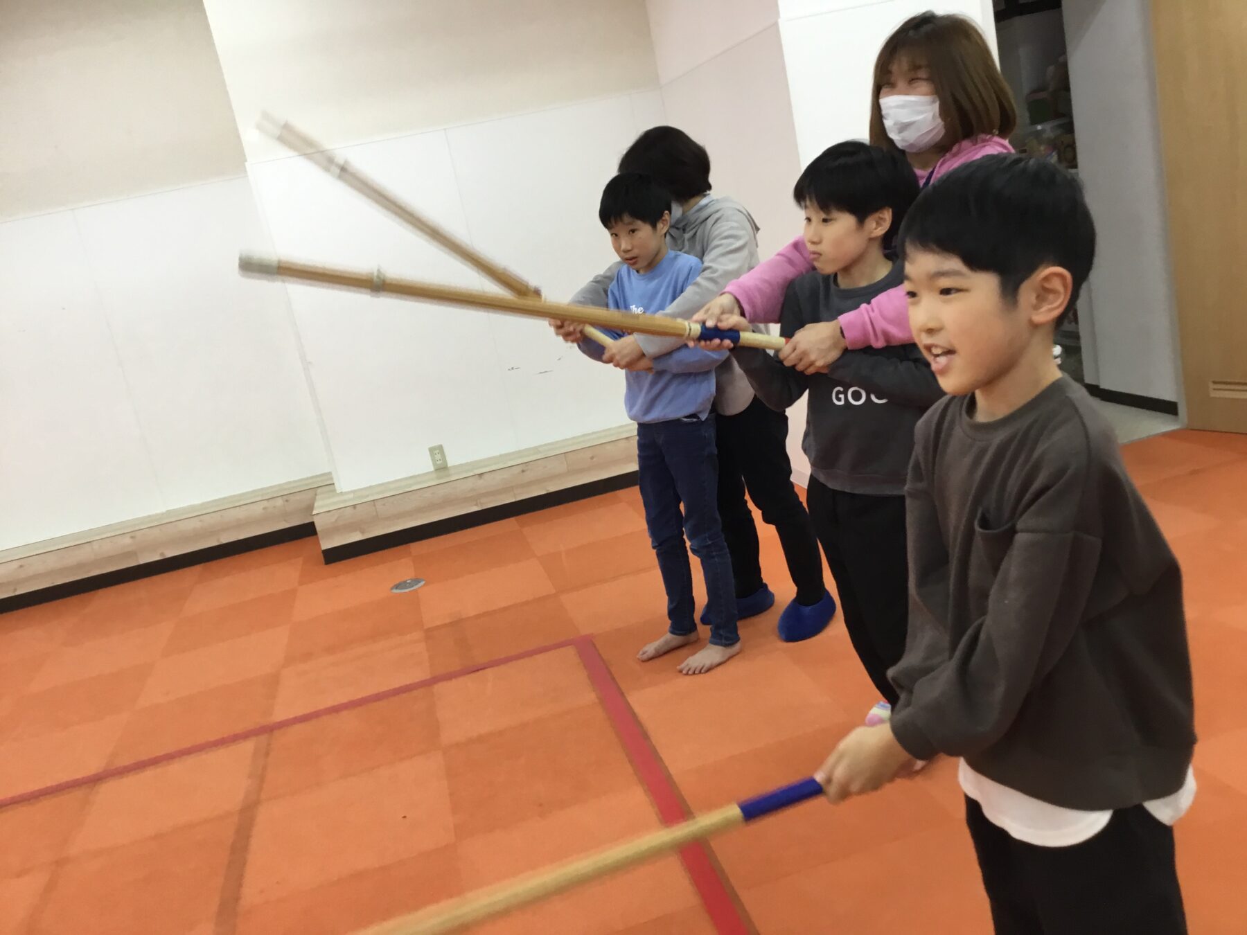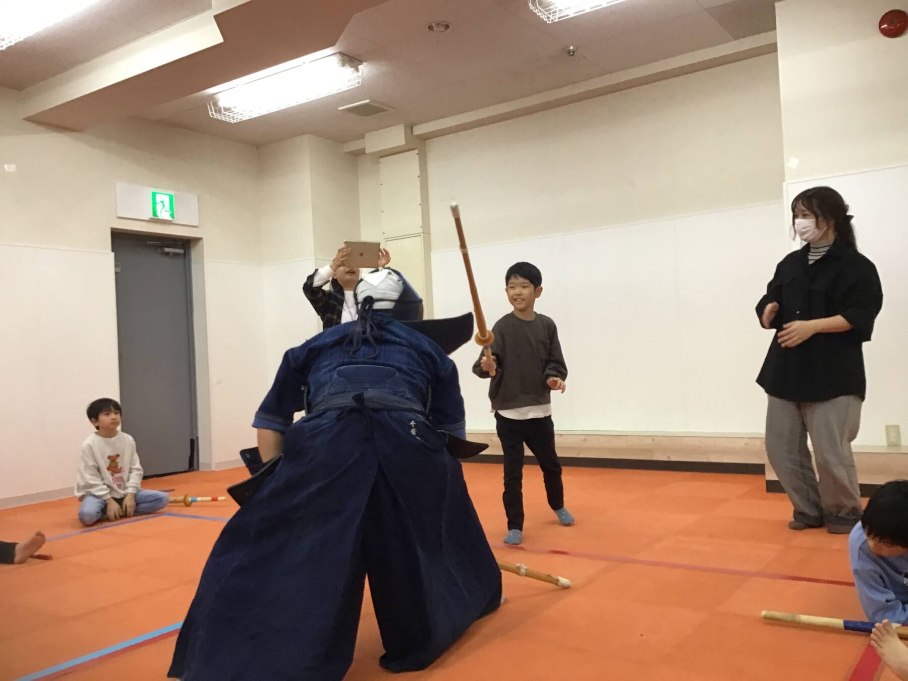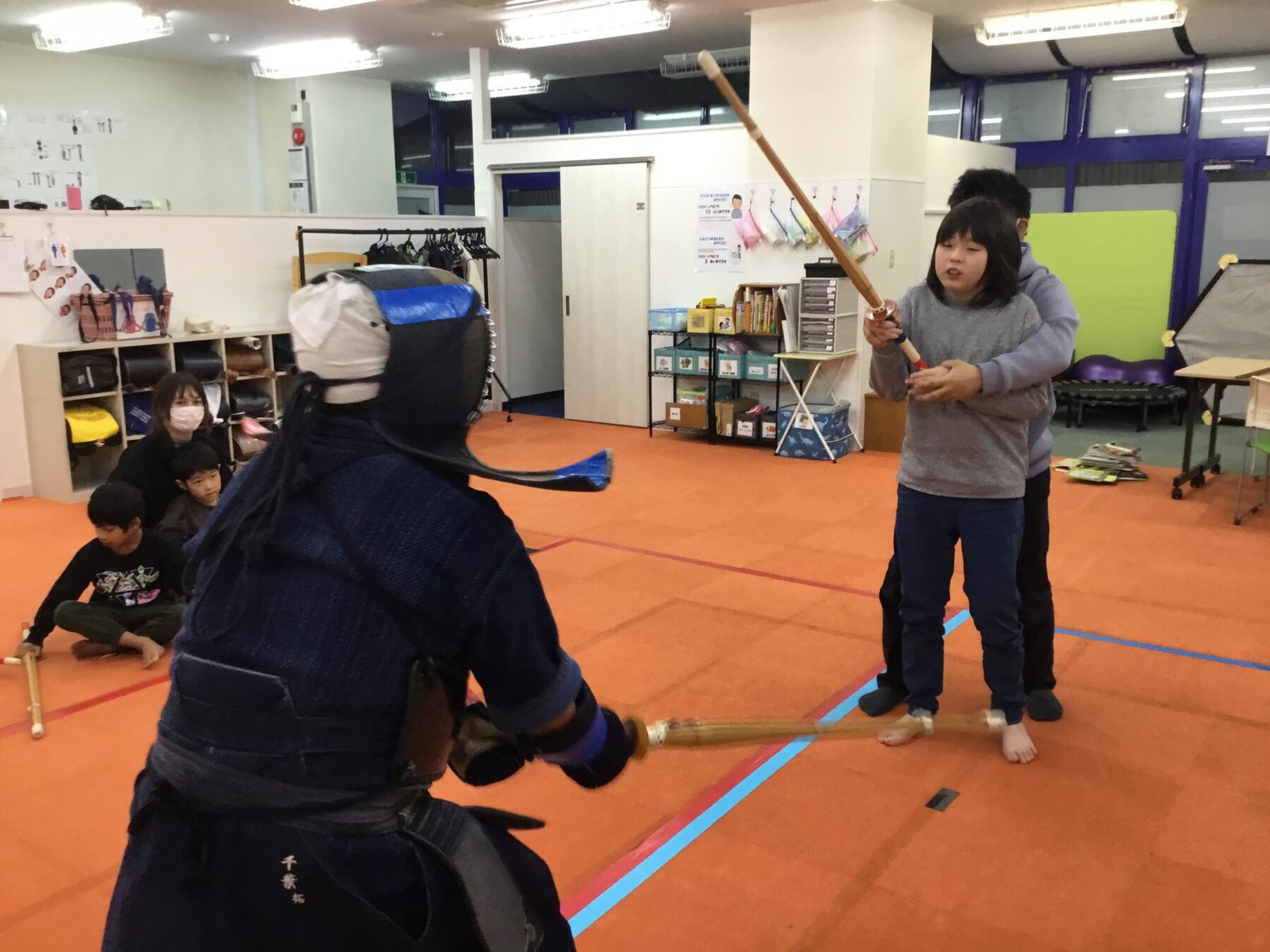 運動活動ということで、お子さん達に剣道を体験していただきました。
