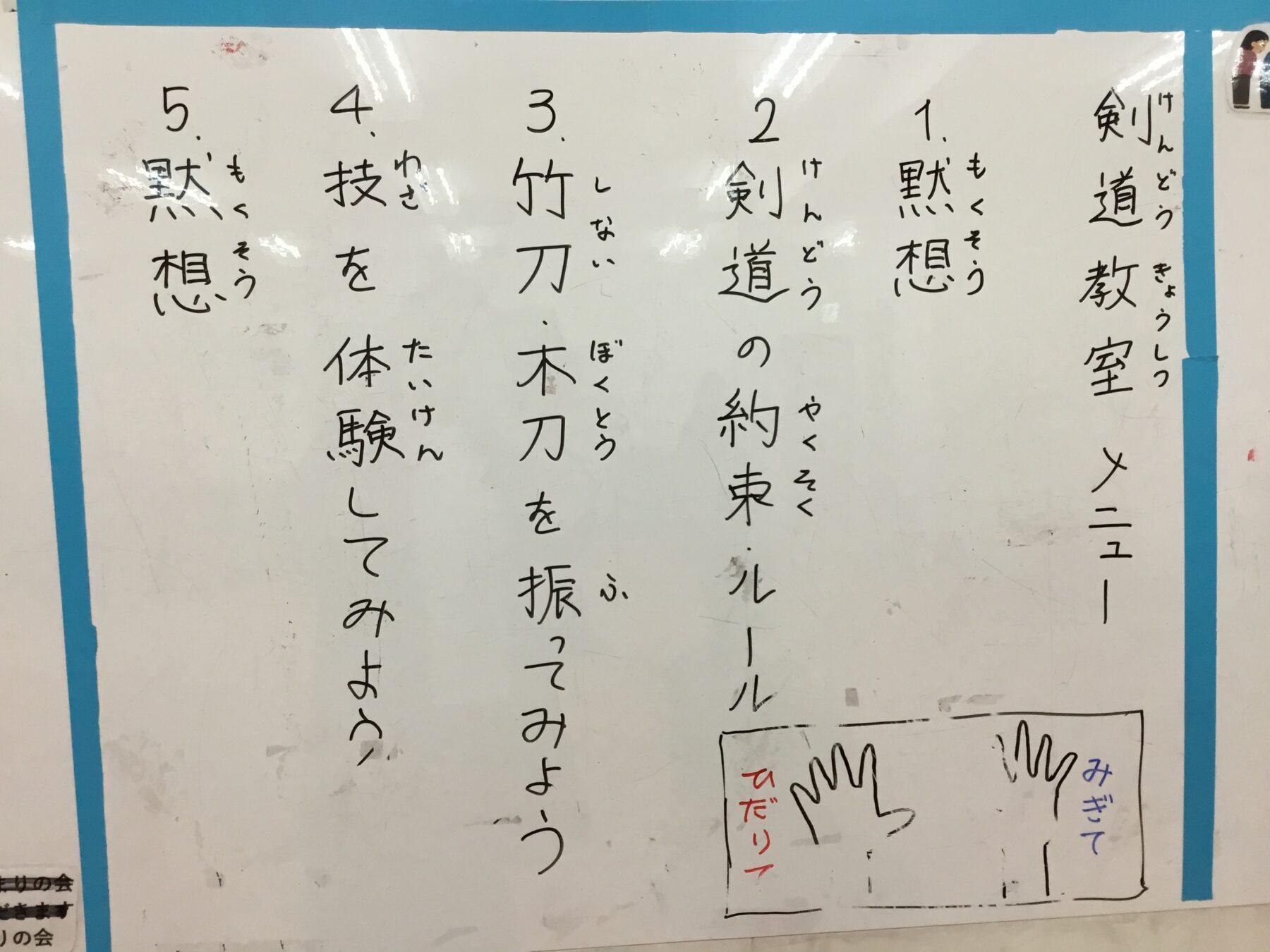 今日は面の打ち方を体験していただきましたが、次回は小手や胴の打ち方も体験していただきたなと考えております!