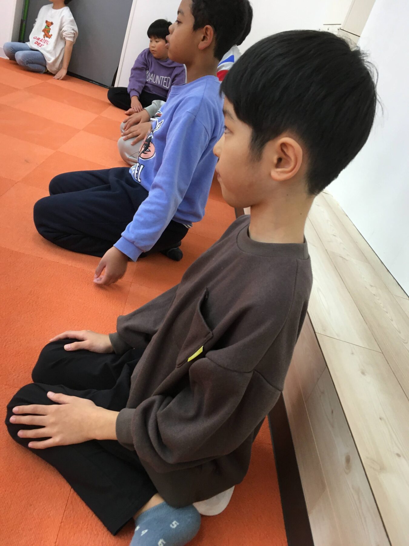 お子さんたちには、【黙想】【礼儀作法】【竹刀の素振り】【技の打ち込み】の4つのメニューを体験したいだきました。
