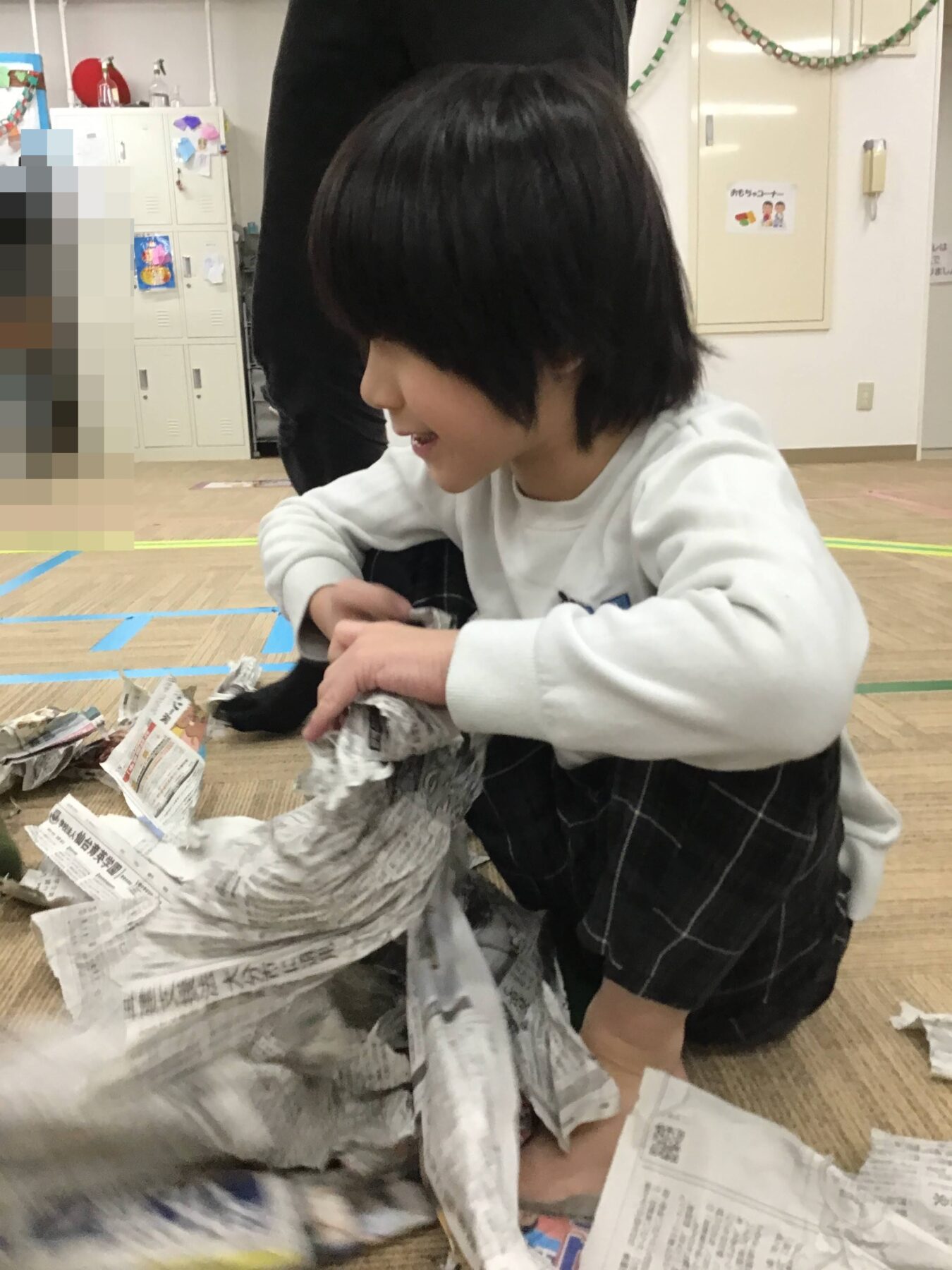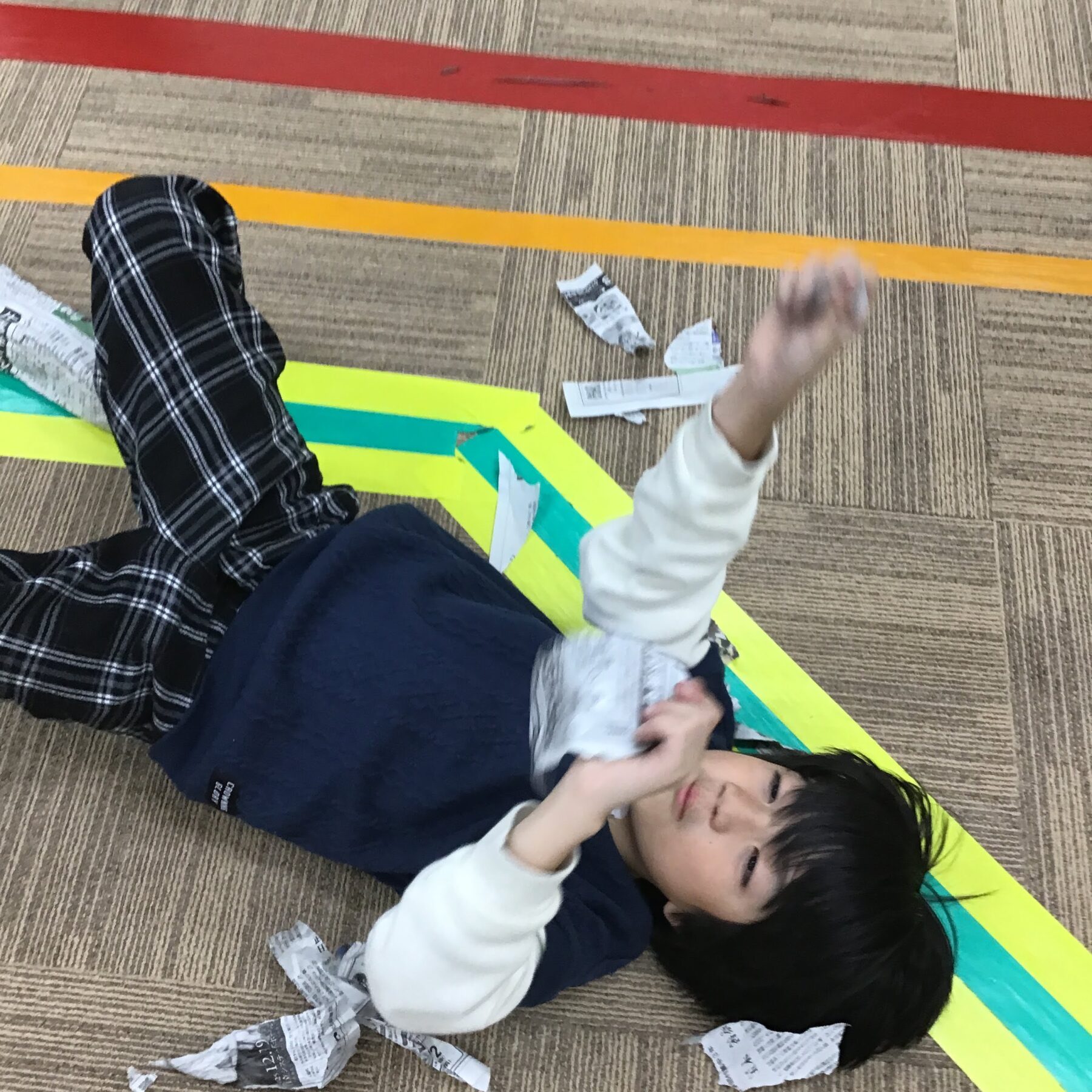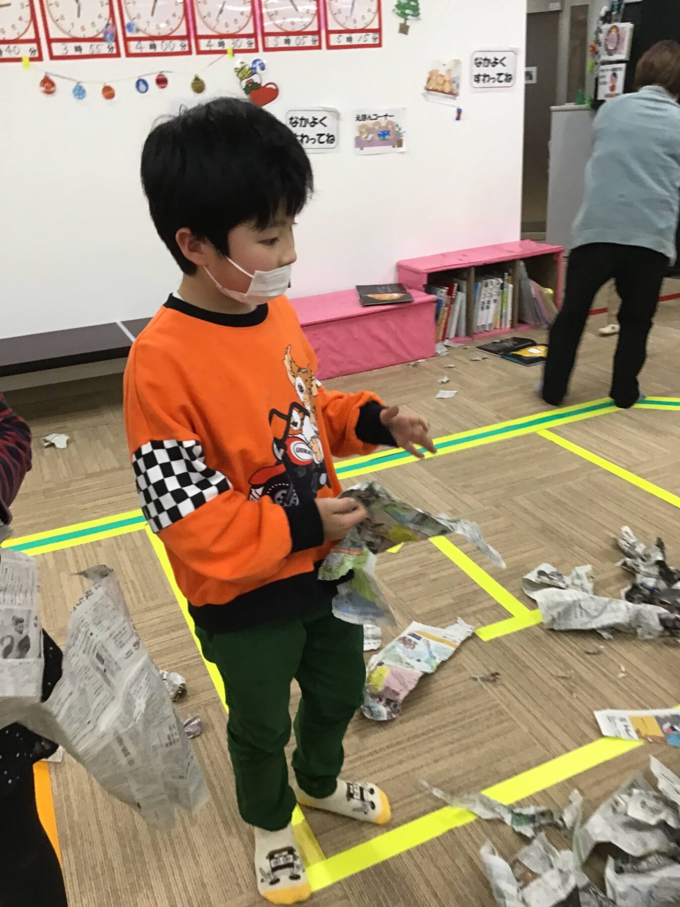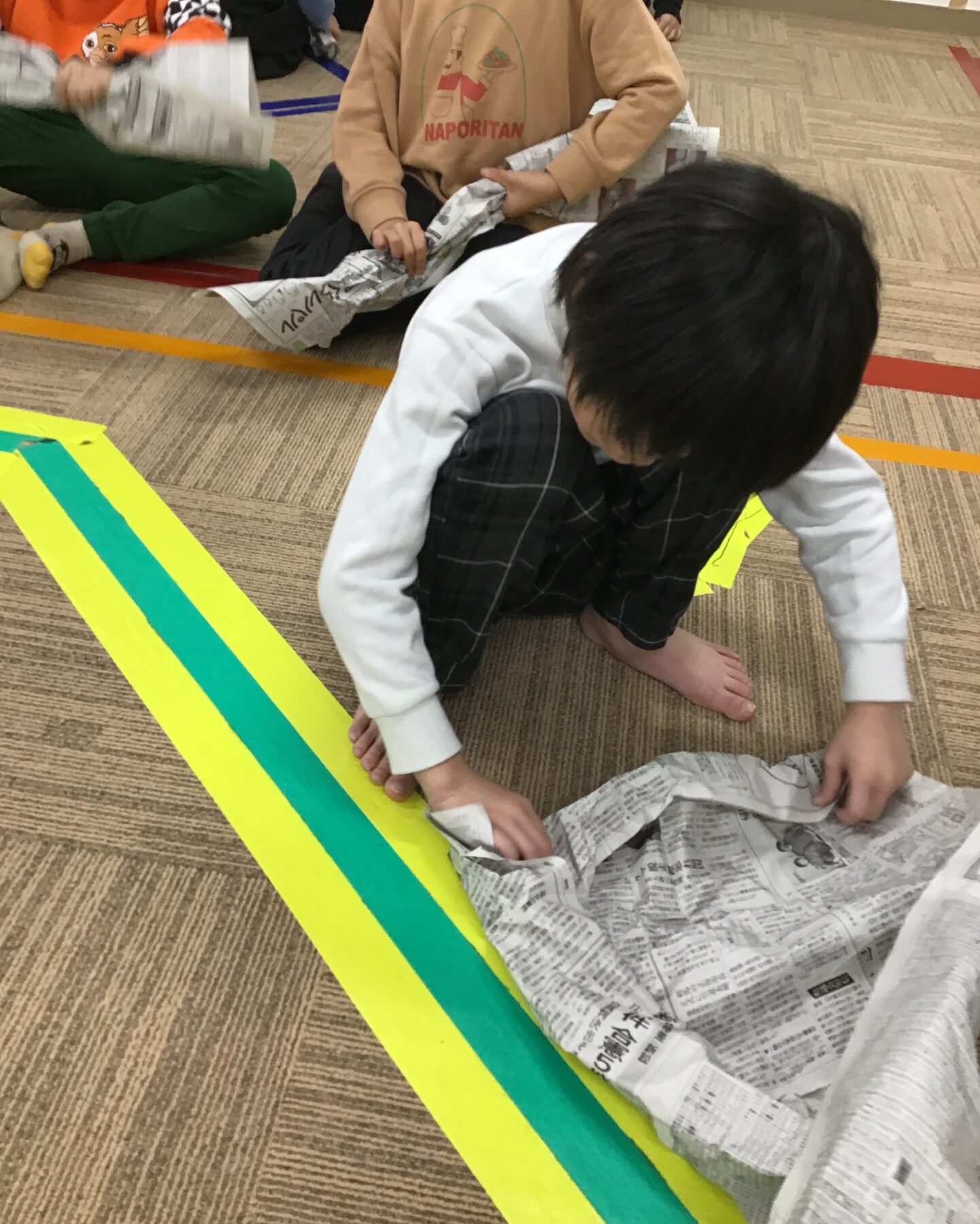 それでは、本日の活動は【運動・感覚:新聞紙遊び】を行いました。