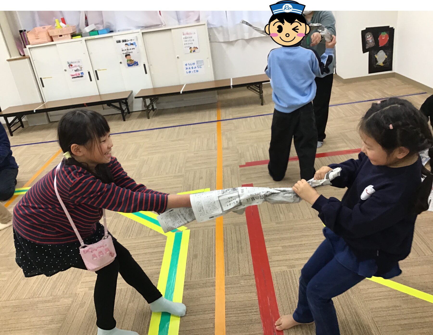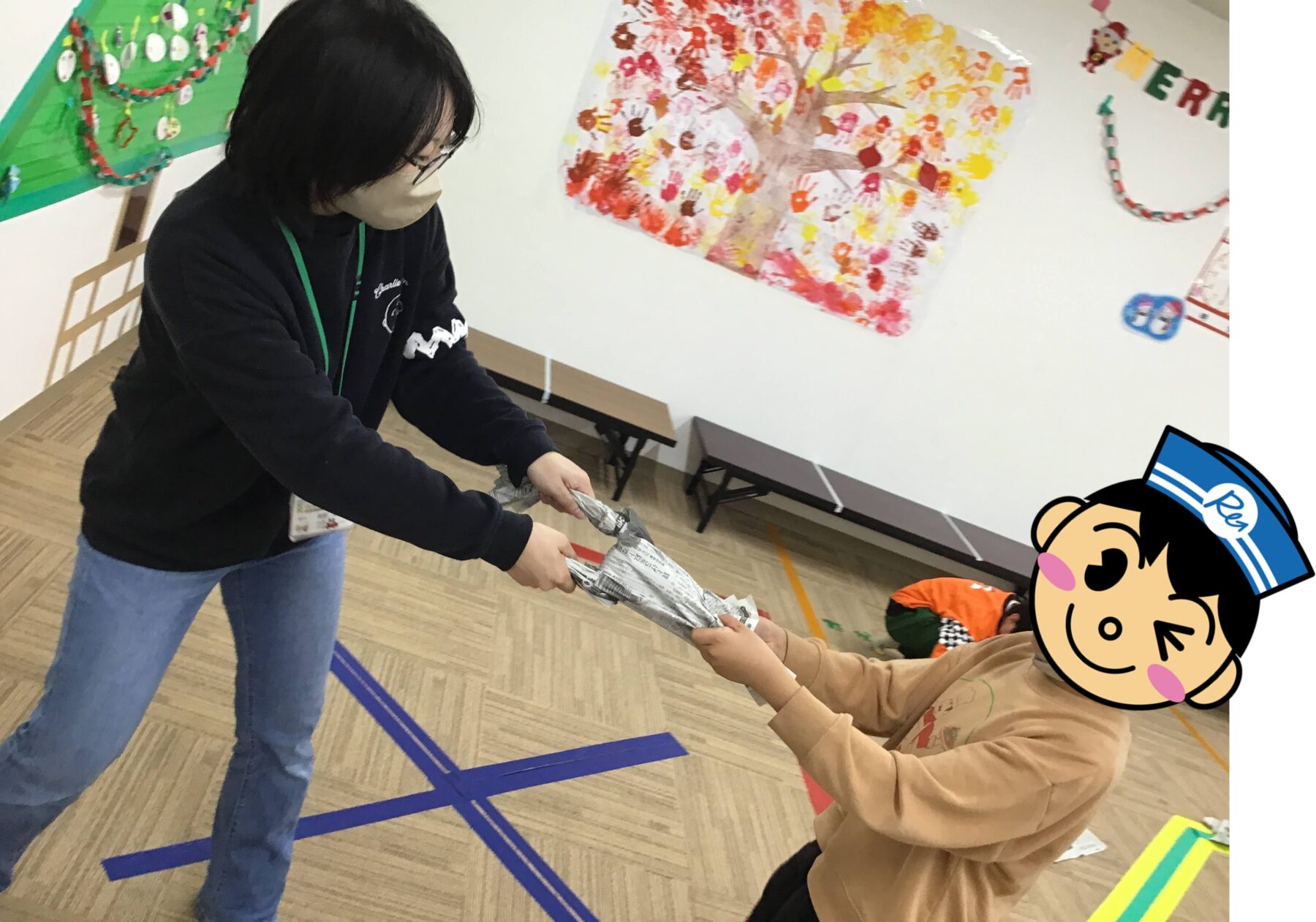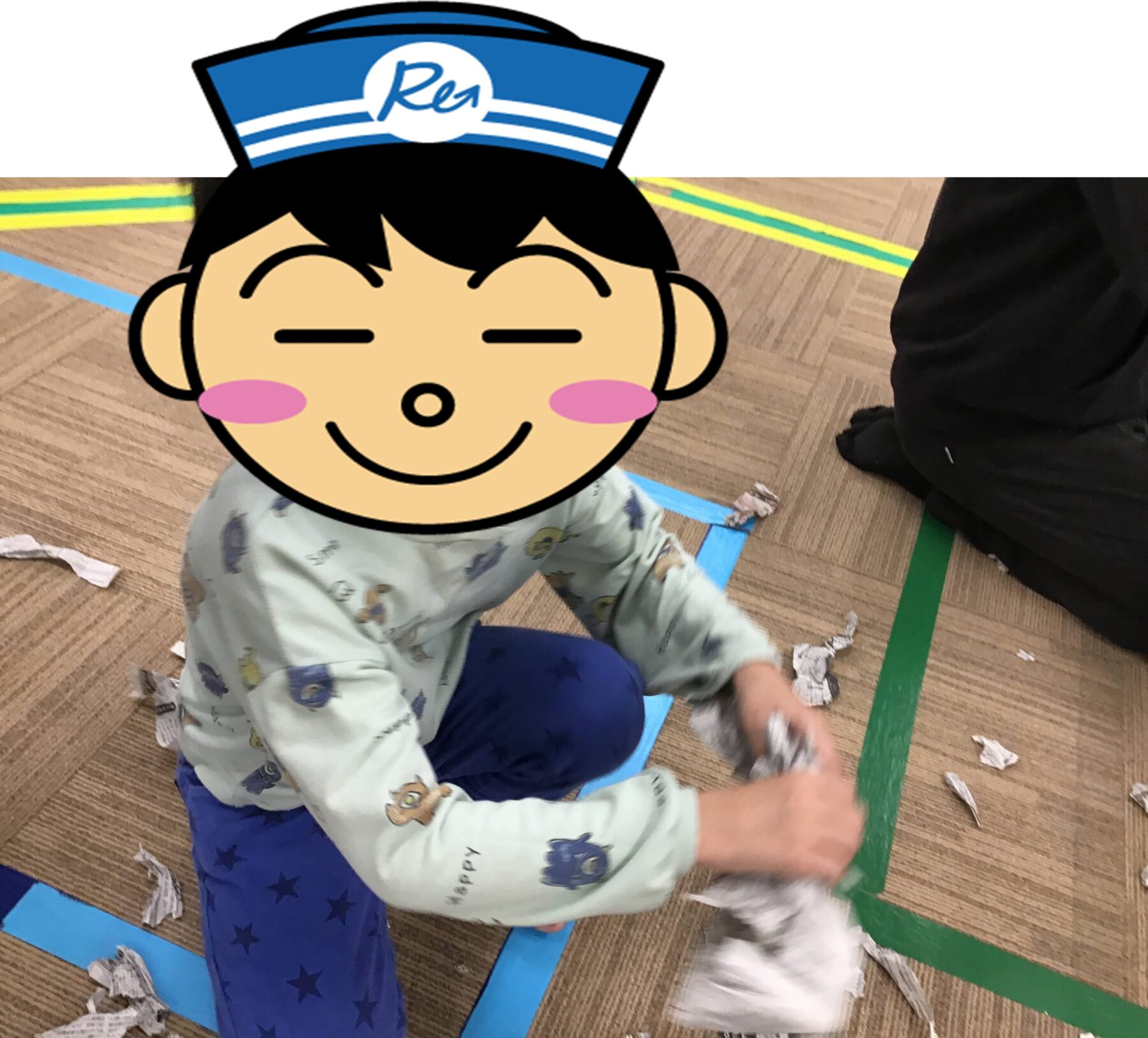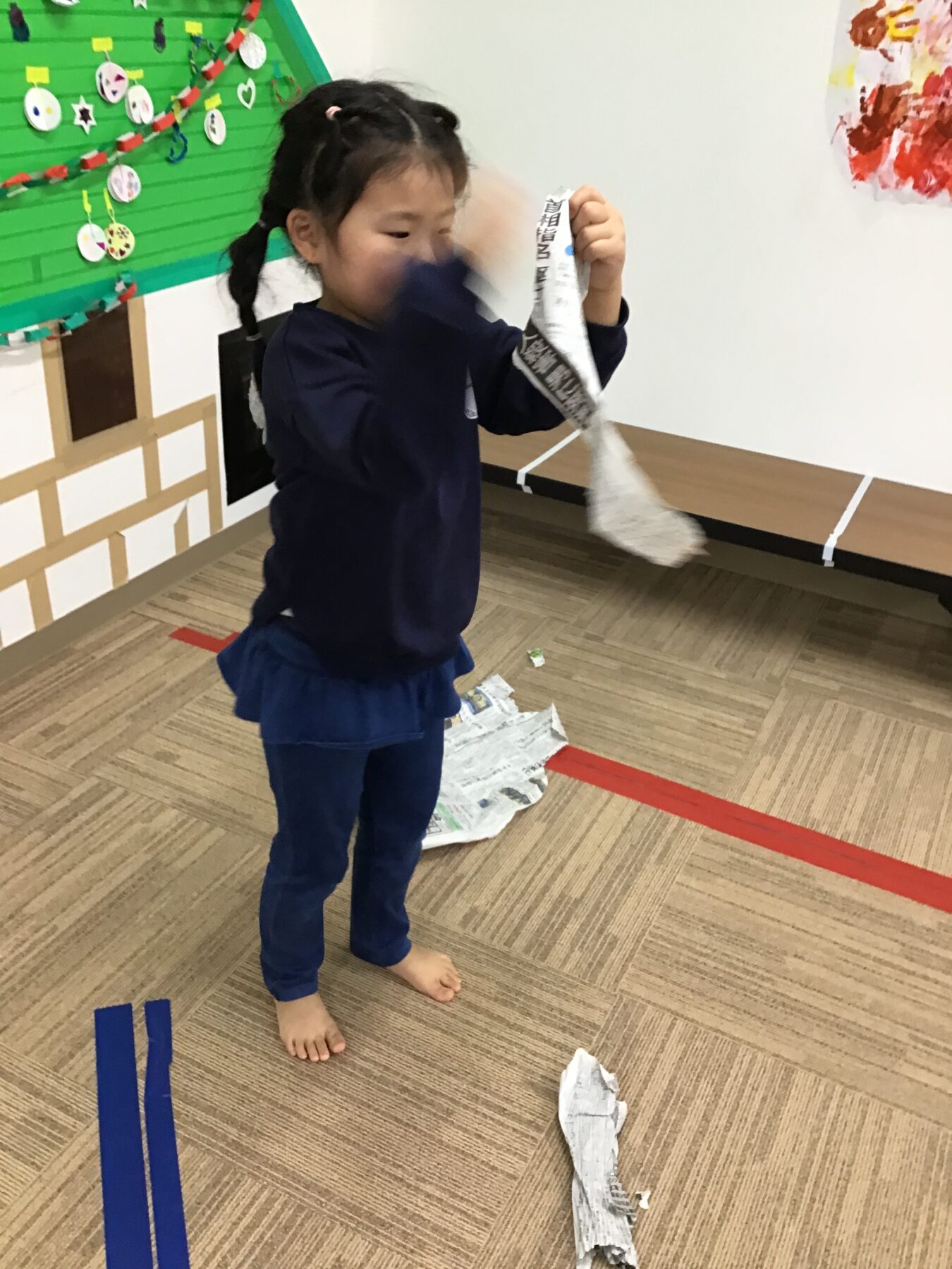 それでは、本日の活動は【運動・感覚:新聞紙遊び】を行いました。