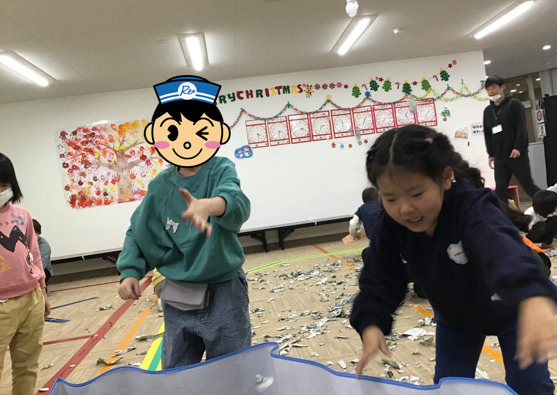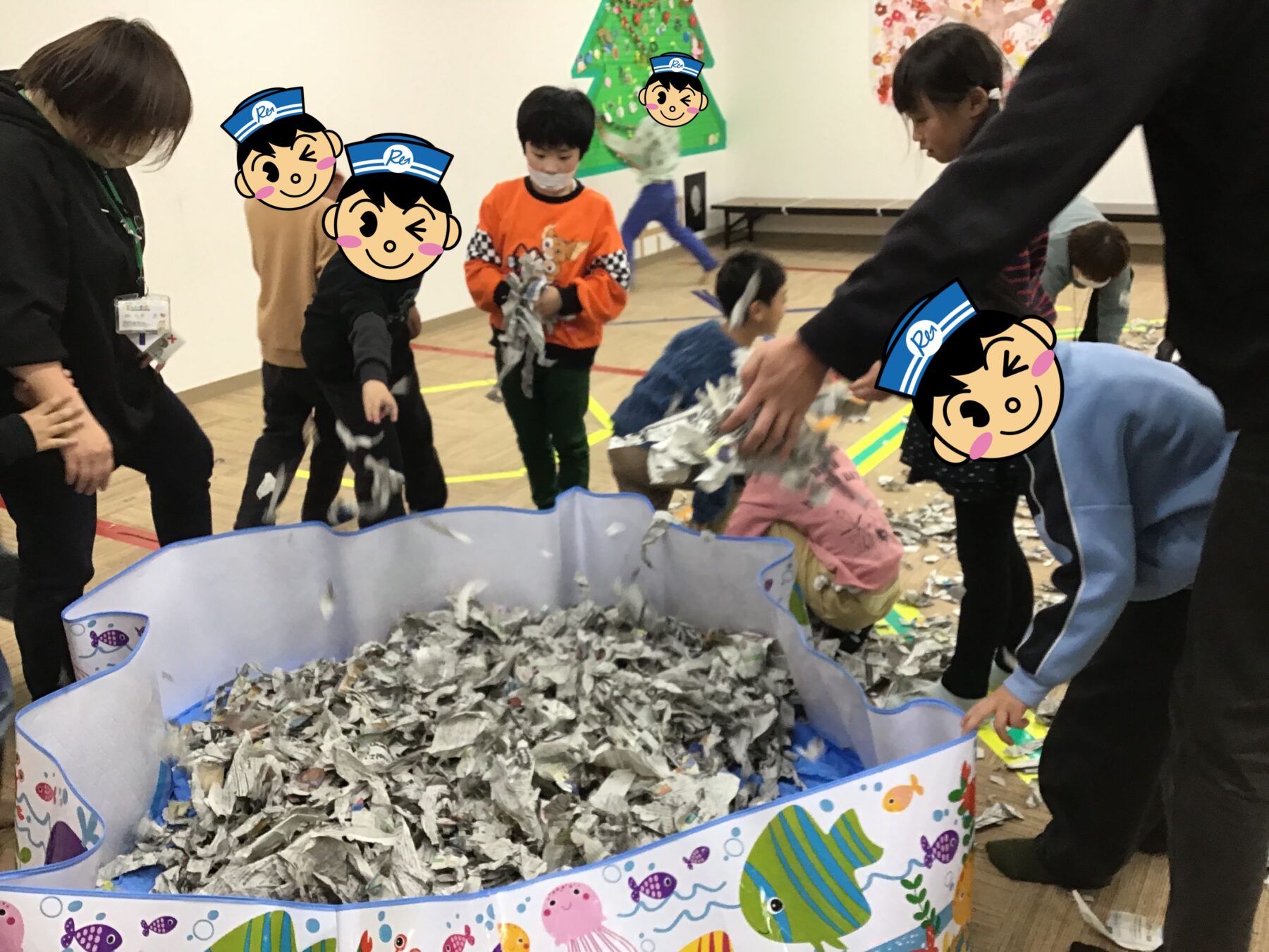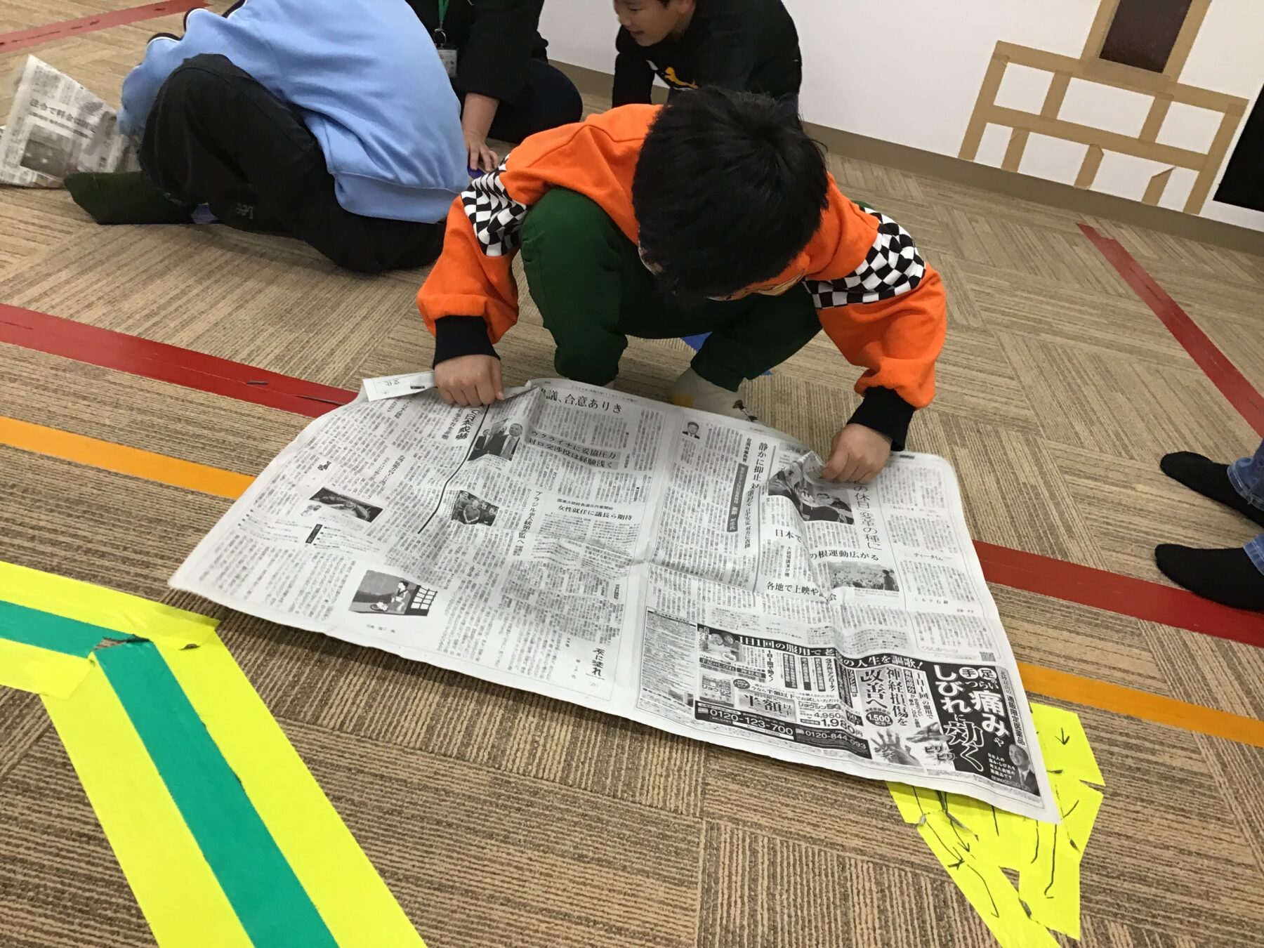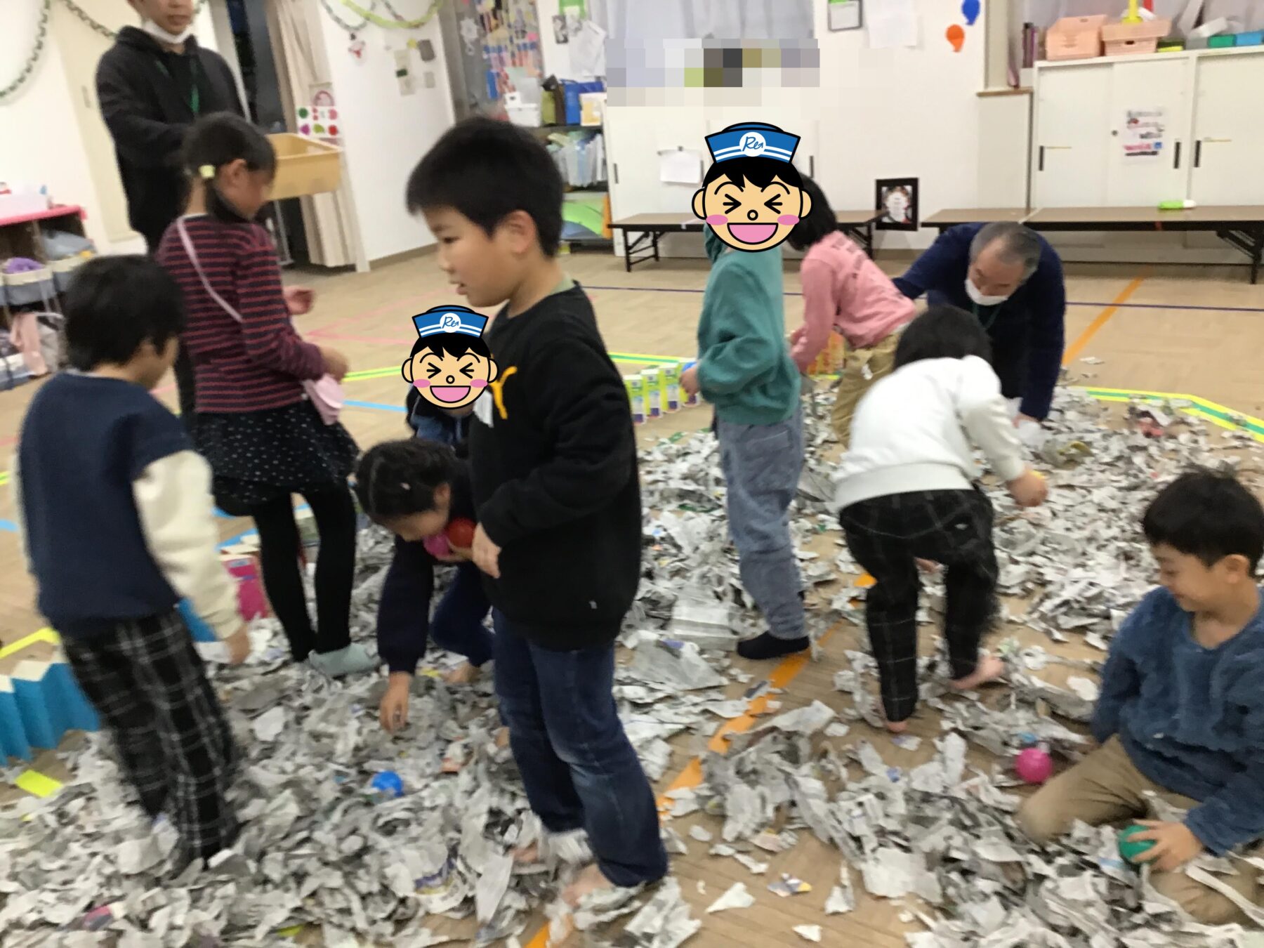 それでは、本日の活動は【運動・感覚:新聞紙遊び】を行いました。