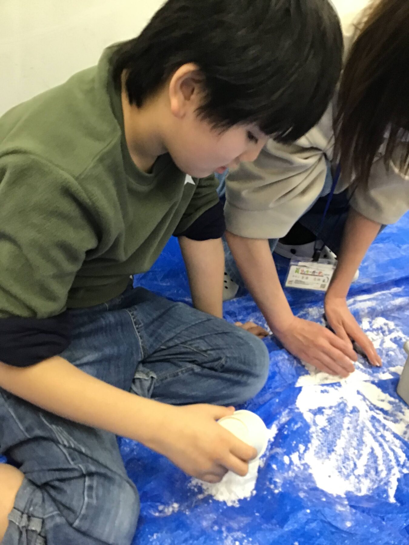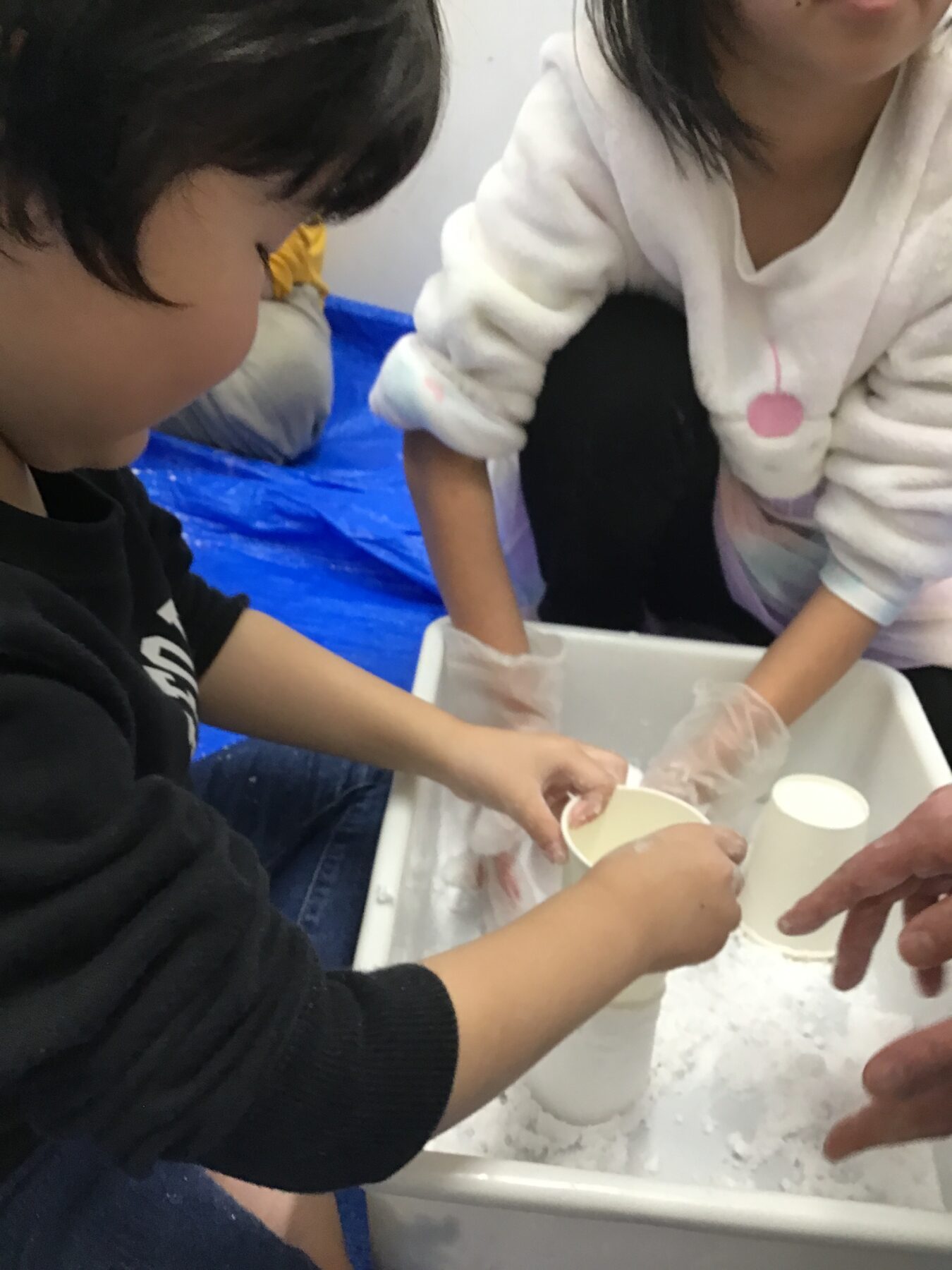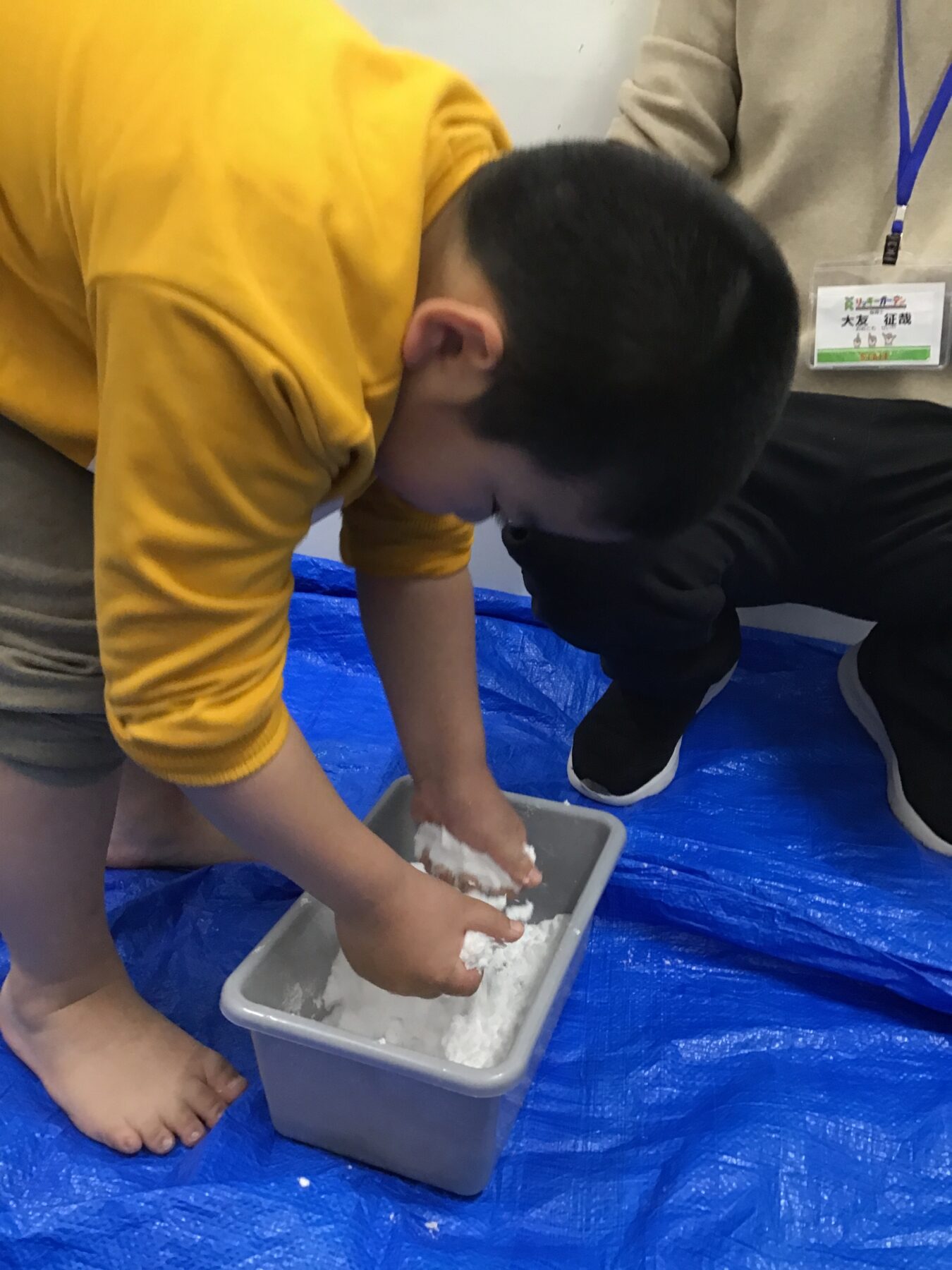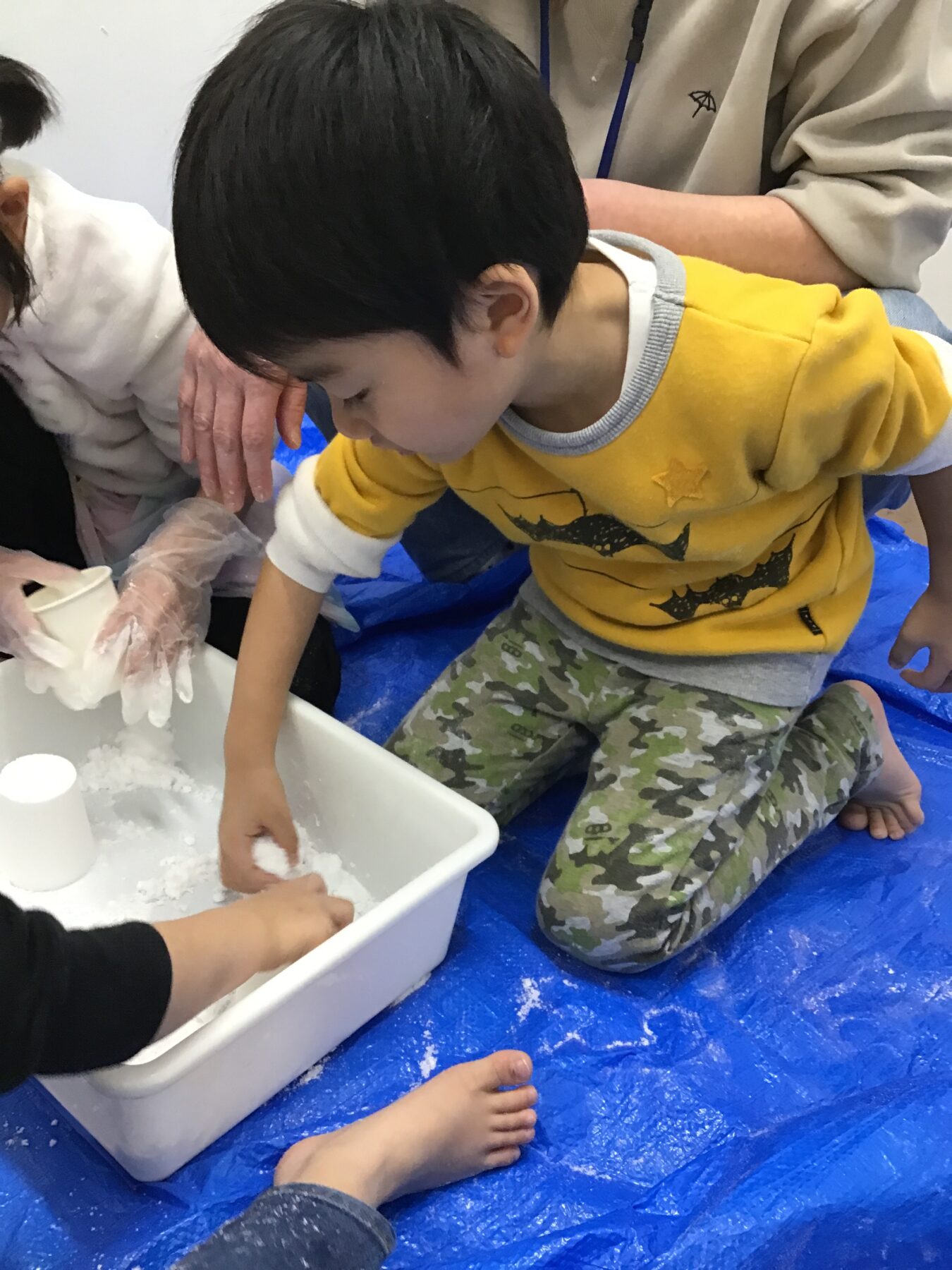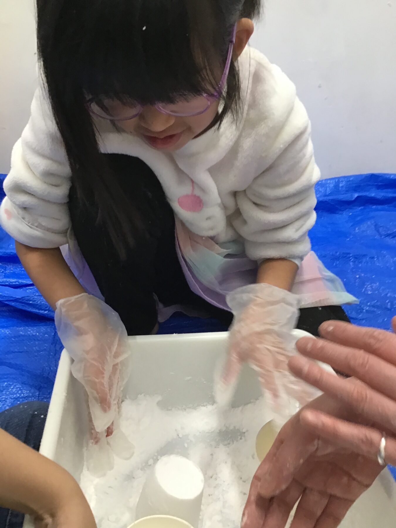 重曹とコンディショナーを混ぜ合わせ雪を作って遊びました⛄