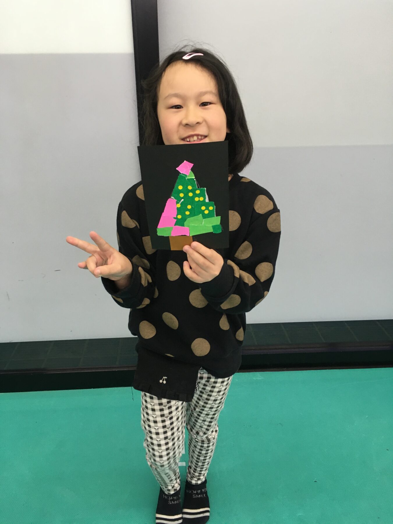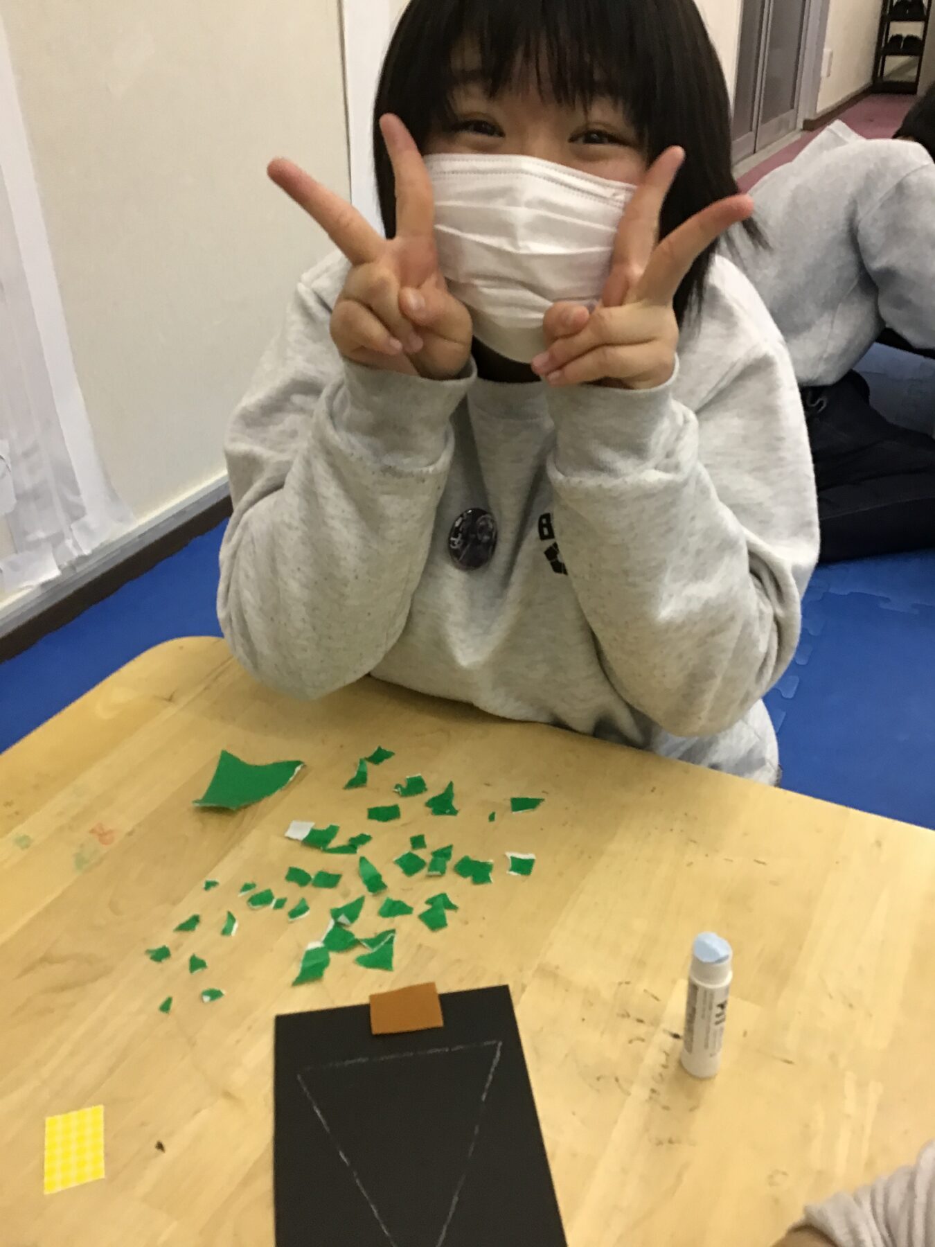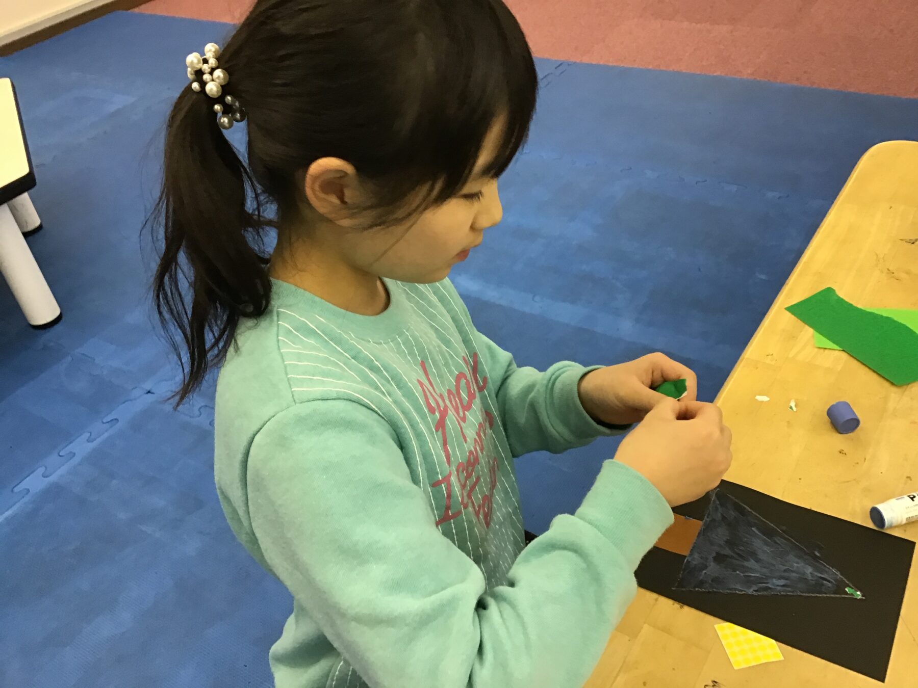 お友達を待っている間はツリーのちぎり絵にも取り組みました🎄