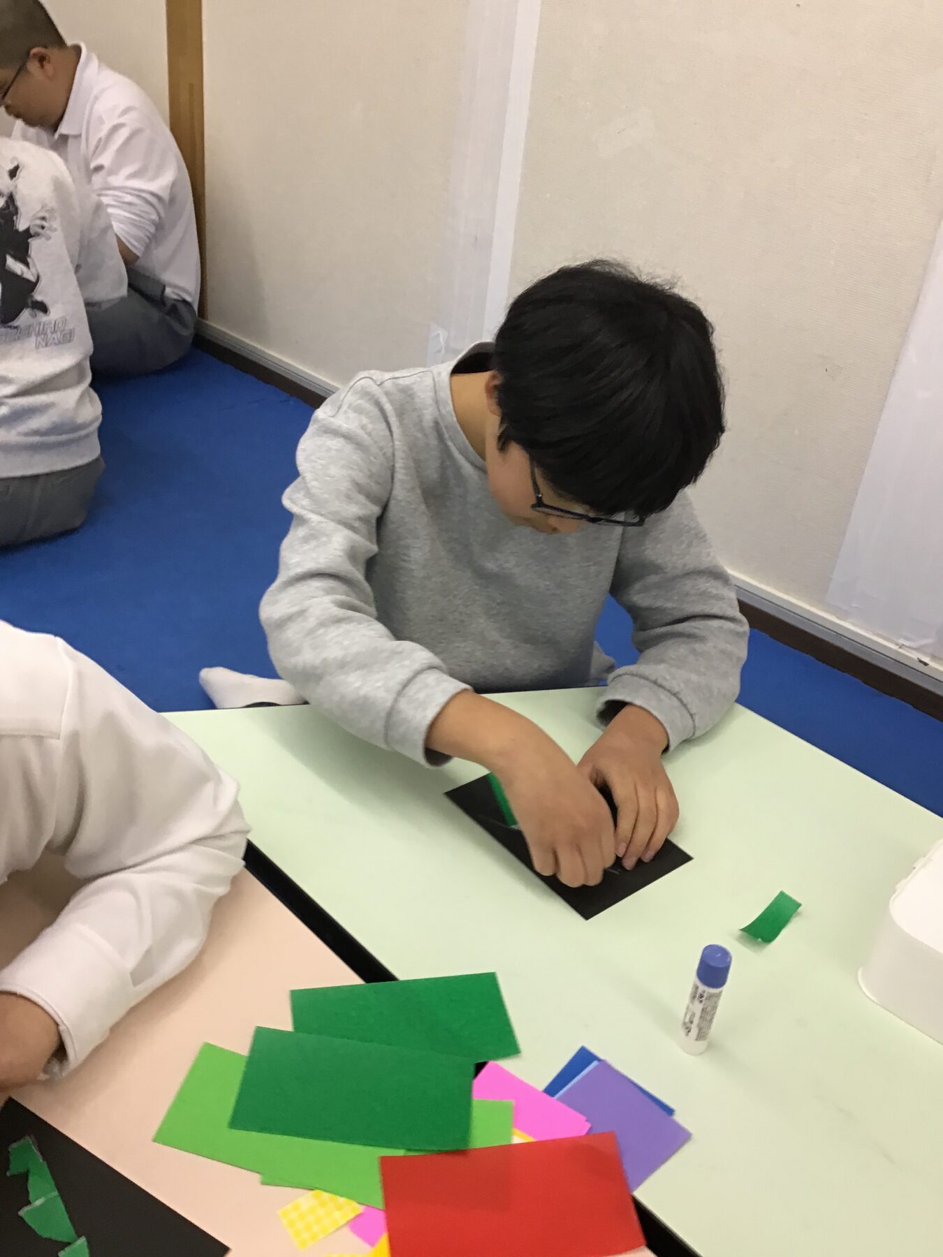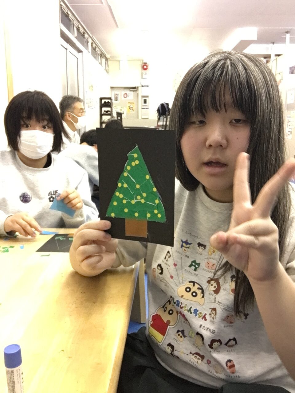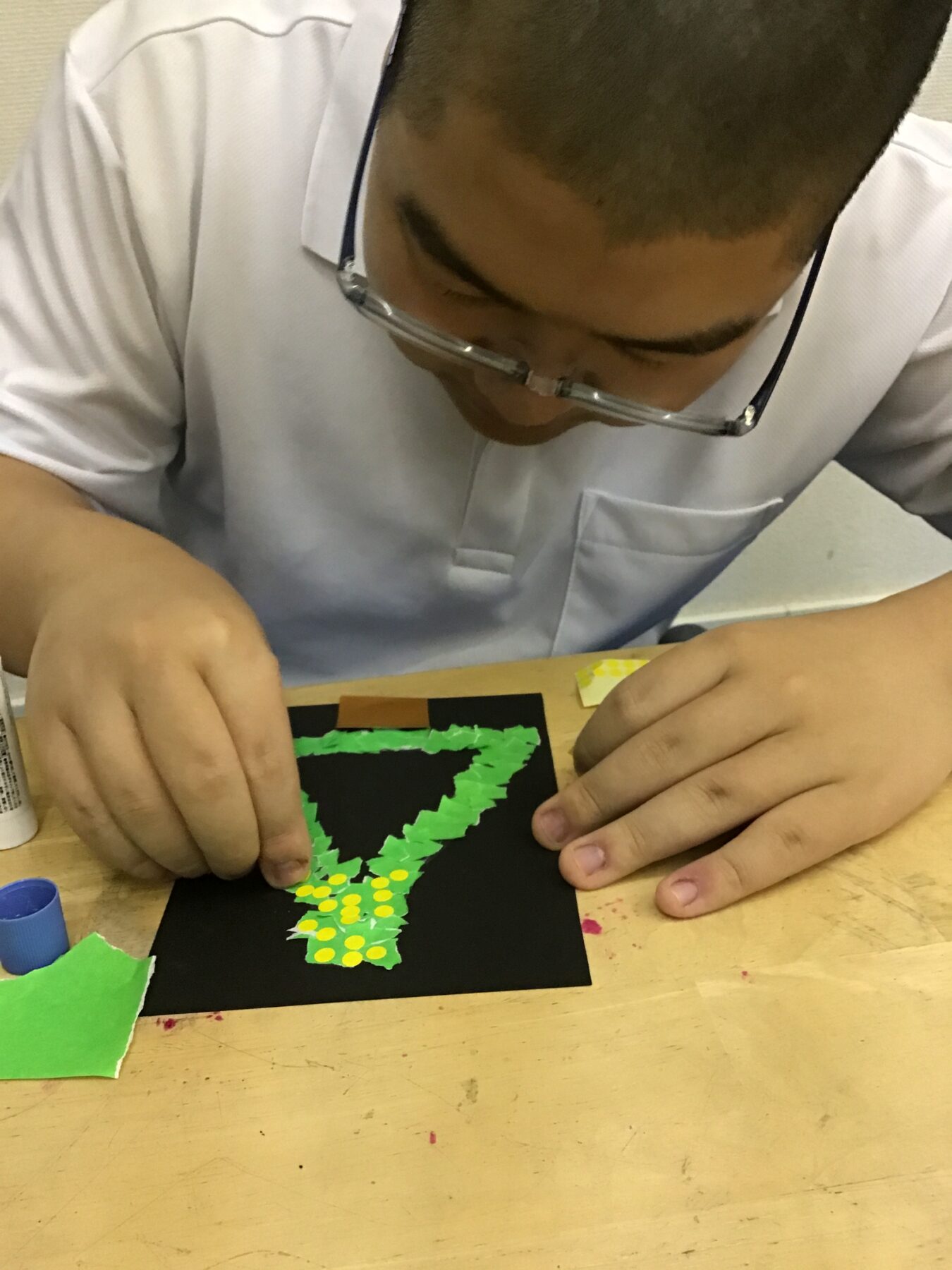 お友達を待っている間はツリーのちぎり絵にも取り組みました🎄