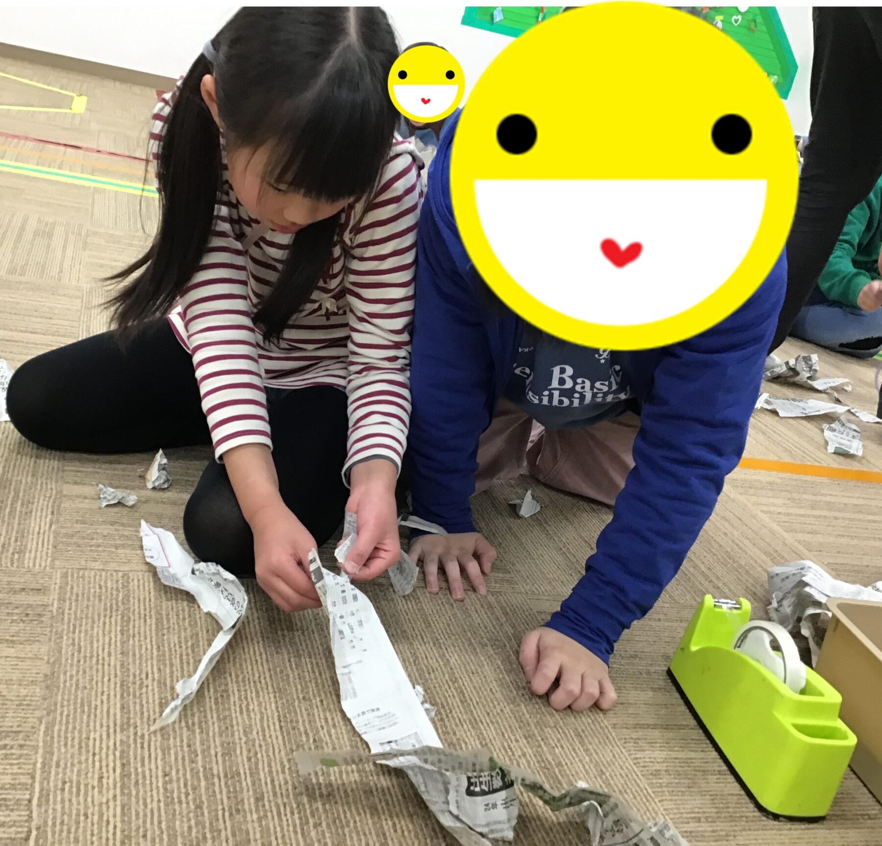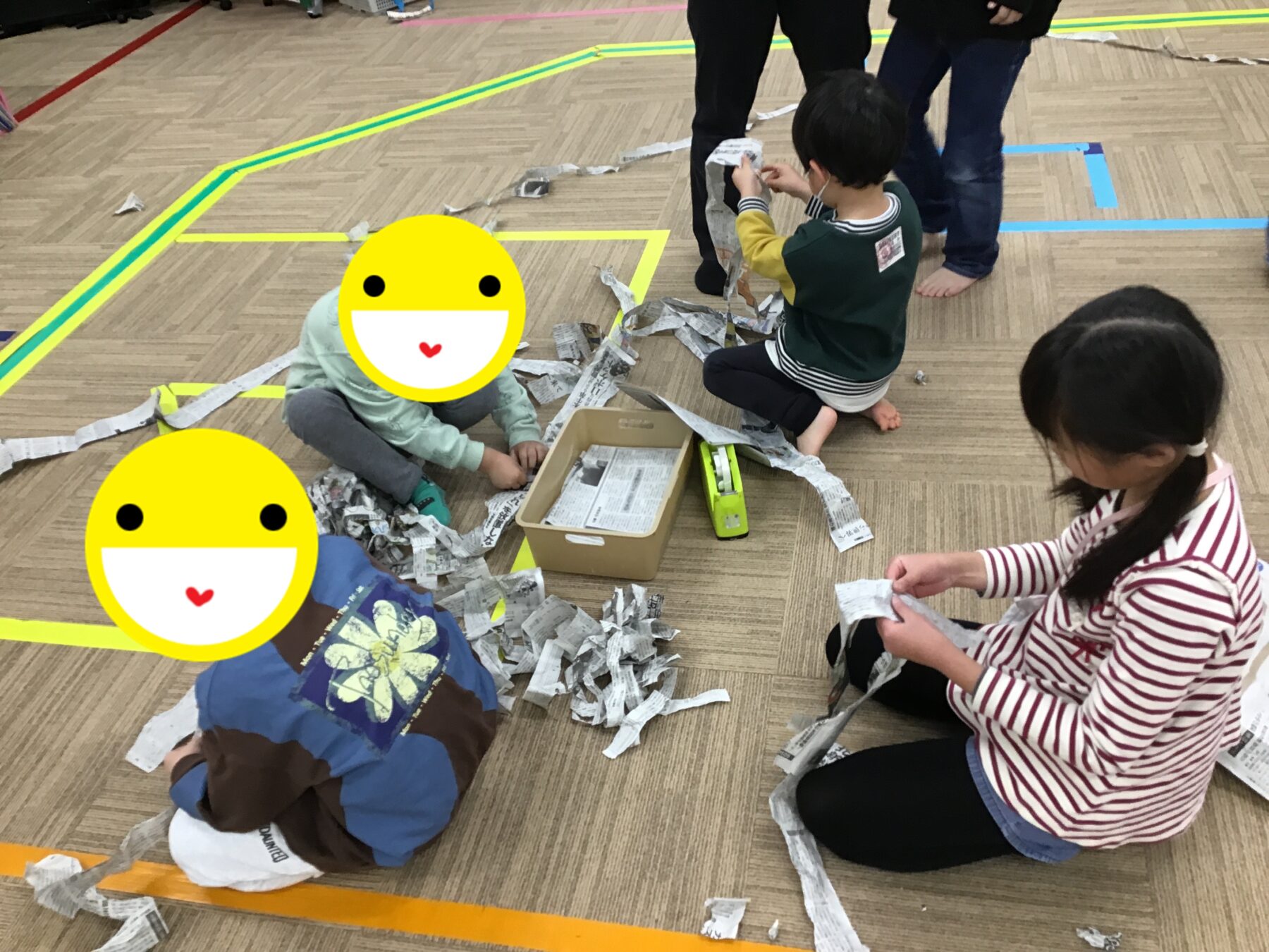 最後はみんなで一つに新聞紙を集めてもらいました!