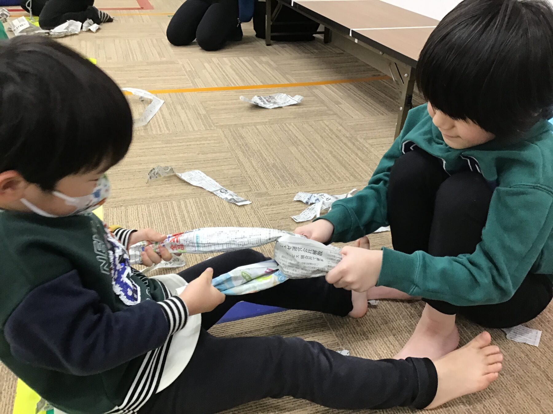 ★全体活動【運動・感覚:新聞紙遊び】