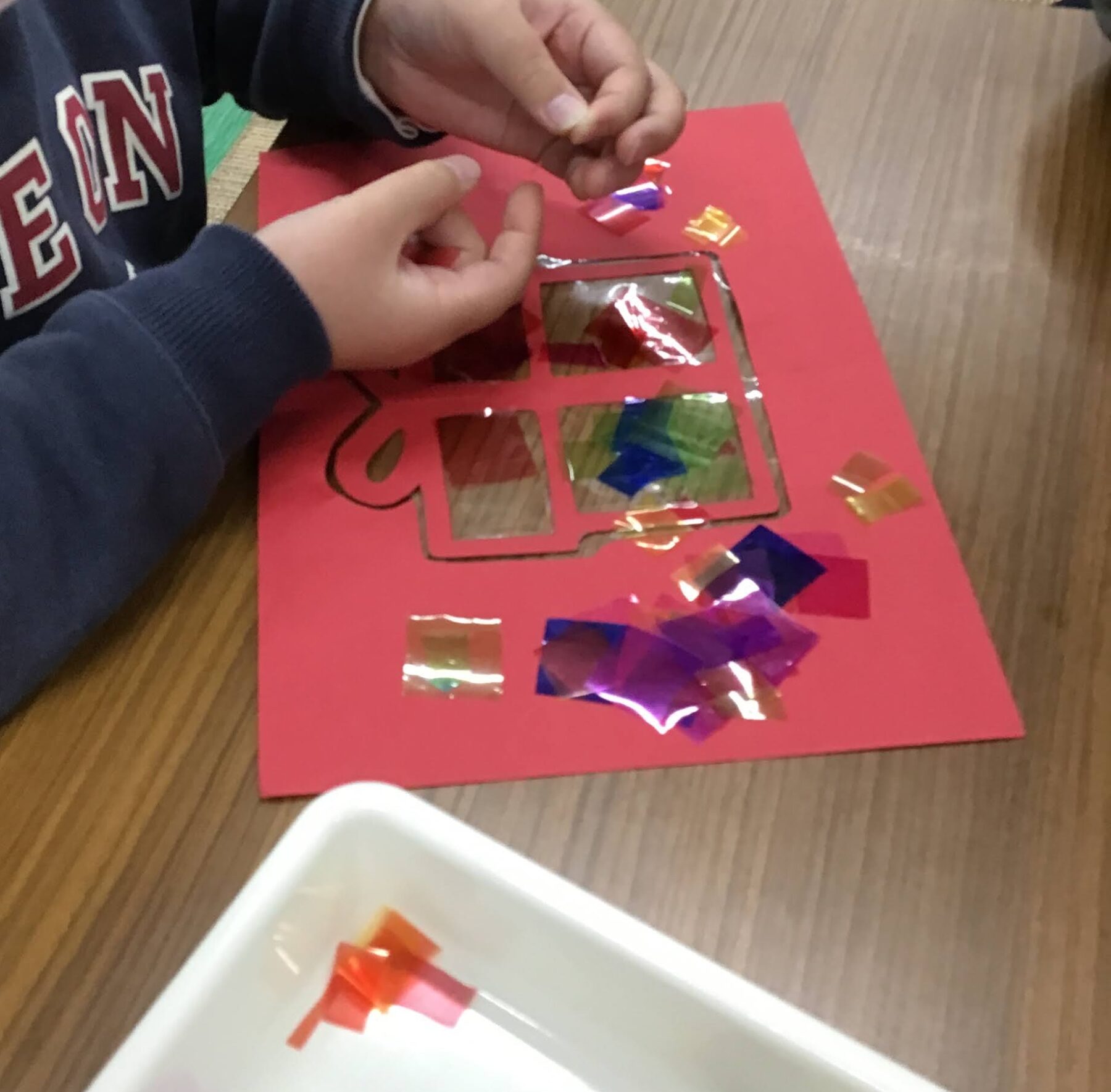 ☆全体活動【感覚・生活:ステンドグラス作り クリスマスバージョン🎄】