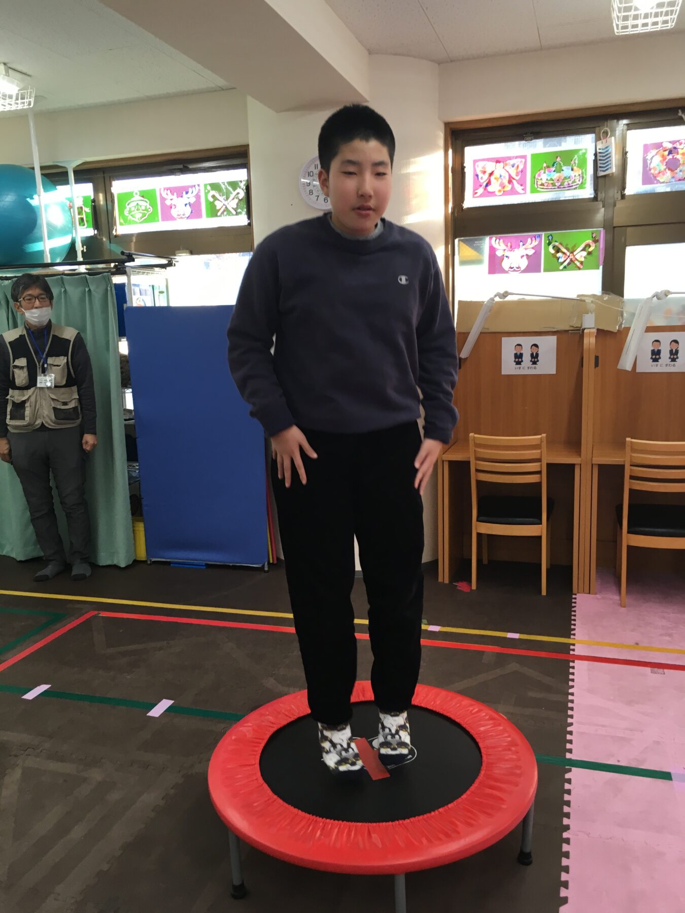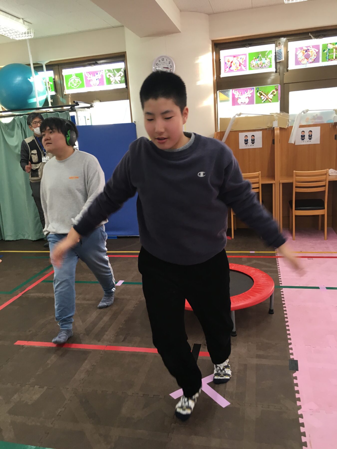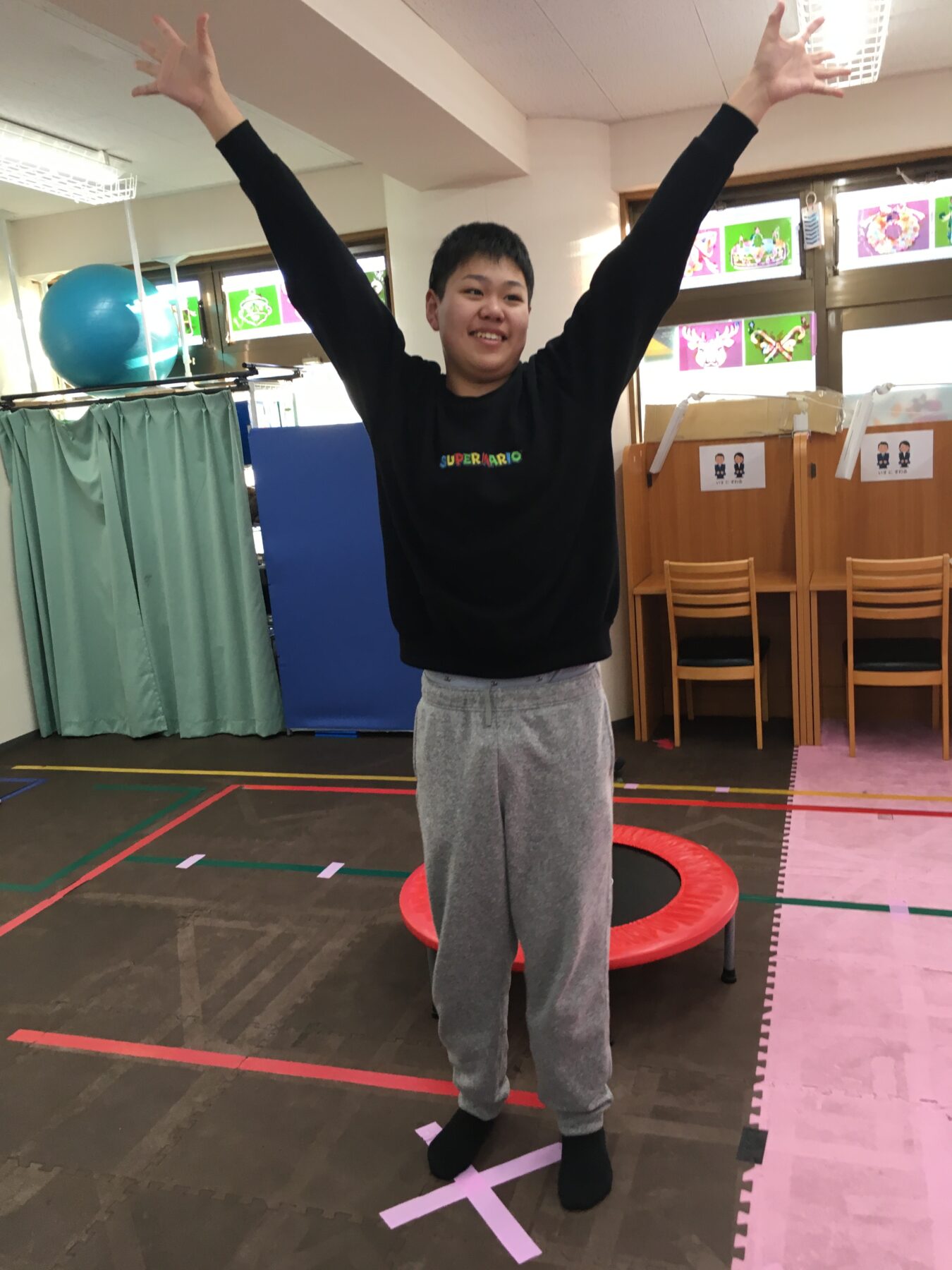 今回の体幹トレーニングは「トランポリン」だよ。