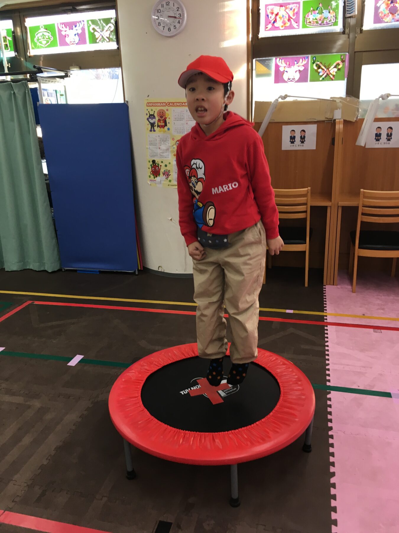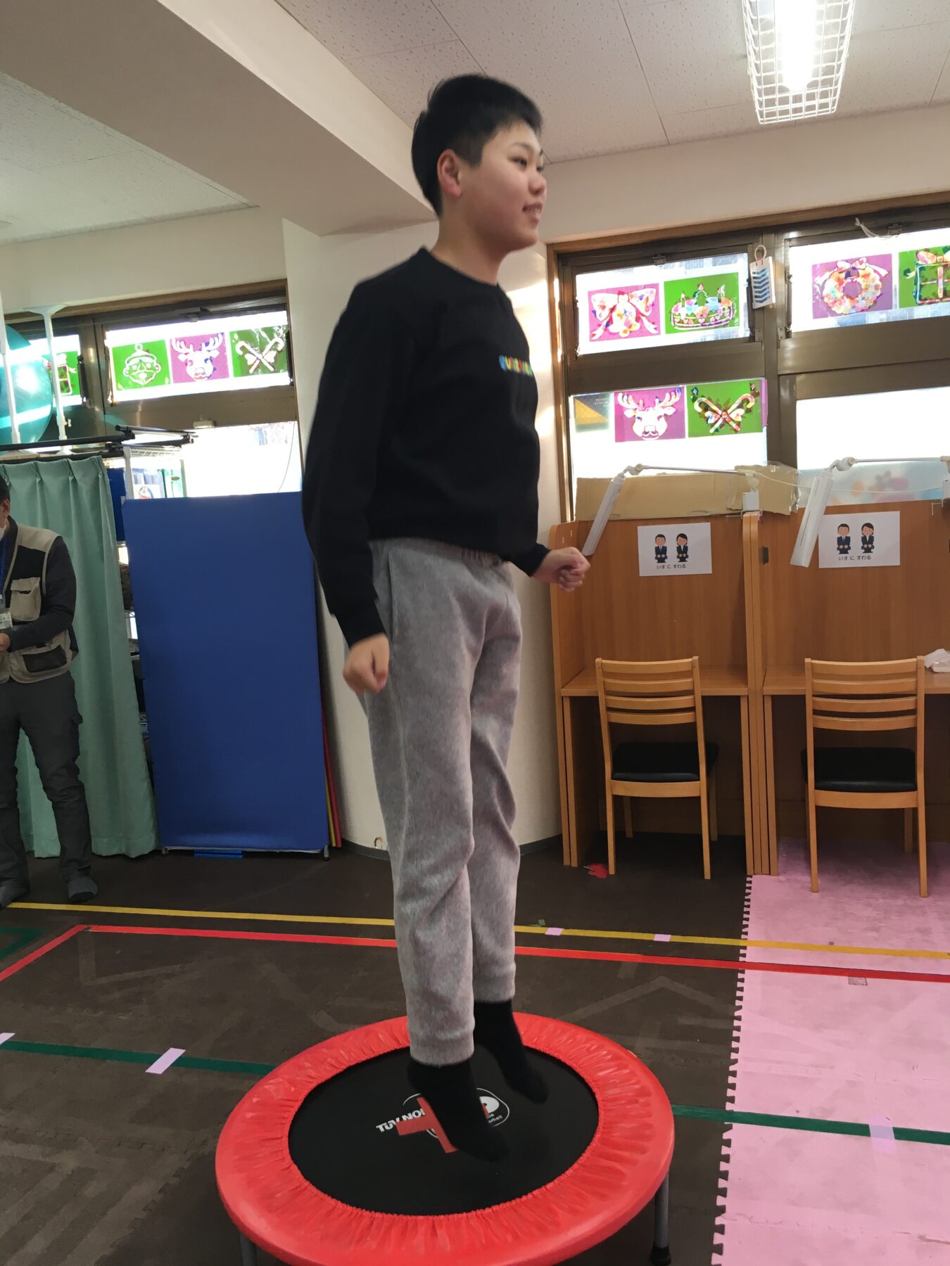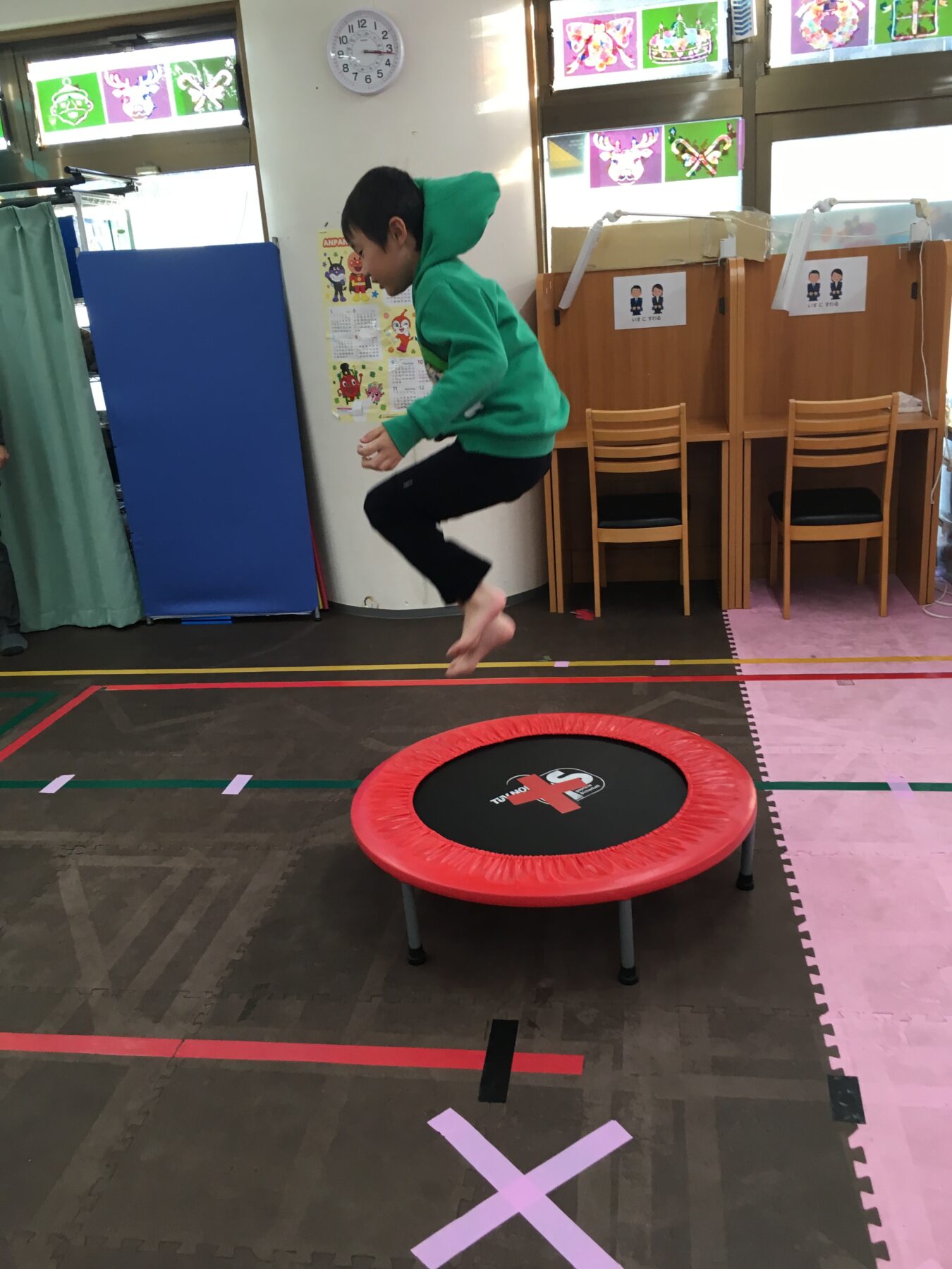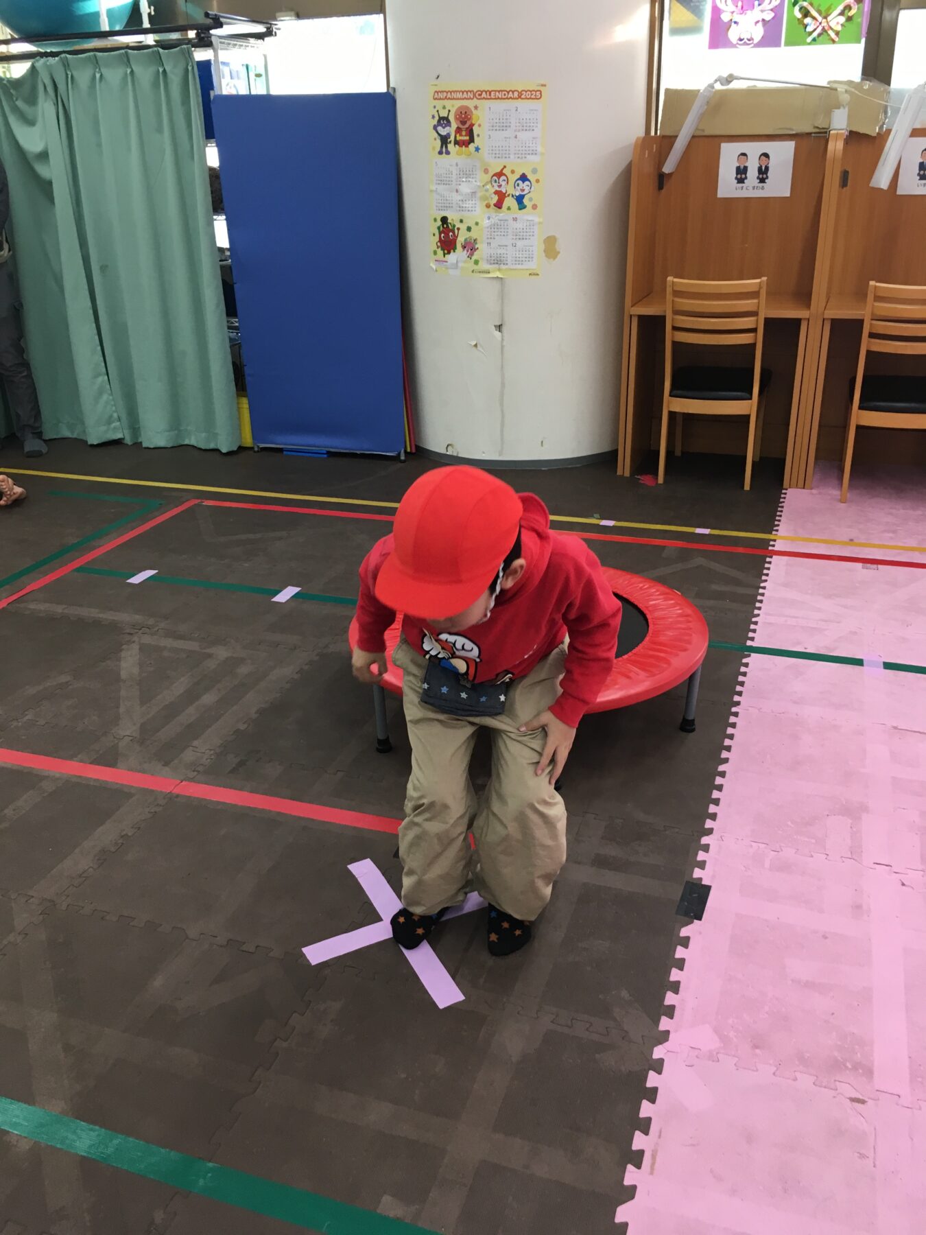 今回の体幹トレーニングは「トランポリン」だよ。