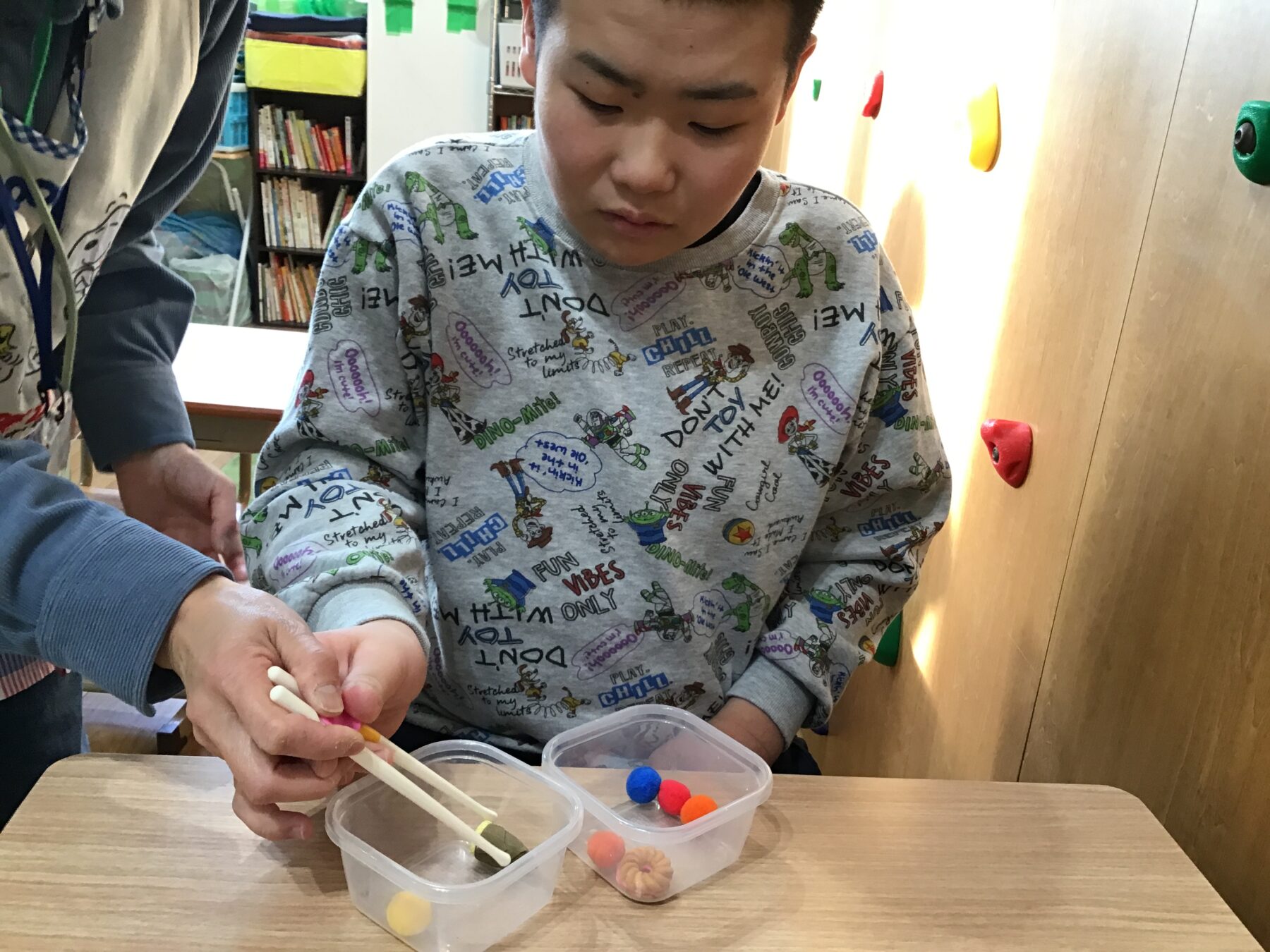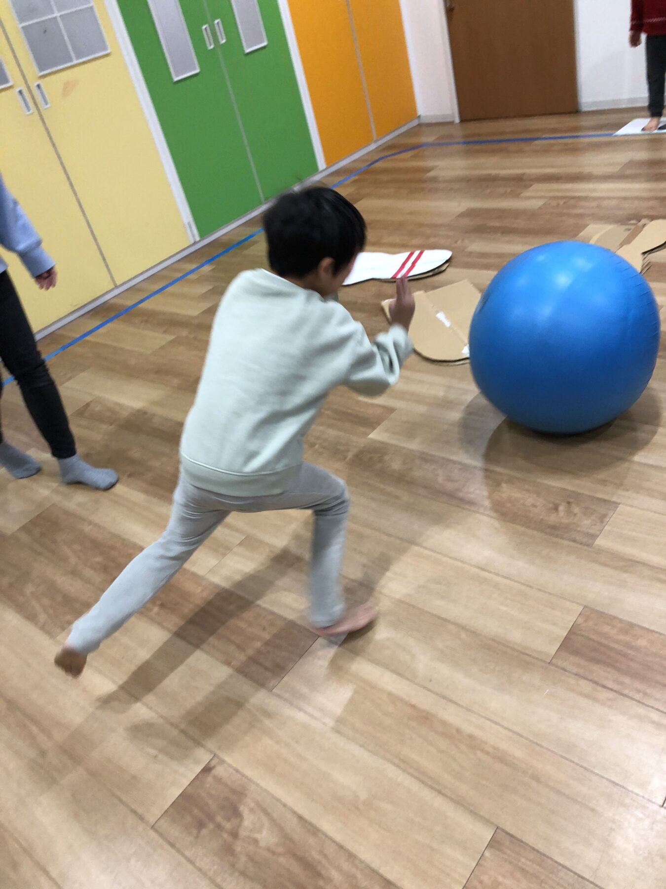 大きなピンに驚きながらも、二人一組で協力して挑戦しました。