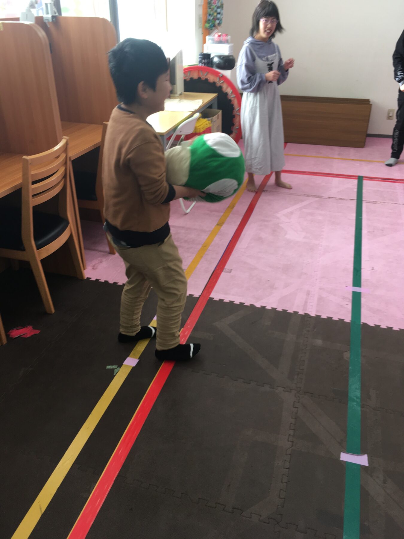 こちらはきのこのぬいぐるみでサポーターも交えて🍄きのこキャッチゲームの様子です🤣