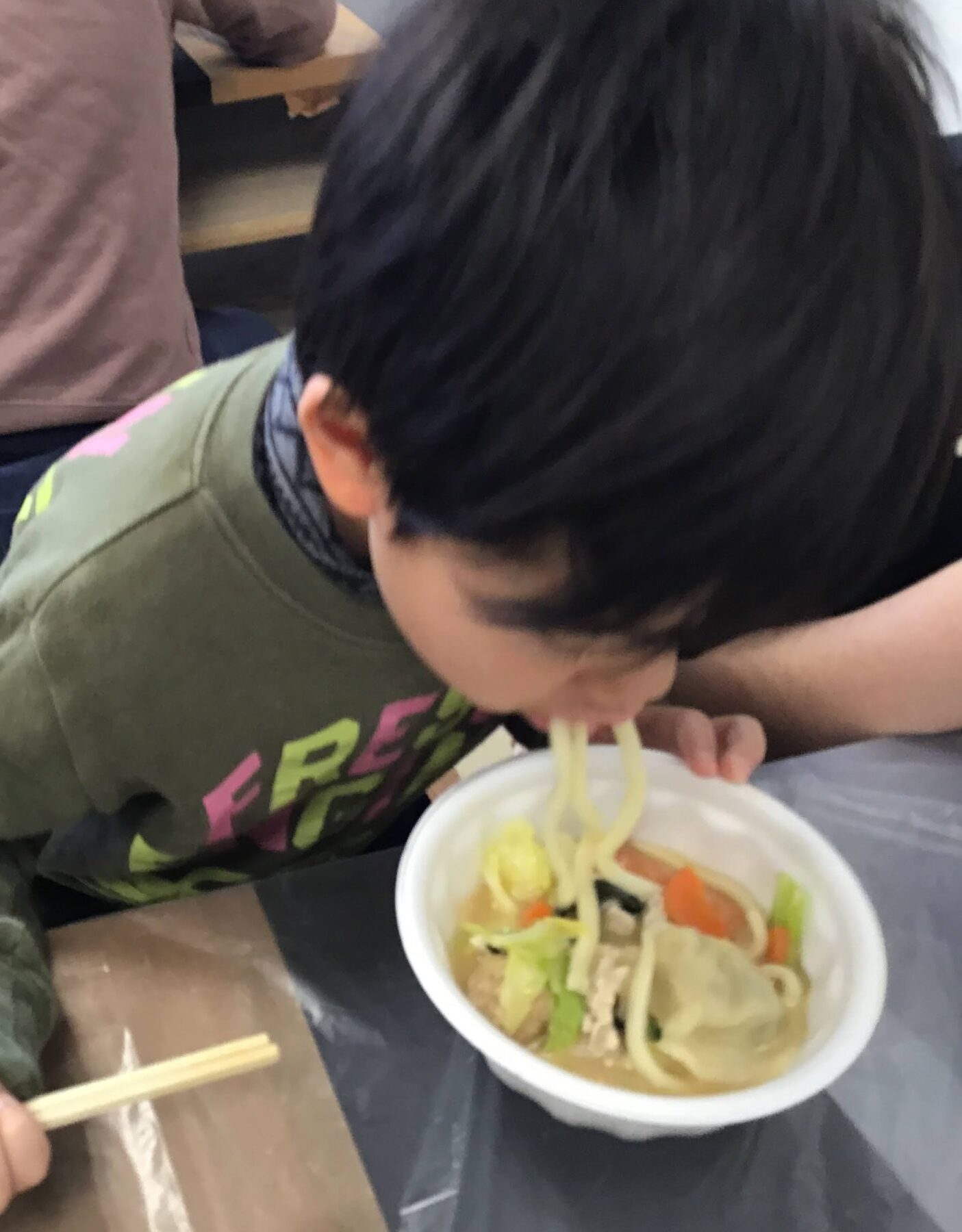 たくさんの具材を大きな鍋で煮て、美味しいお鍋ができあがりました😋