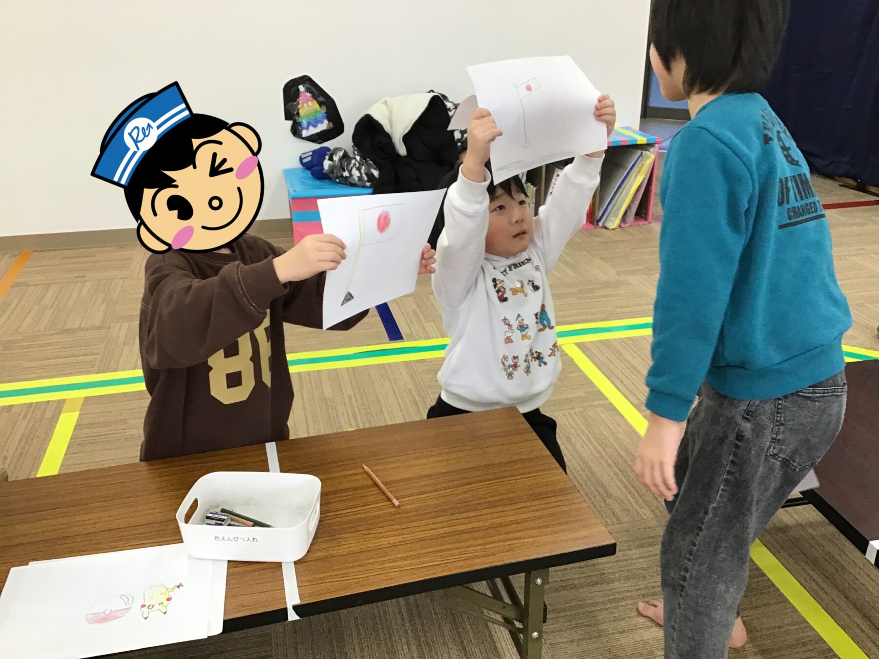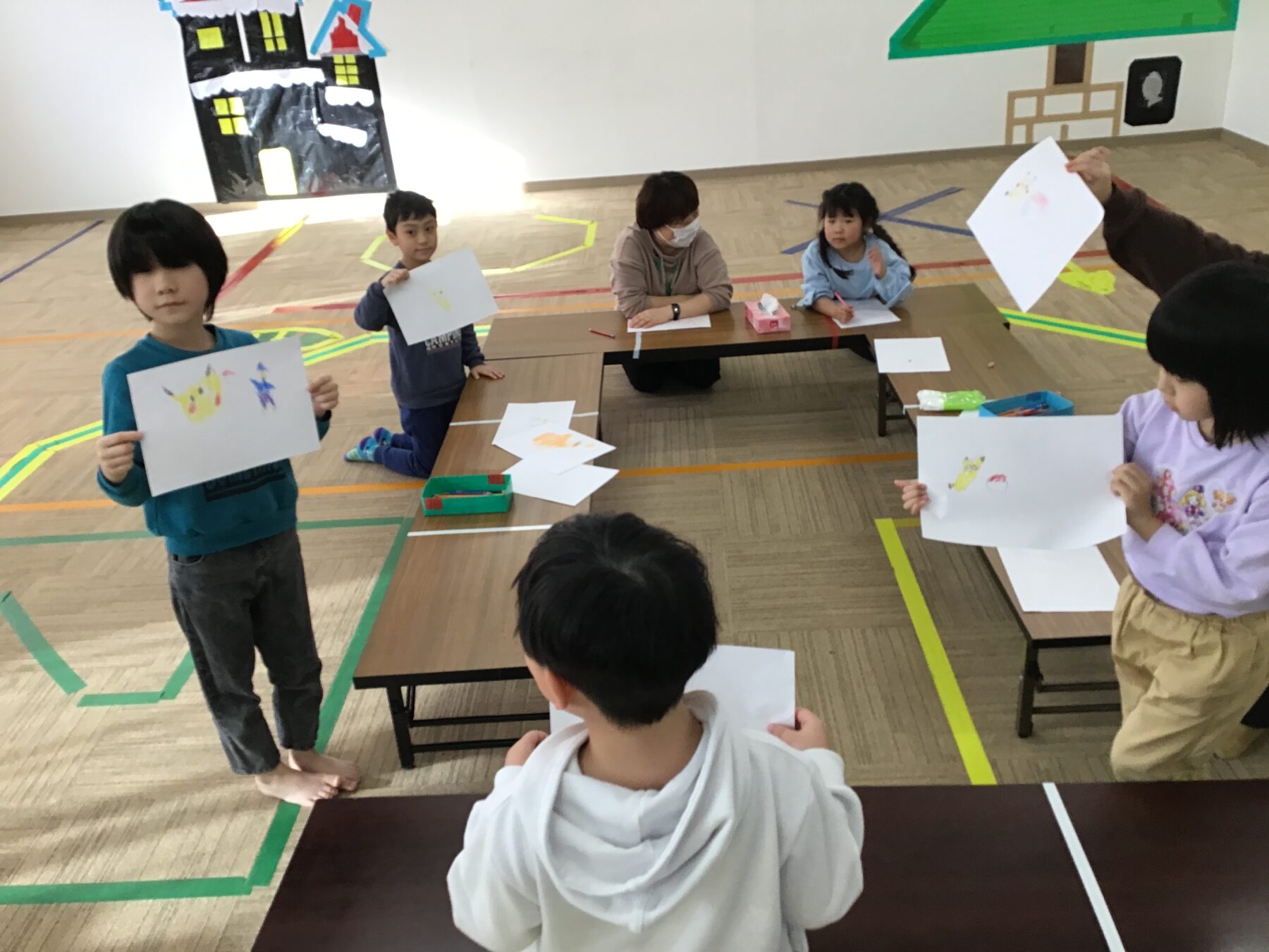 お題に沿った物やキャラクターをお友だちが発言してみんなで書いてみました!