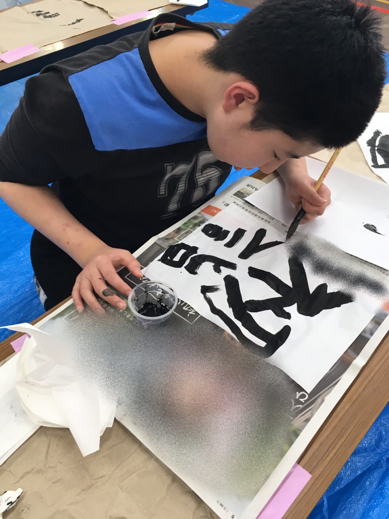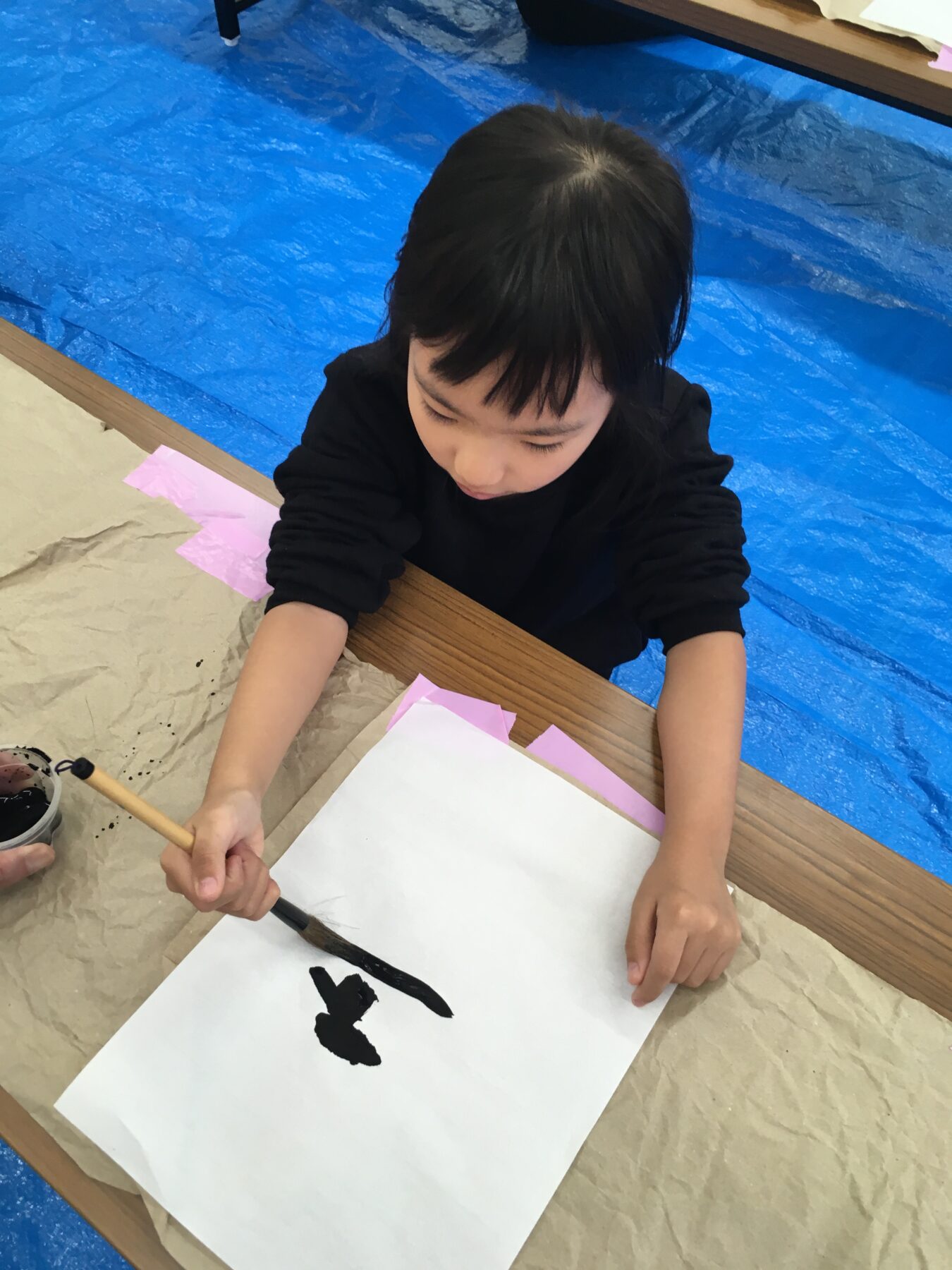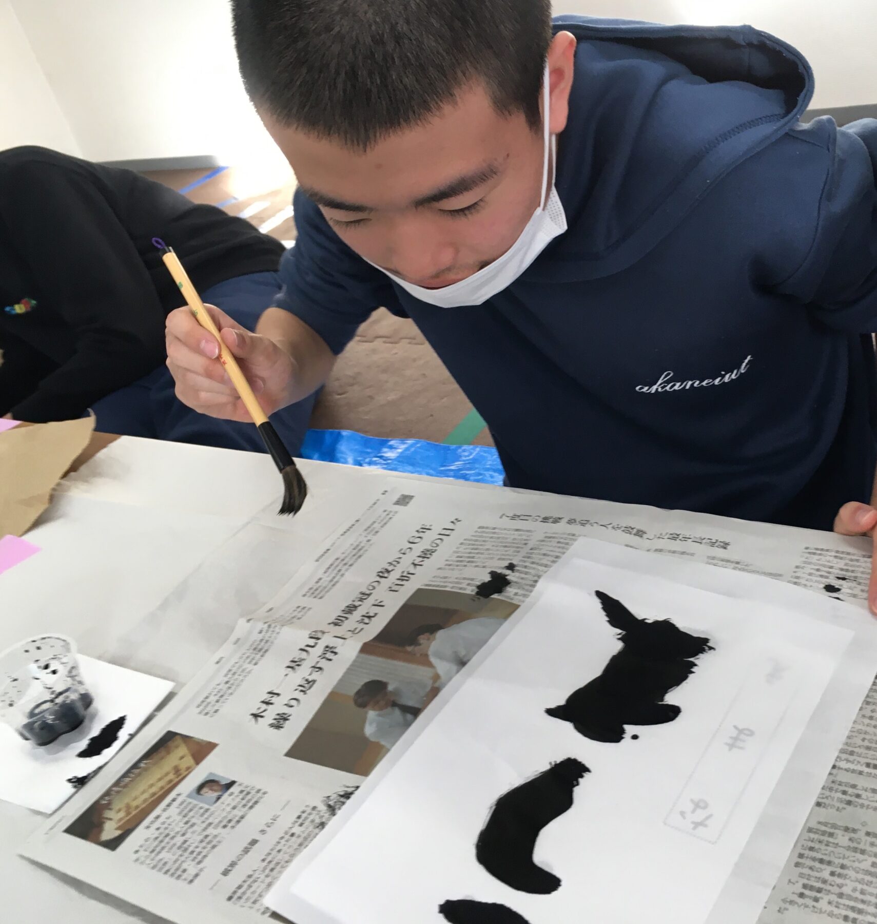 リッキーガーデン仙台柳生(放課後等デイサービス)筆と墨汁で書初めをしよう!
