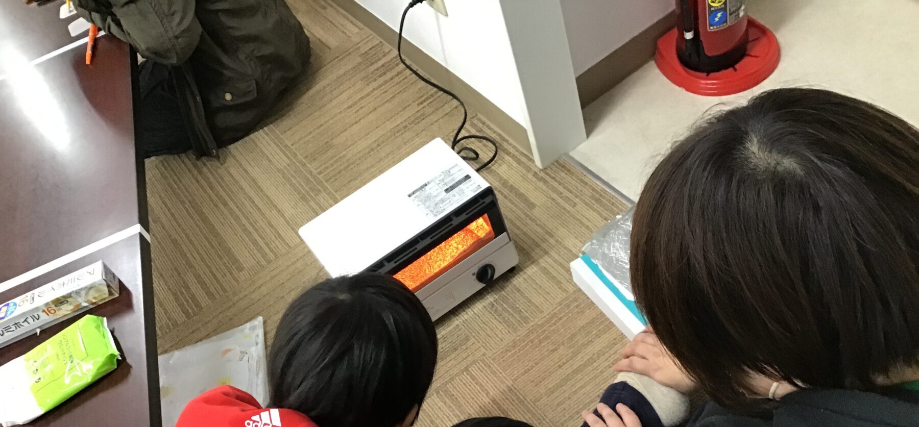 描き終わったら、サポーターと一緒にオーブントースターで焼く様子を観察しました👀