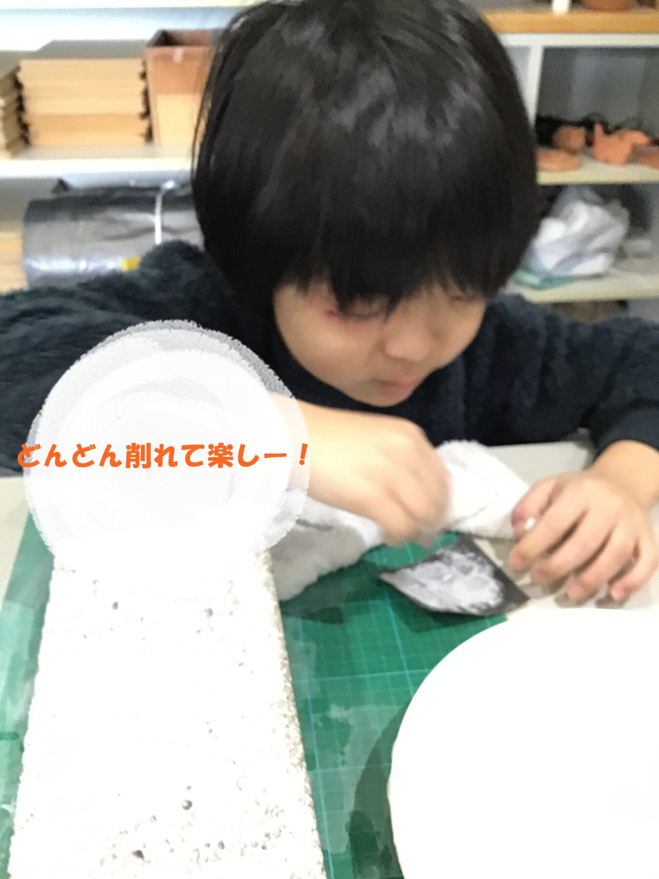 みなさん、集中して石を削っています😲