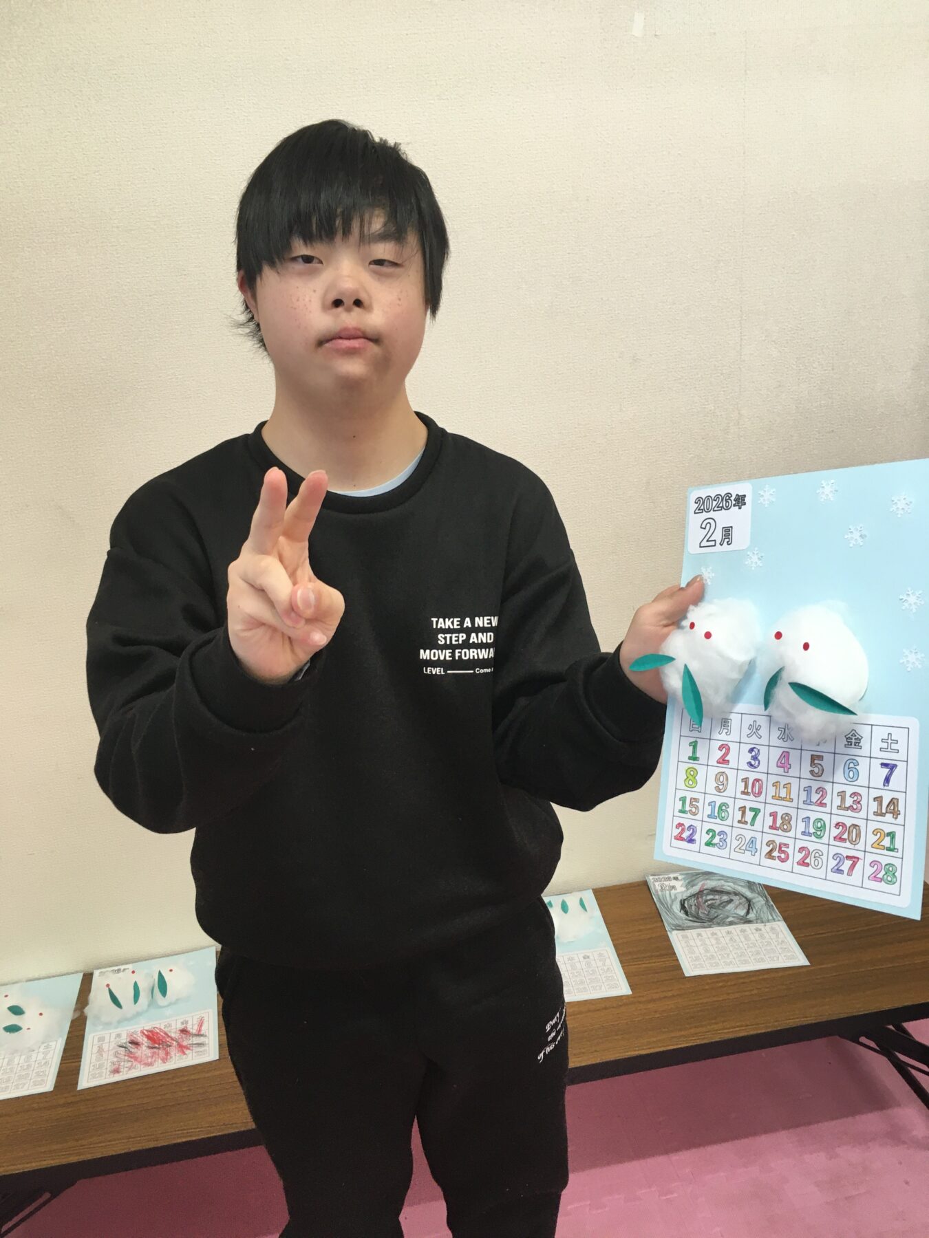 可愛らしい雪うさぎのカレンダーが出来上がりました。