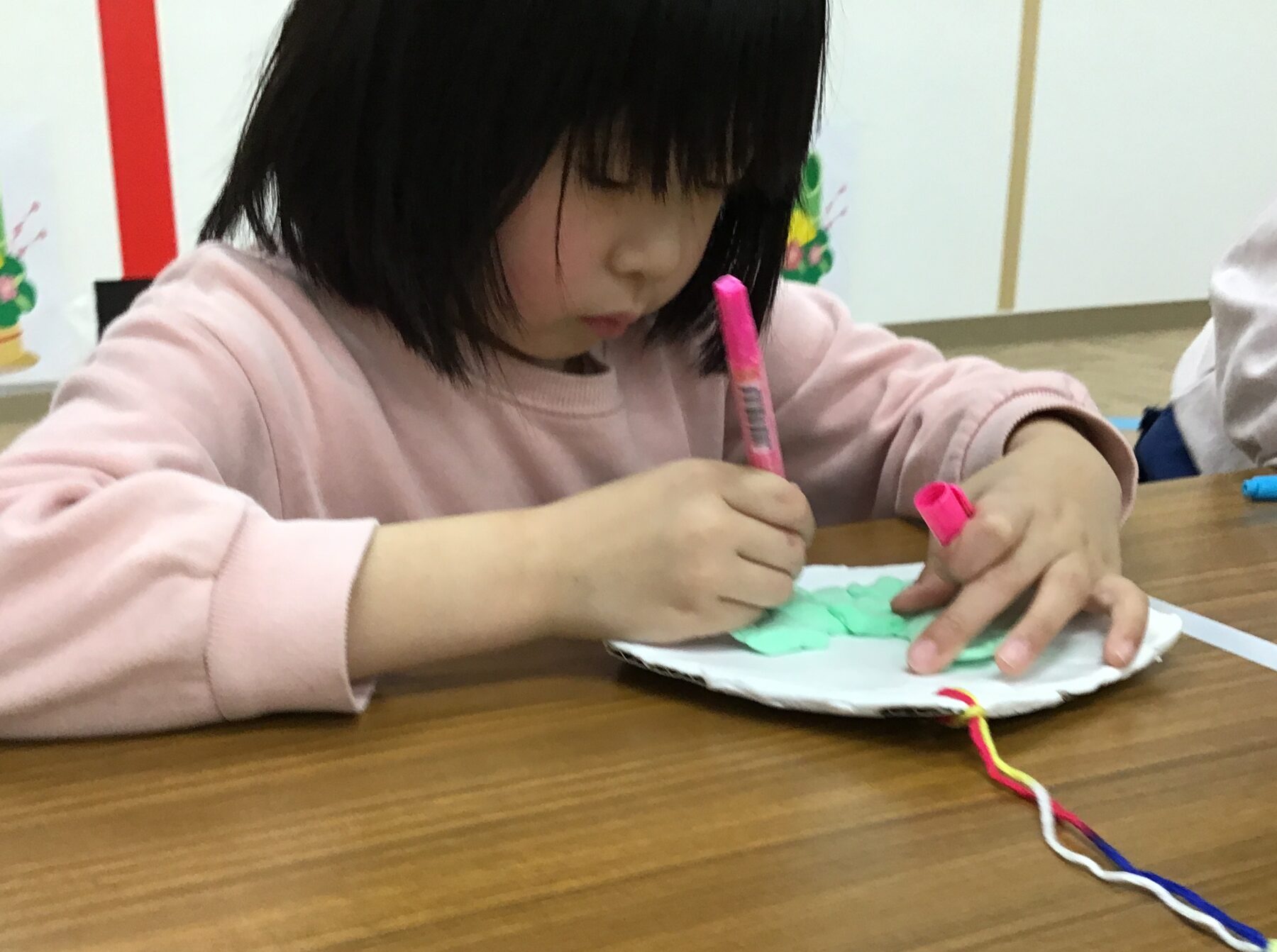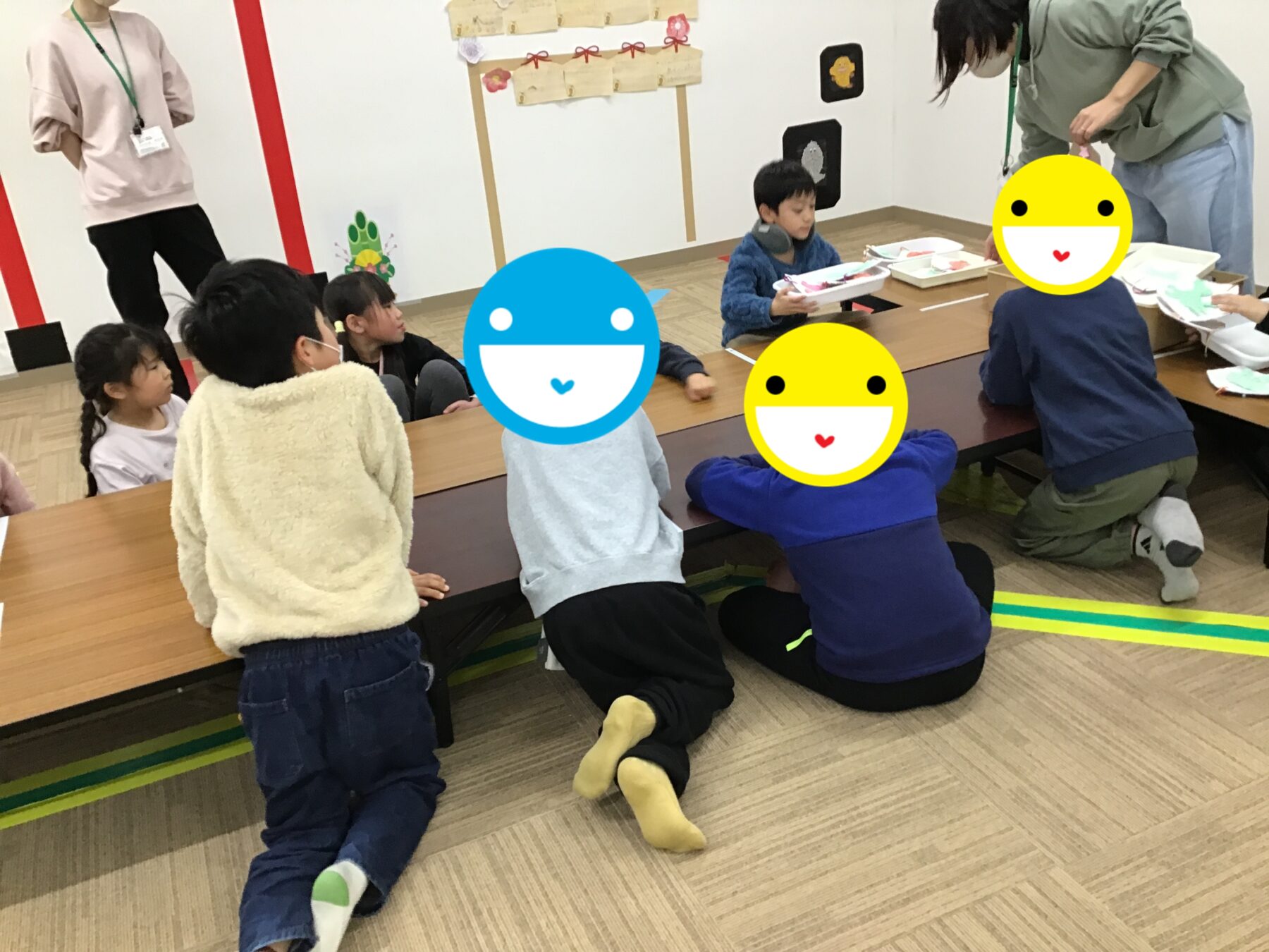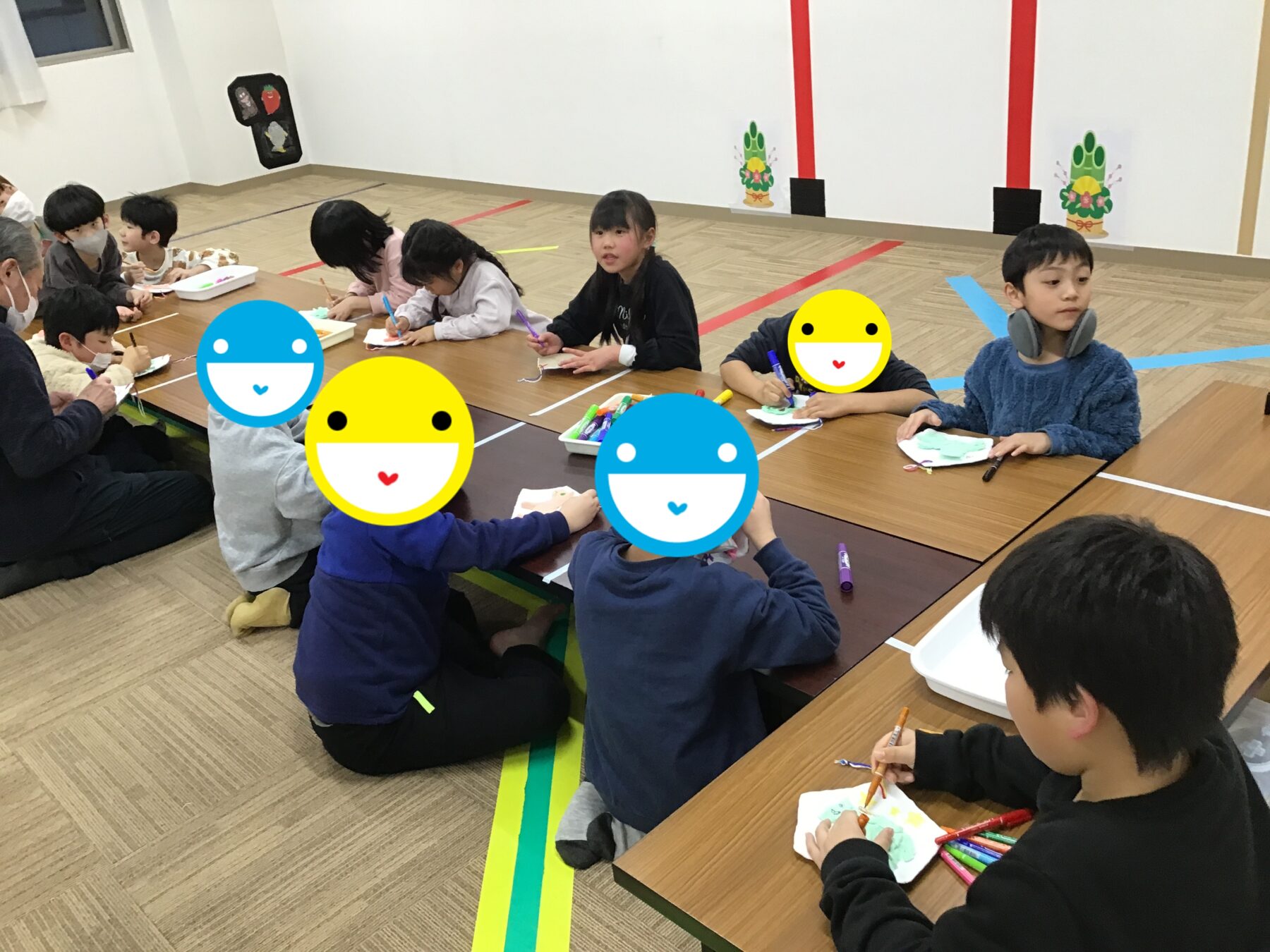 今日はみんなが作った午に顔を描いたり、絵馬に色を付けてもらいました🐎