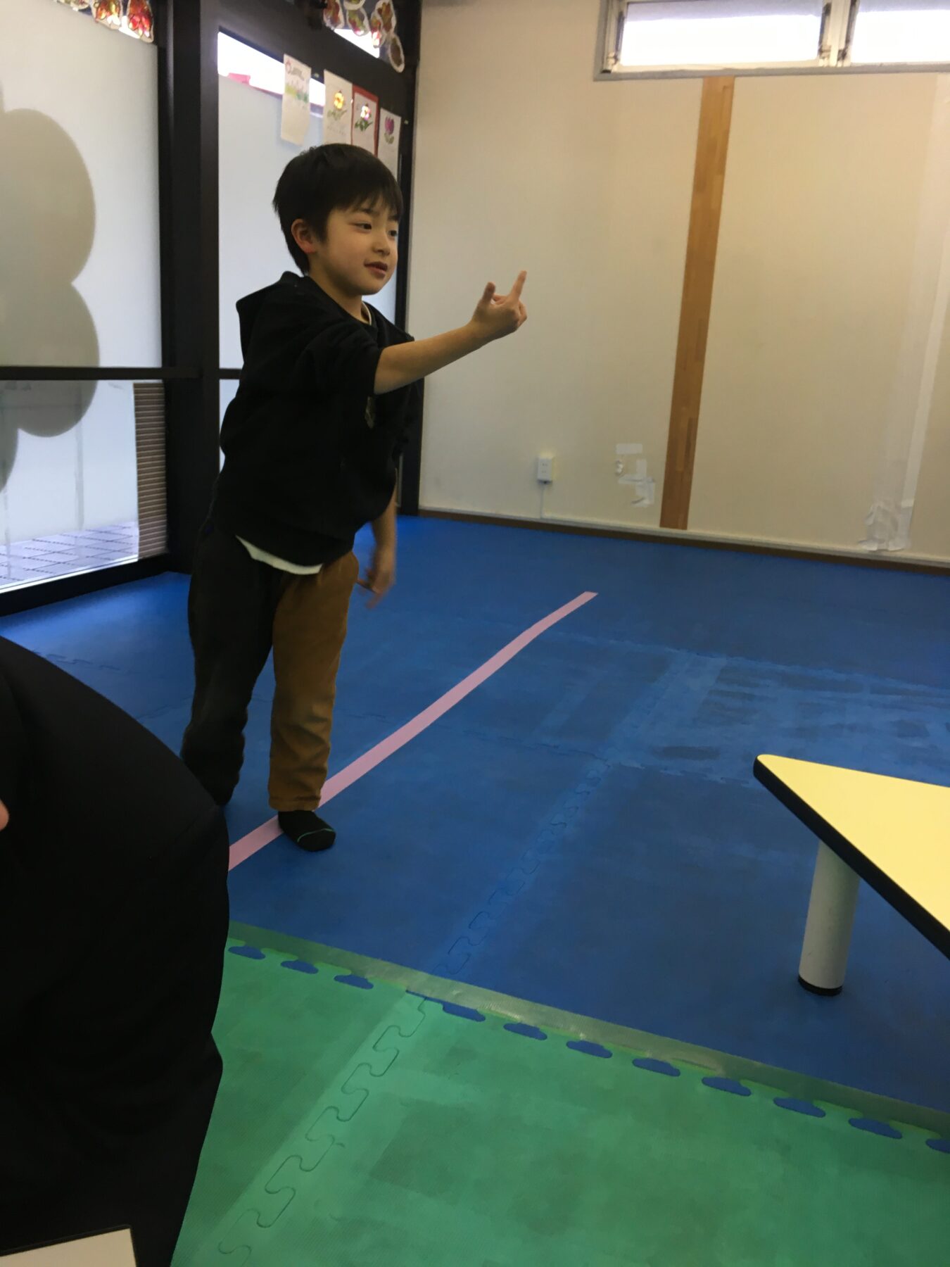 今日は、工作と運動を兼ねた紙ヒコーキを作って飛ばしました。