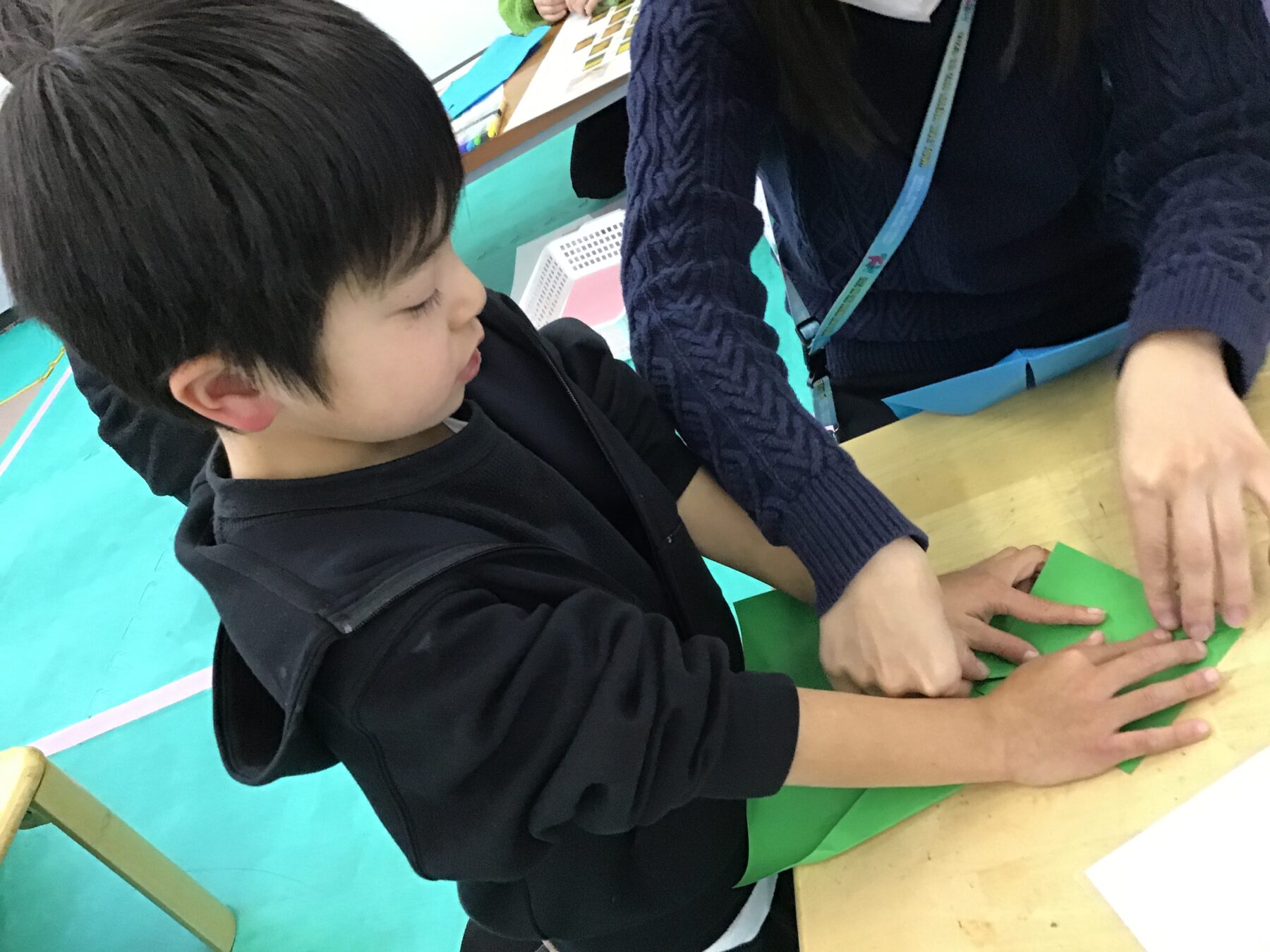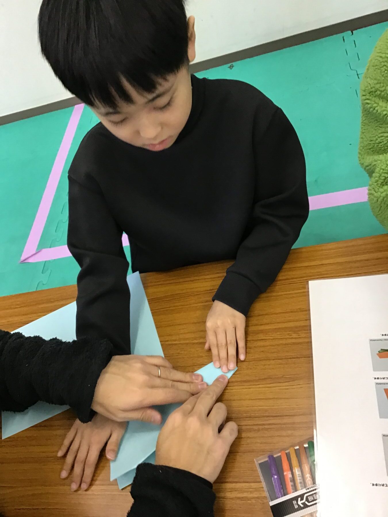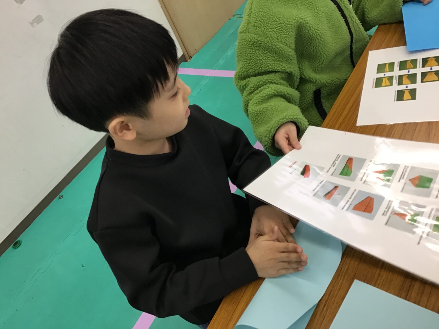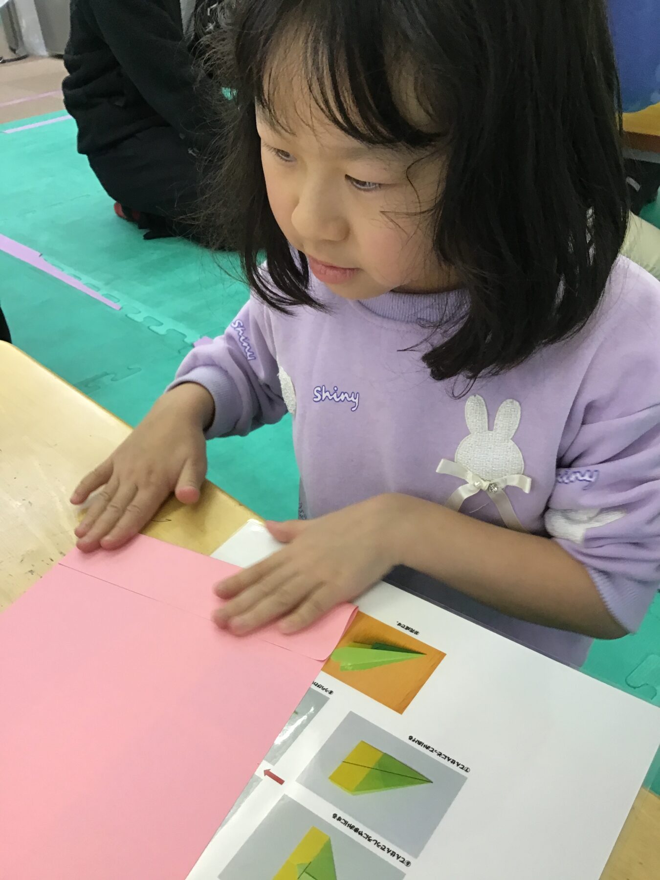まずは、ヒコーキを折る方から始めました。