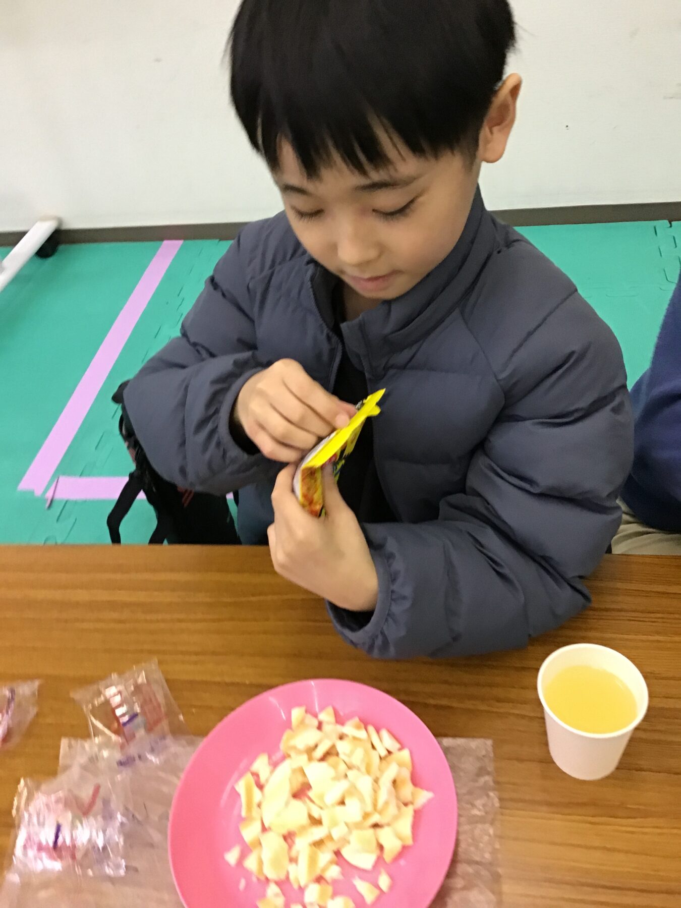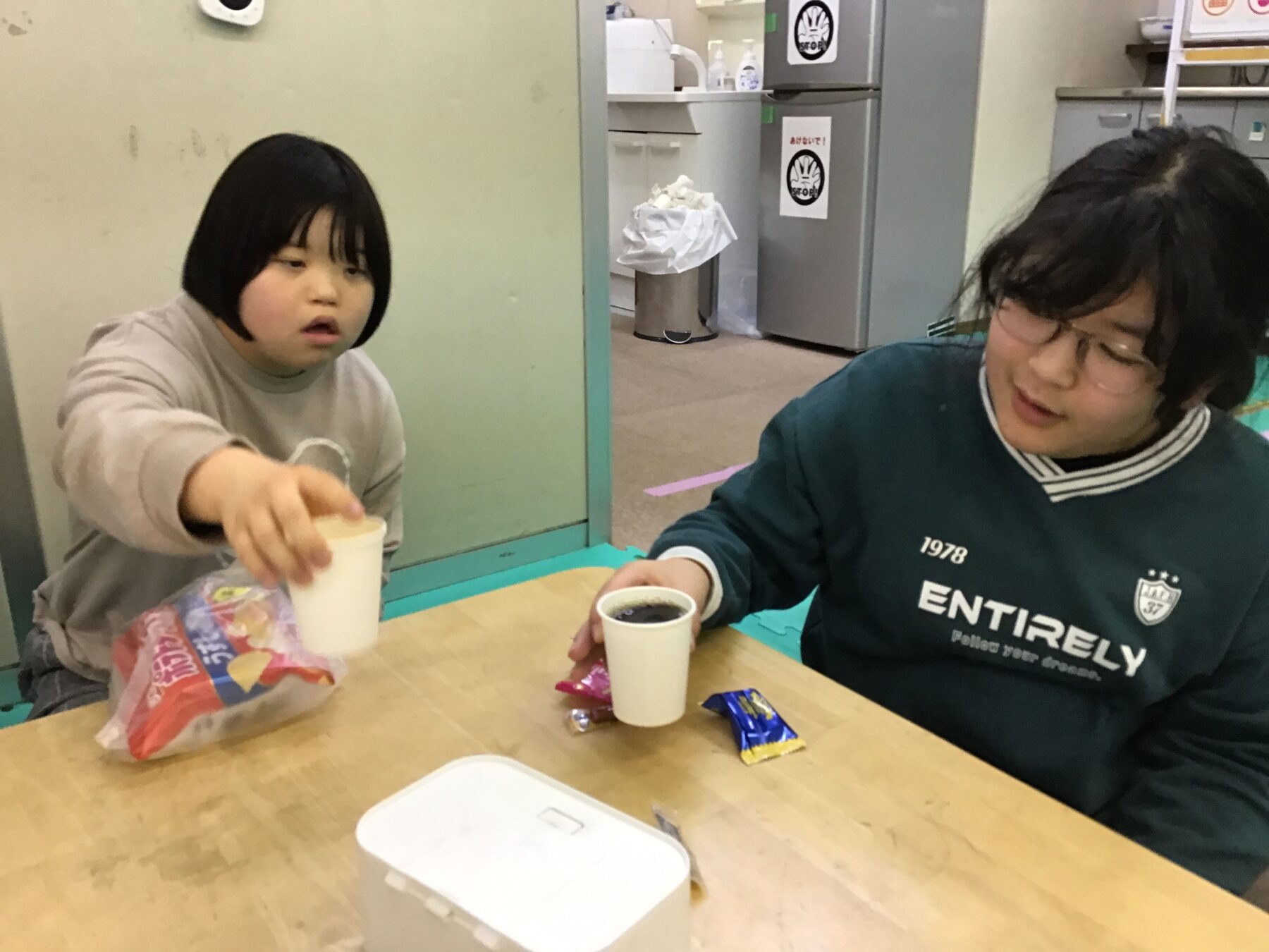 今日お誕生日のお友達もいて、自分で選んだおやつとジュースでお祝いをしました。