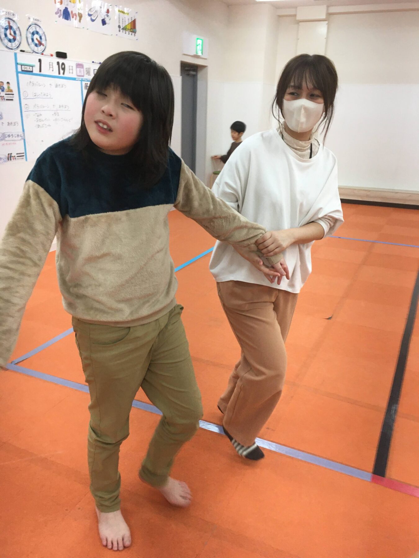 まずは、音楽に合わせて走ってウォーミングアップをしよう!